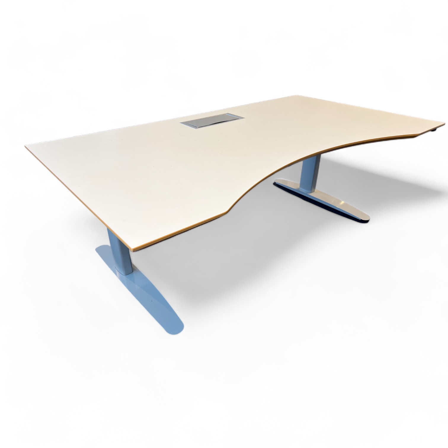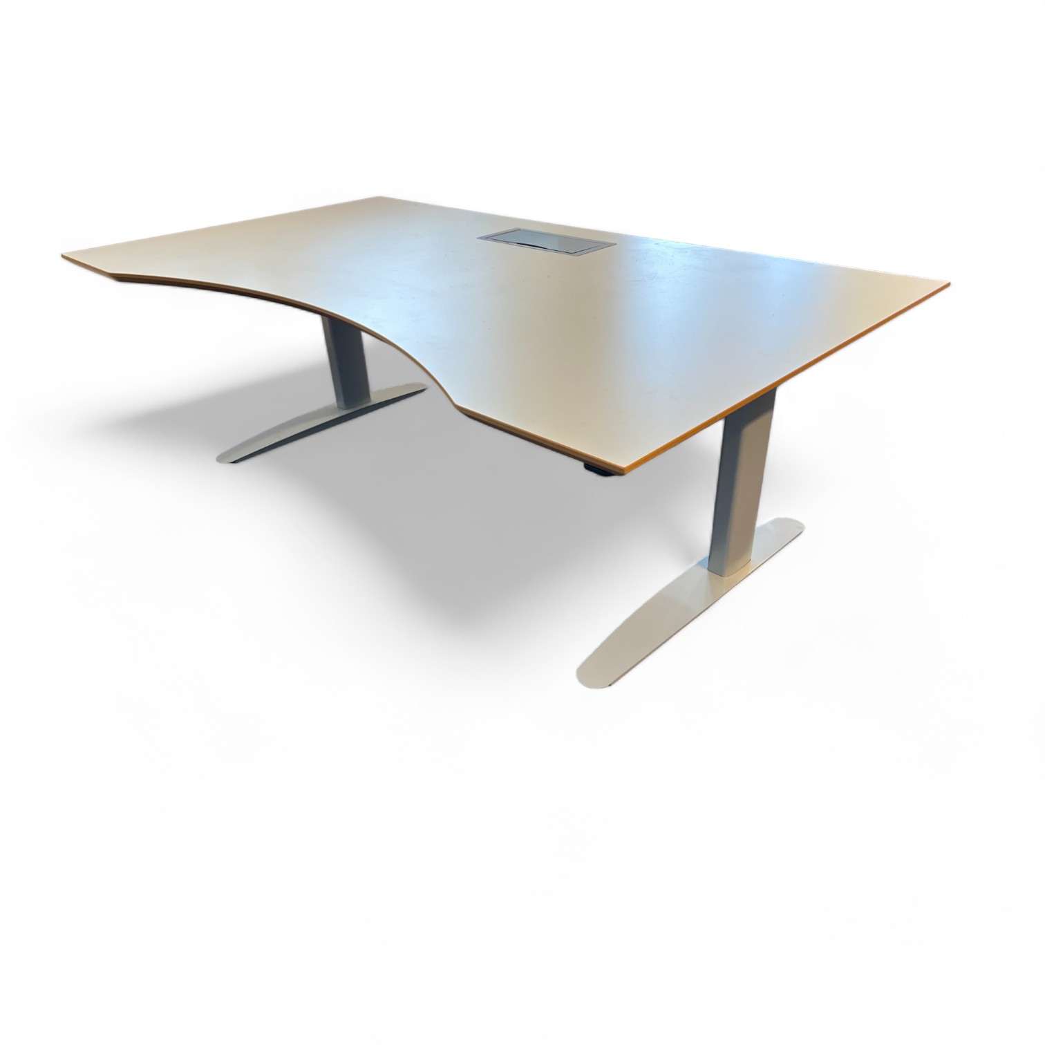 Bordsskiva i laminat (vit). Underrede i metall (grå). Höj- och sänkbart.