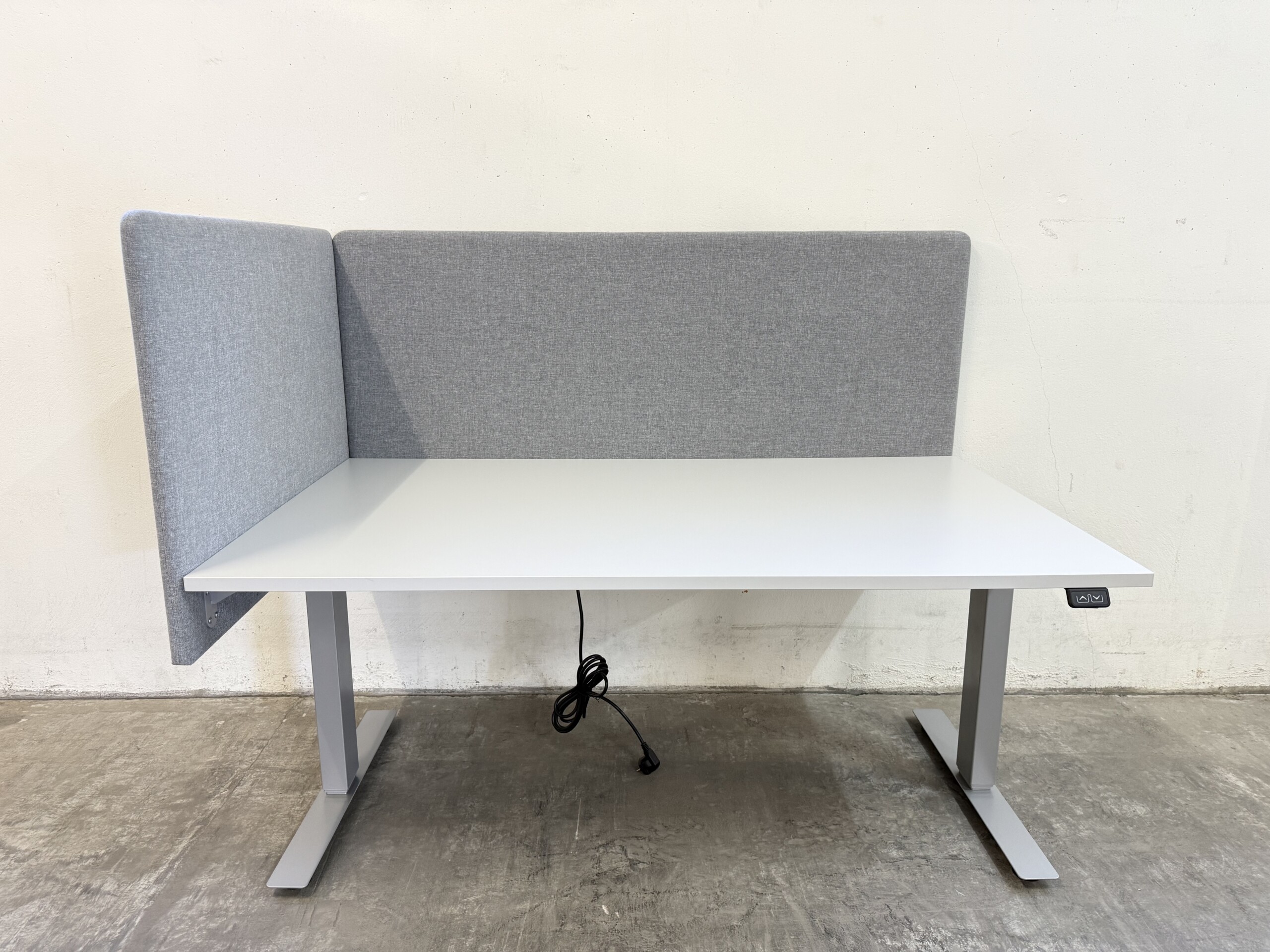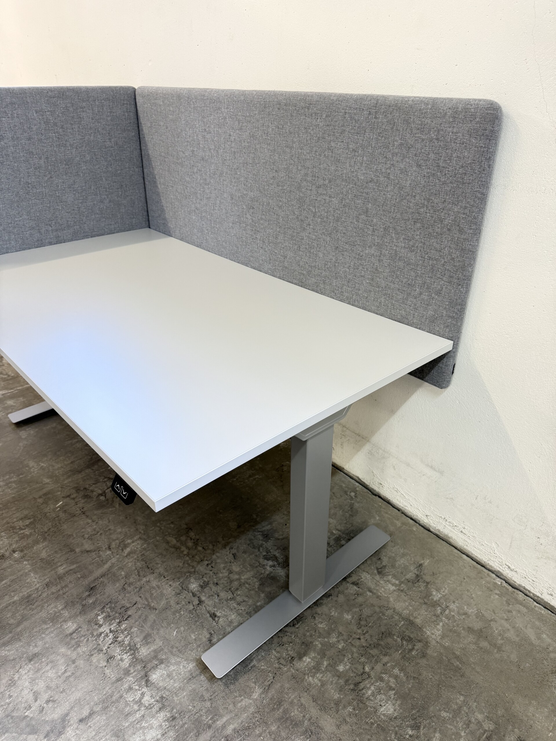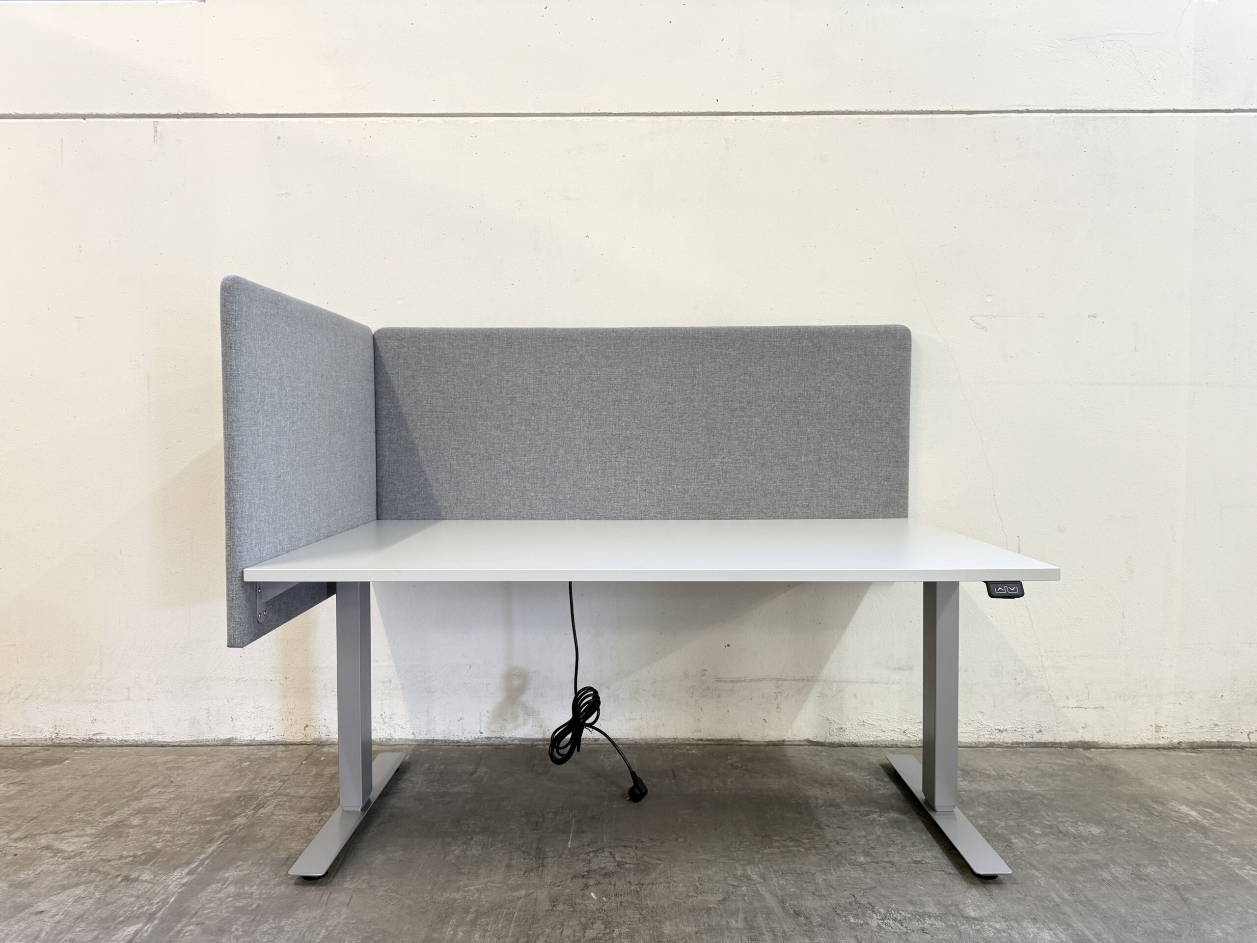 Bordsskiva i laminat (grå). Underrede i metall (grå). Höj- och sänkbart.