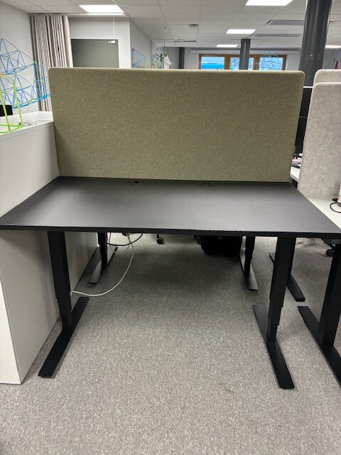Bordsskiva i laminat (svart). Underrede i metall (svart). Höj- och sänkbart.