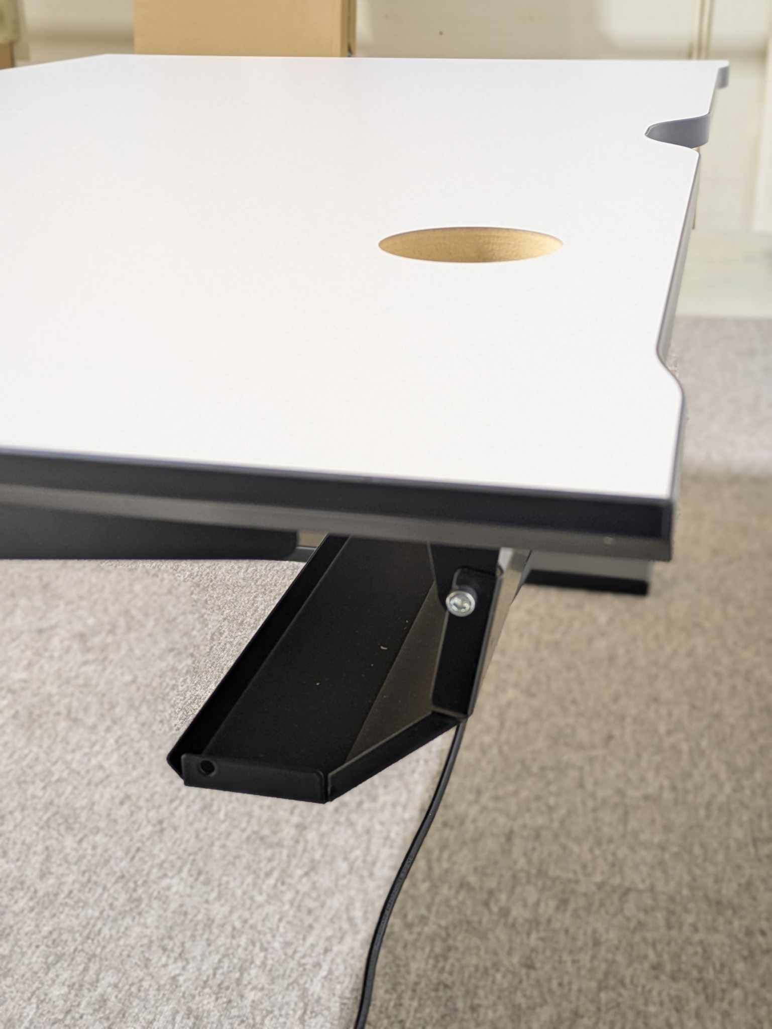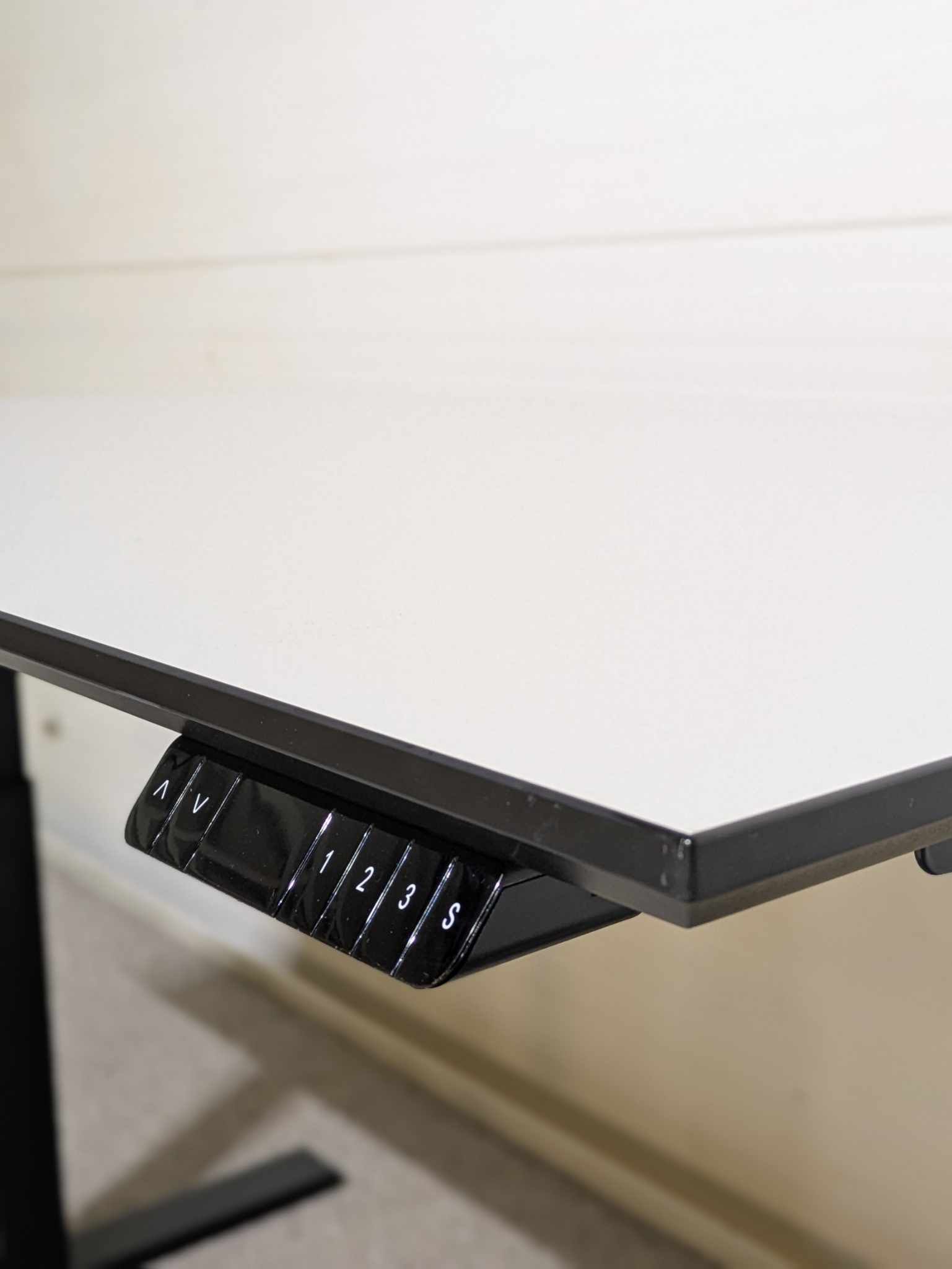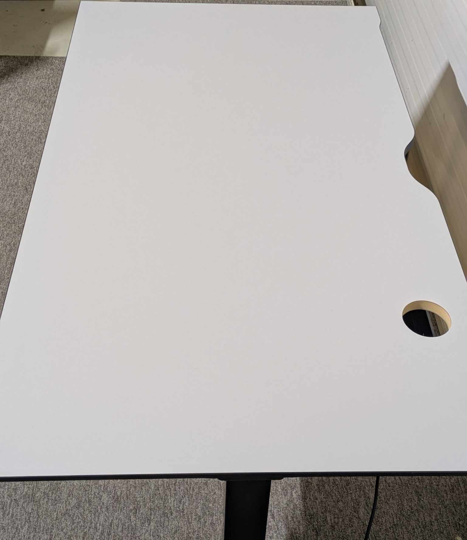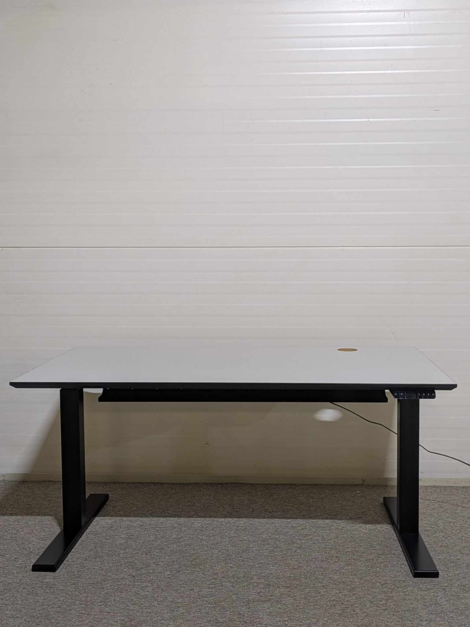 Bordsskiva i laminat (grå). Underrede i metall (svart). Höj- och sänkbart.