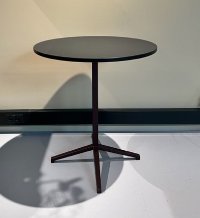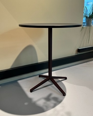 Bordsskiva i laminat (svart). Underrede i metall (röd).
