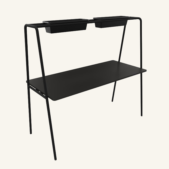 Bordsskiva i laminat (svart). Underrede i metall (svart).