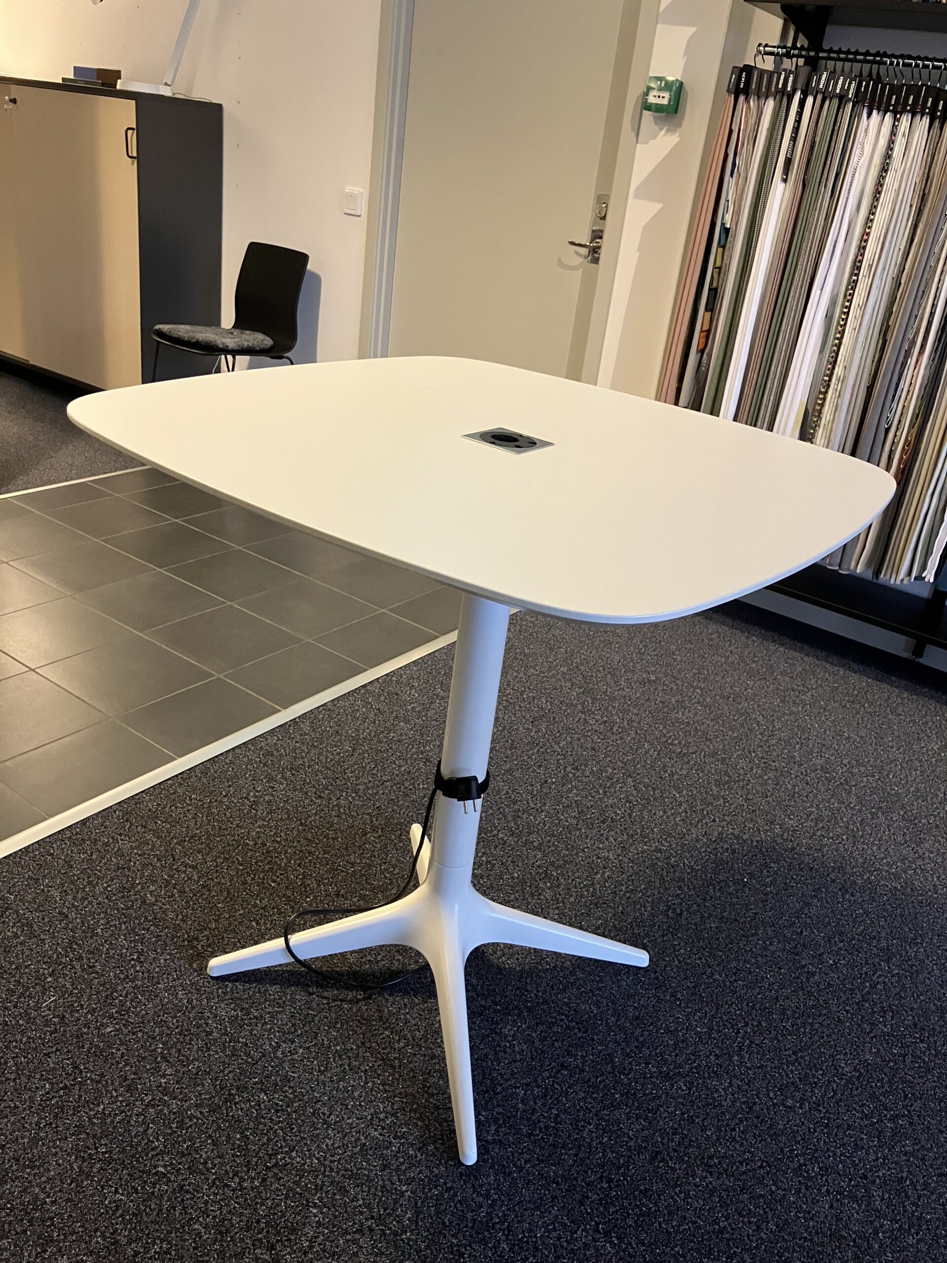 Bordsskiva i laminat (vit). Underrede i metall (vit).