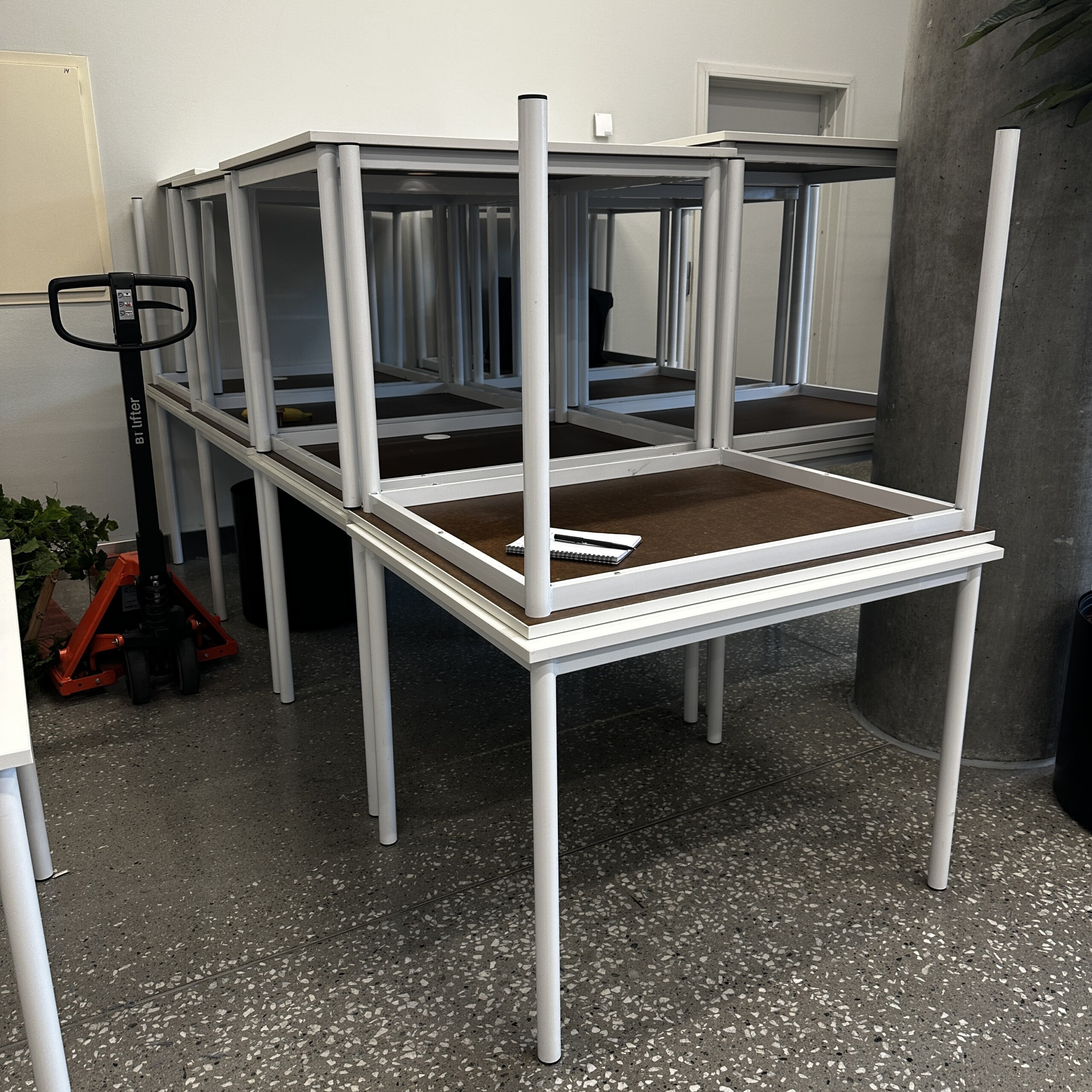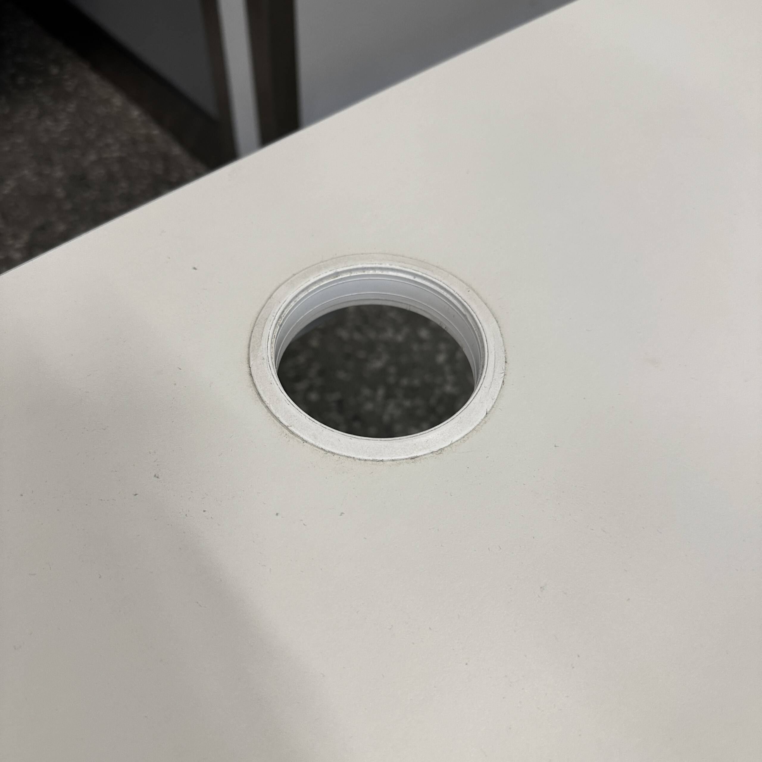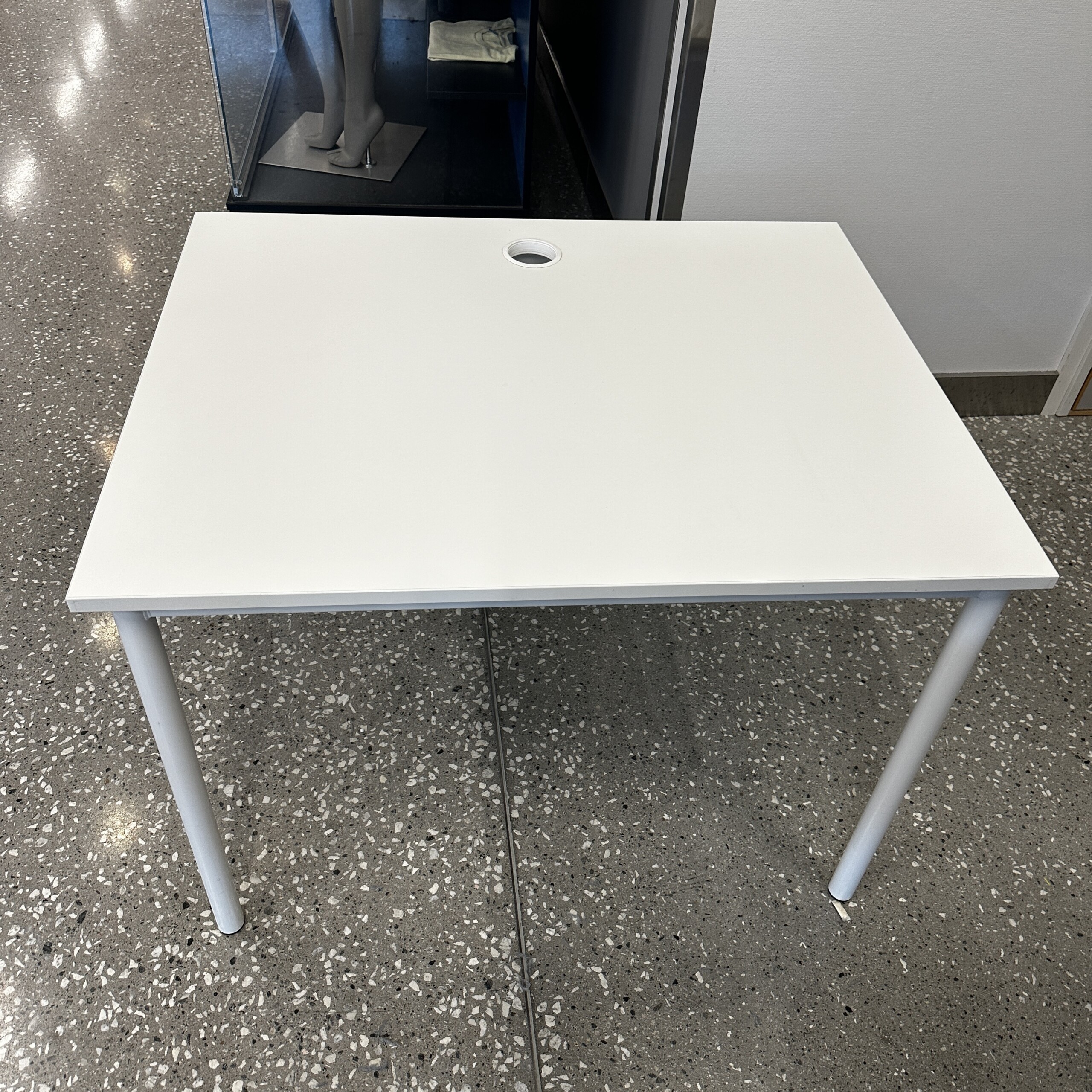 Bordsskiva i laminat (vit). Underrede i metall (vit).