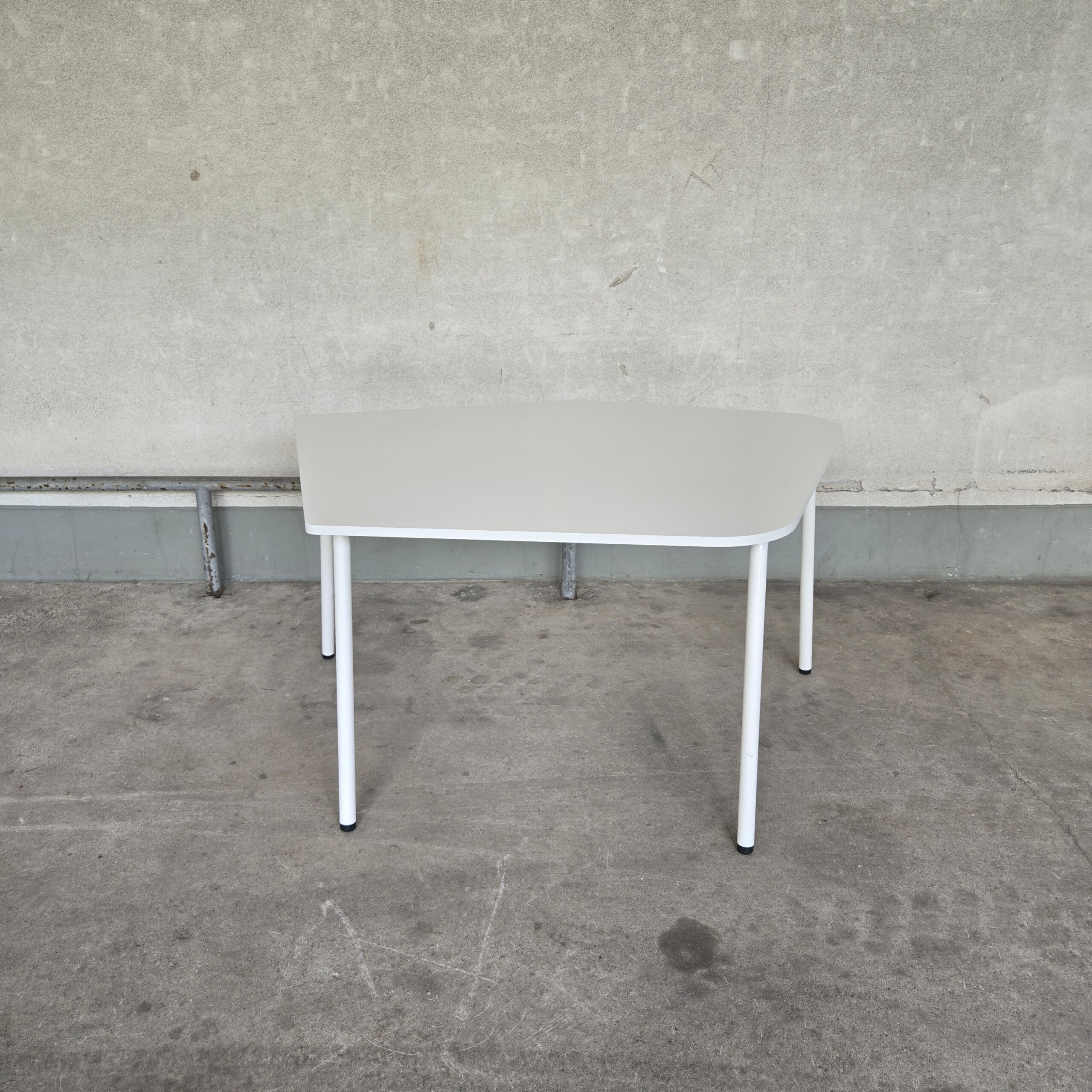 Bordsskiva i laminat (vit). Underrede i metall (vit).