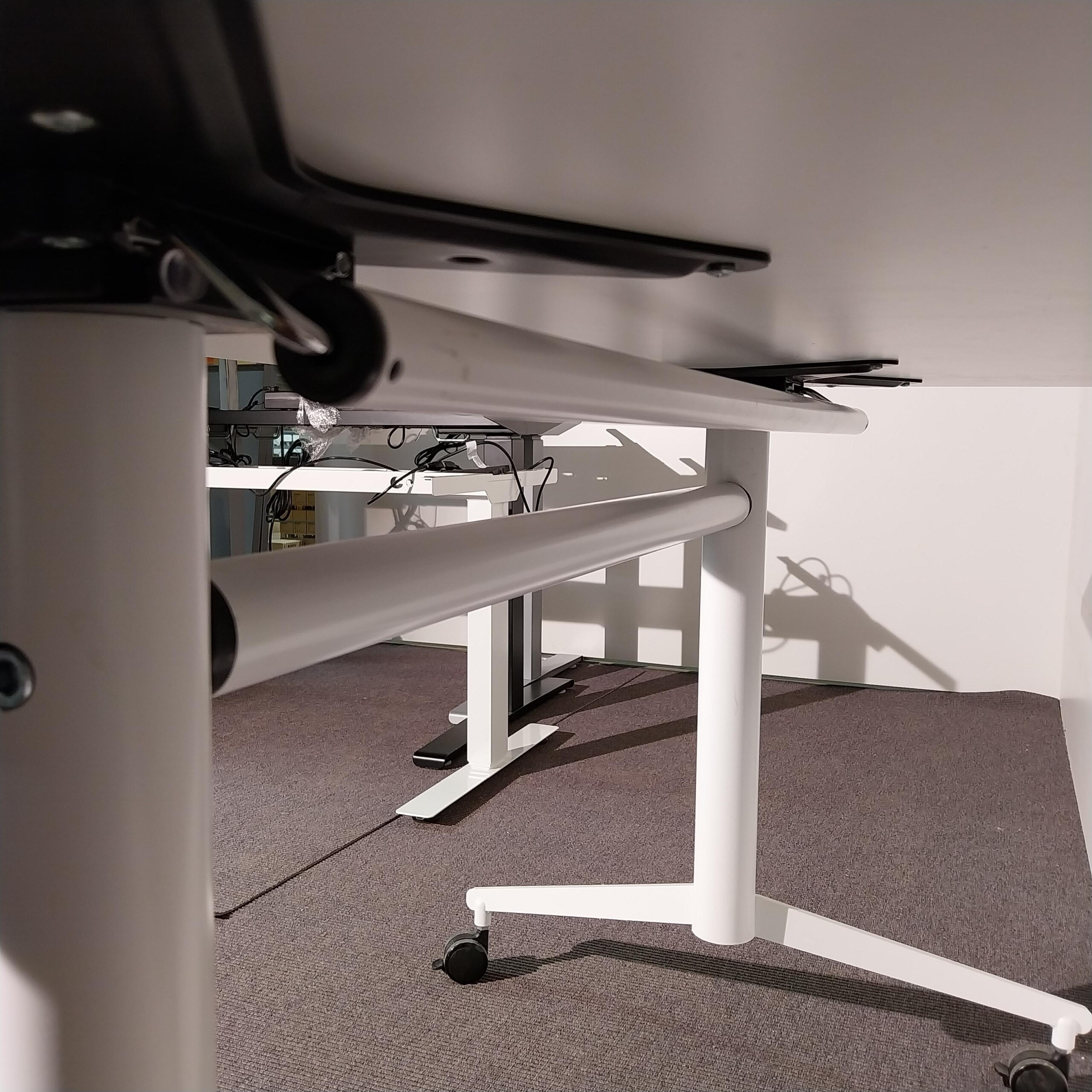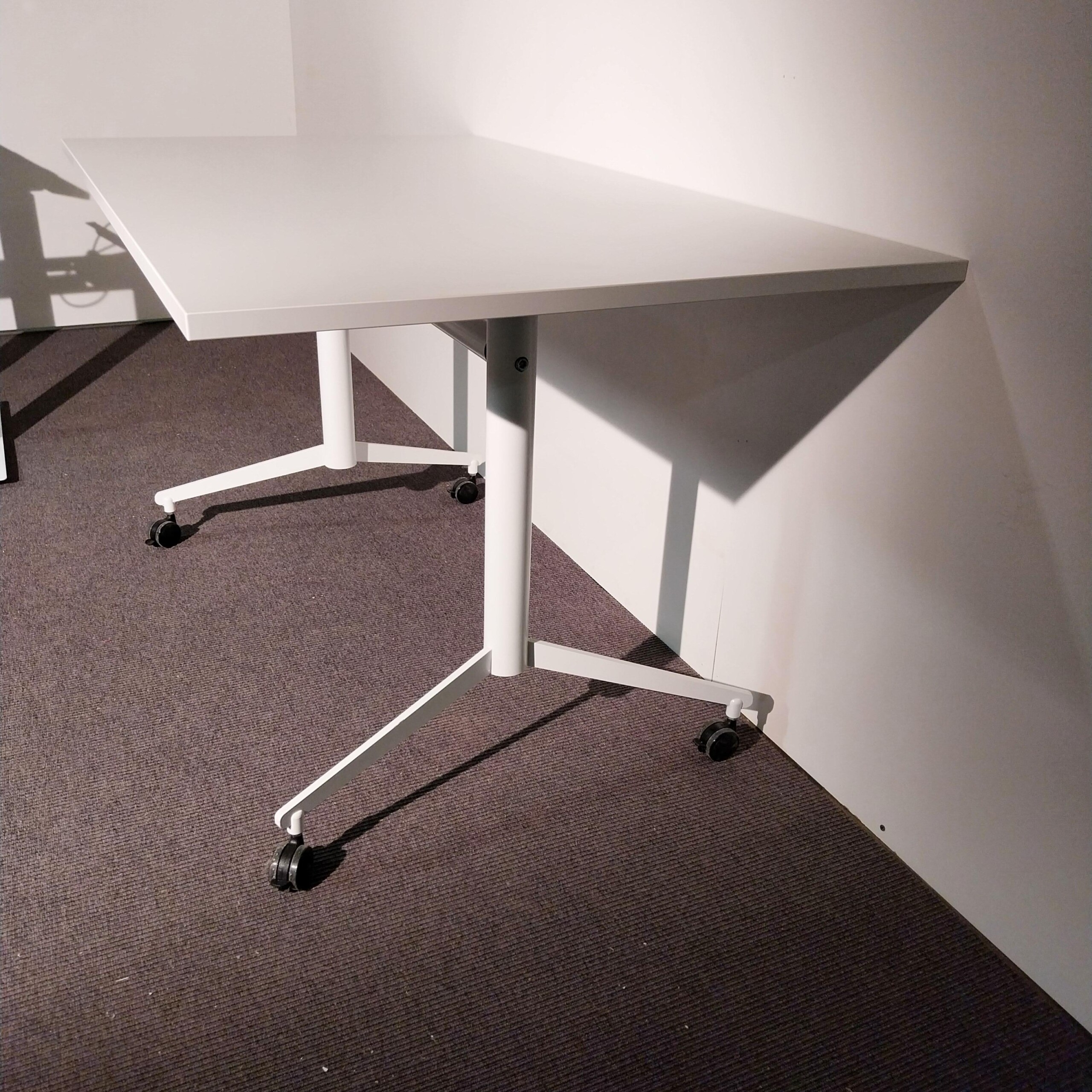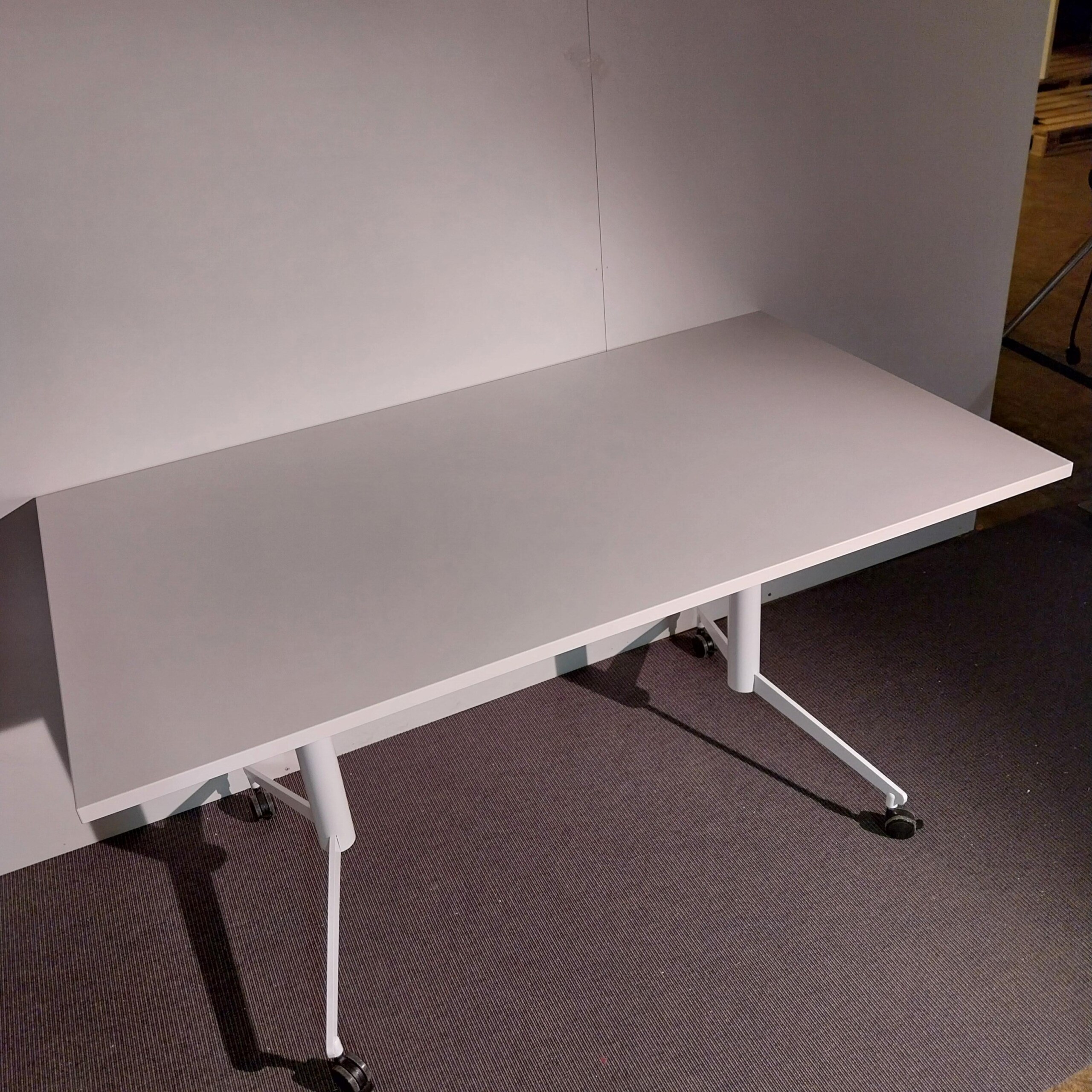 Bordsskiva i laminat (vit). Underrede i metall (vit).