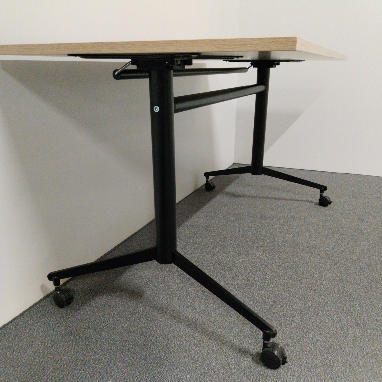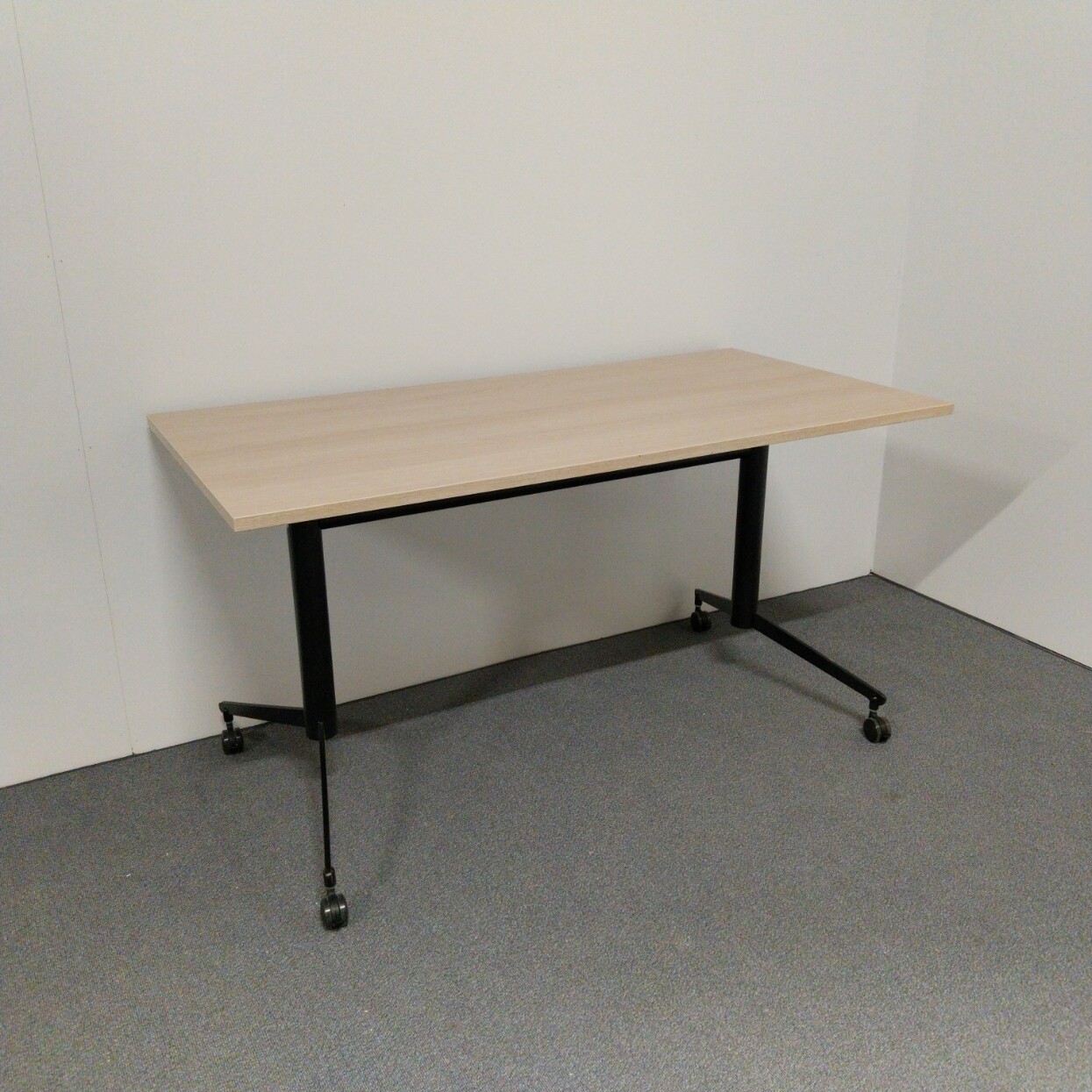 Bordsskiva i laminat (ek). Underrede i metall (svart).