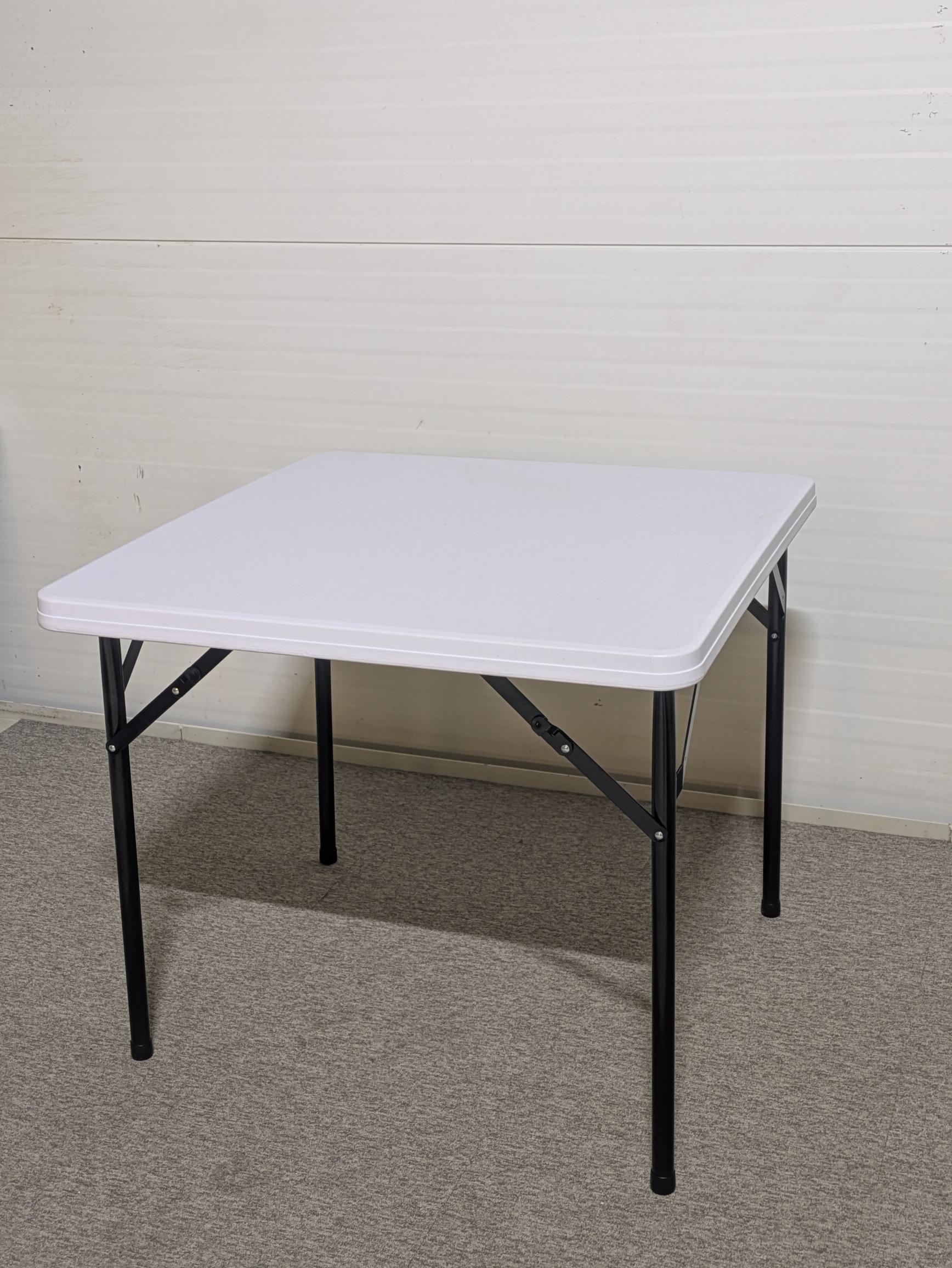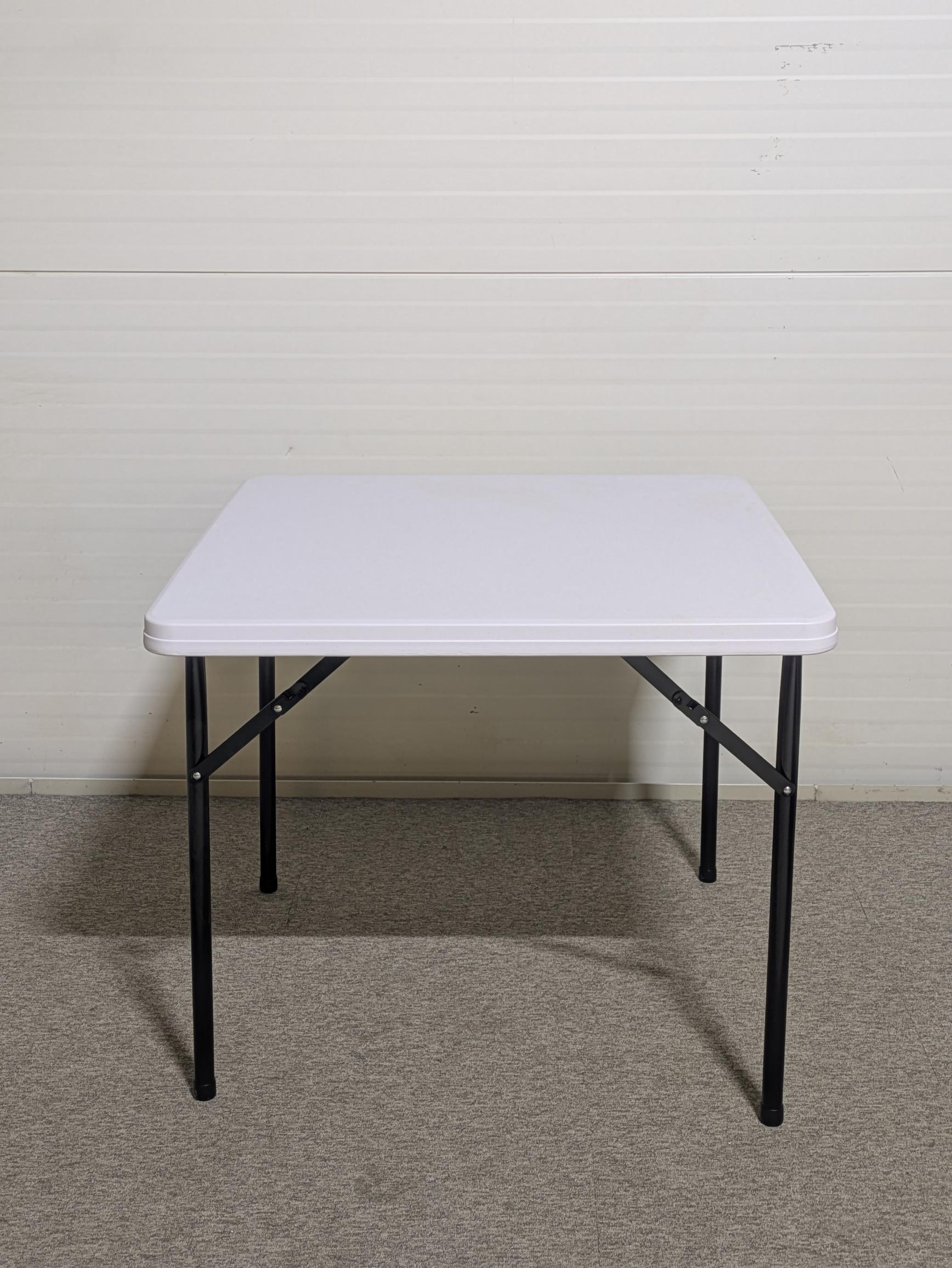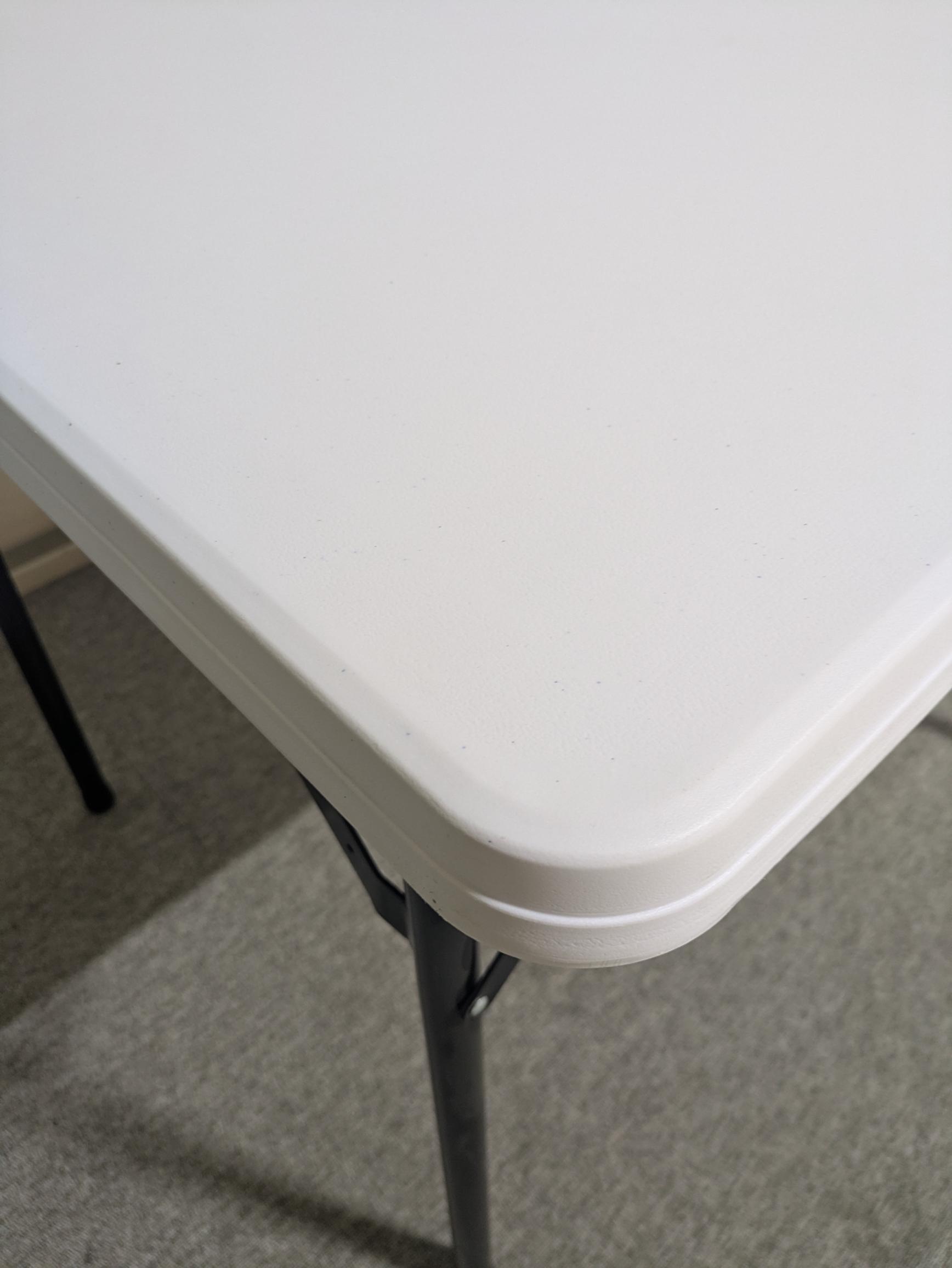 Bordsskiva i plast (vit). Underrede i metall (svart).
