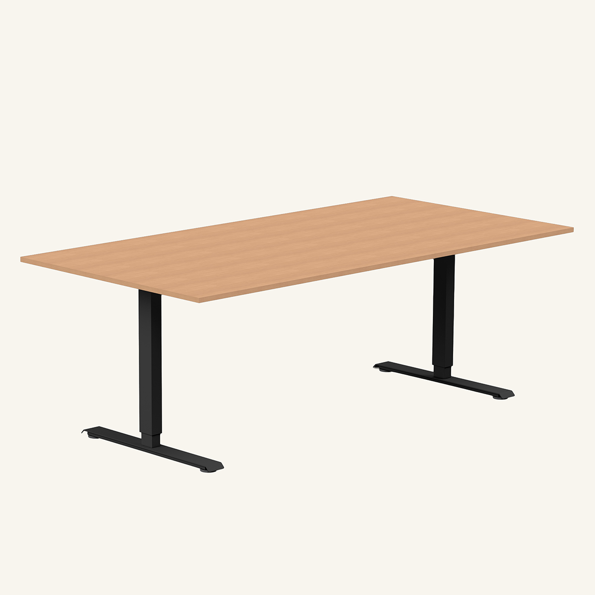 Bordsskiva i trä (bok). Underrede i metall (svart).