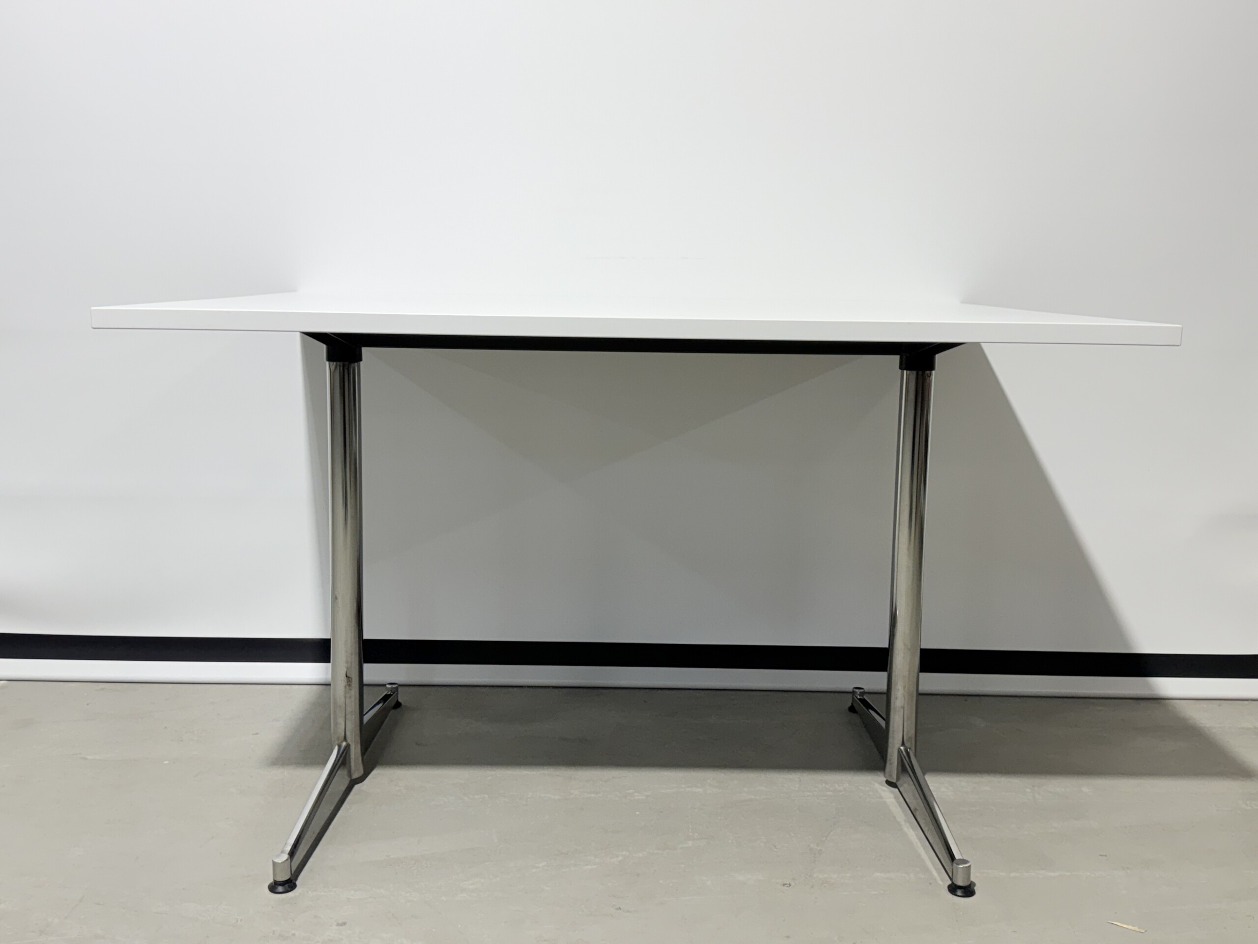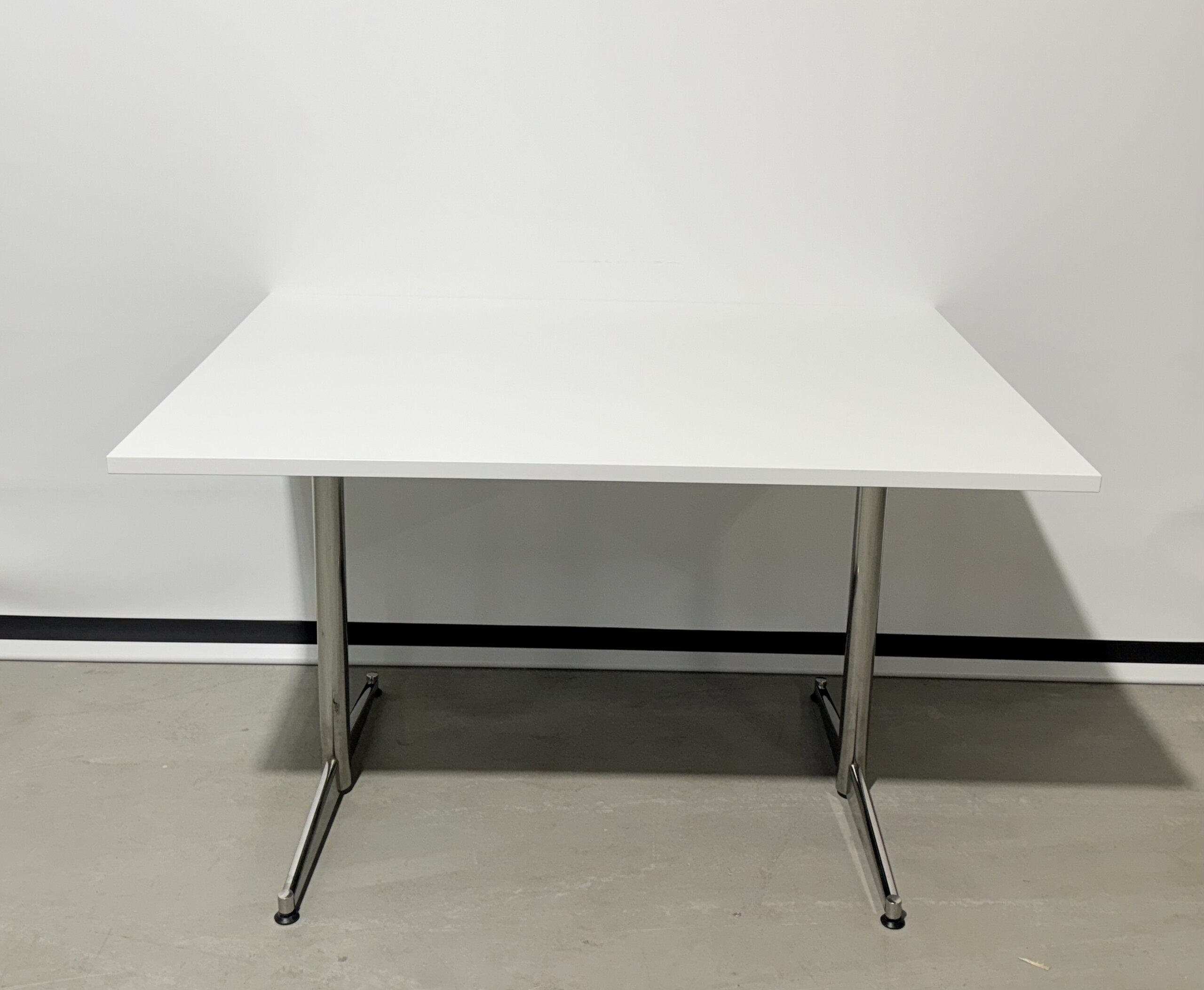 Bordsskiva i laminat (vit). Underrede i metall (aluminium).