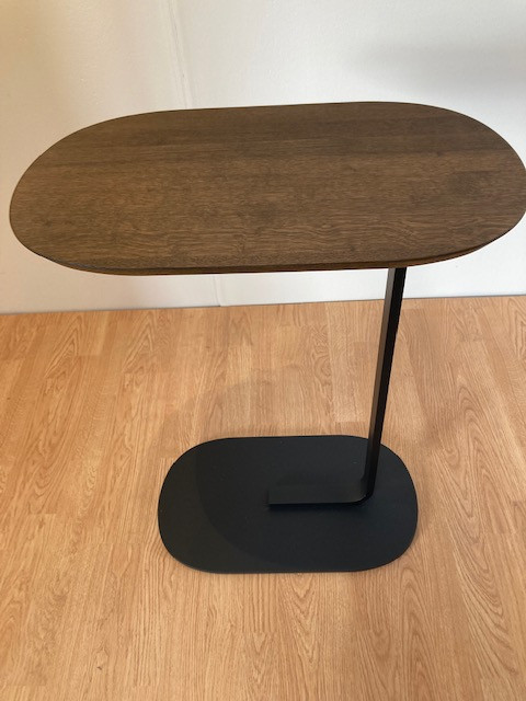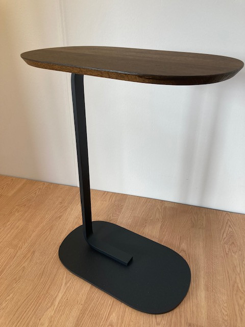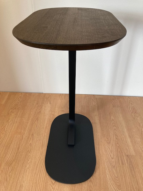 Bordsskiva i trä (ek). Underrede i metall (svart).