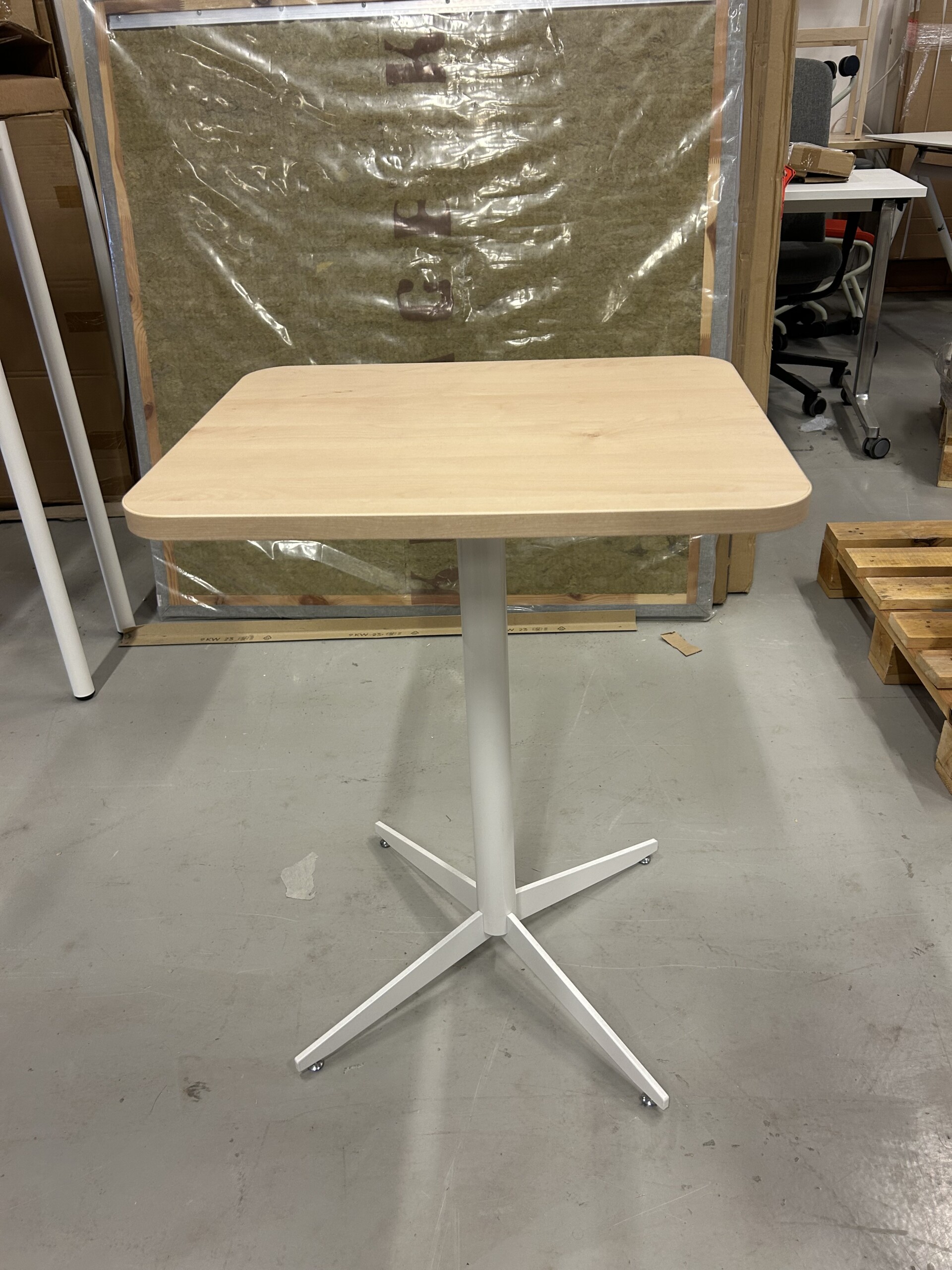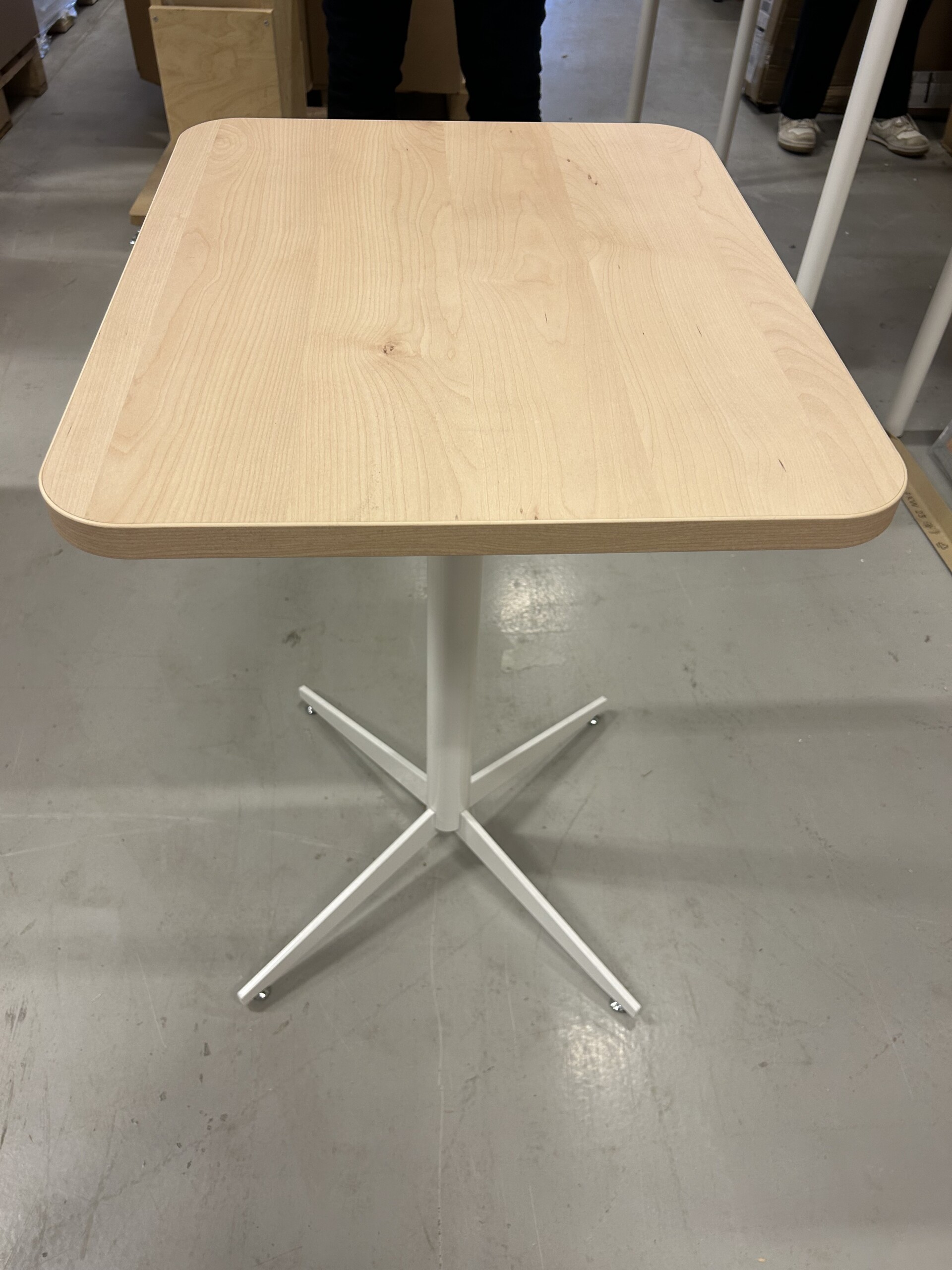 Bordsskiva i laminat (björk). Underrede i metall (vit).