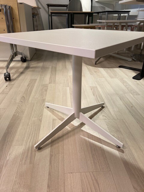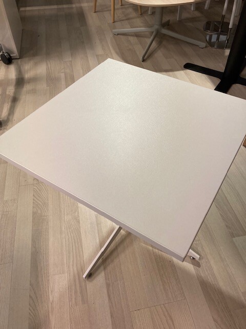 Bordsskiva i laminat (vit). Underrede i metall (vit).