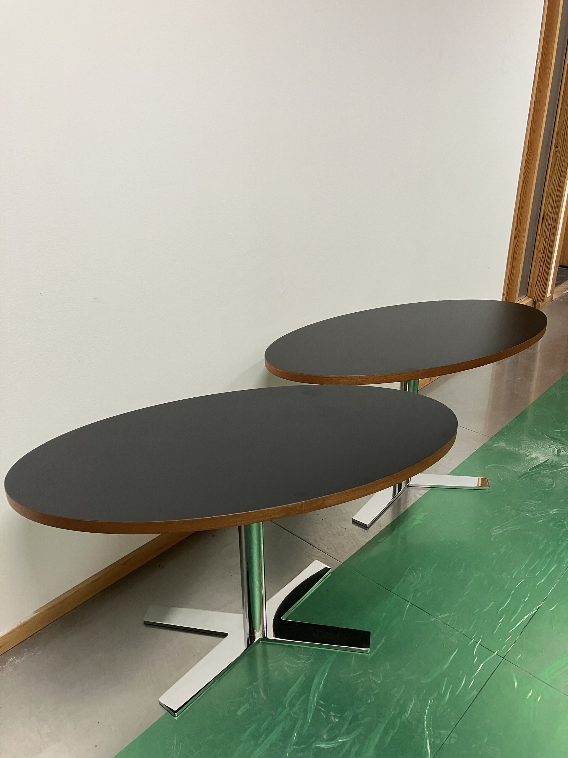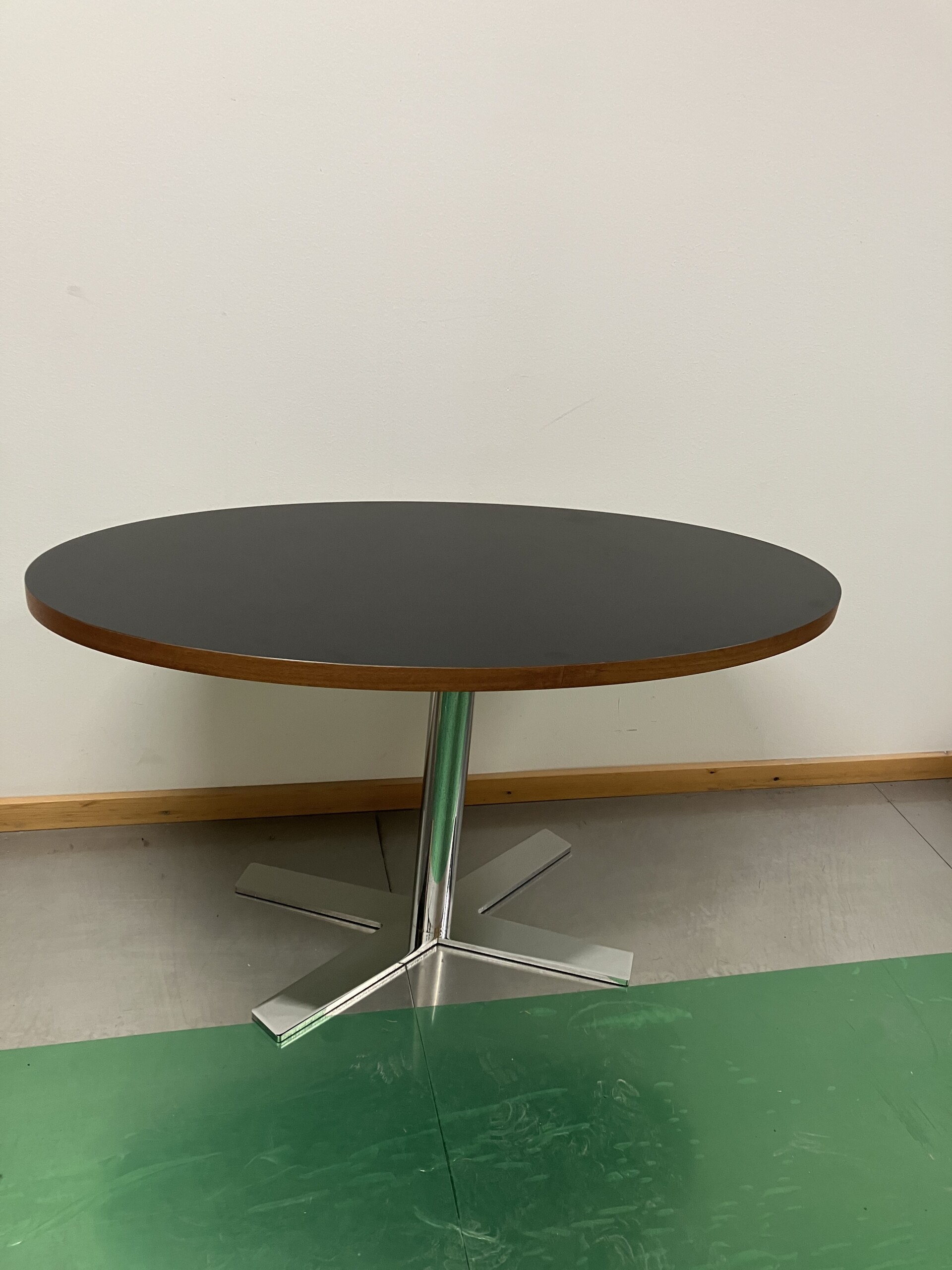 Bordsskiva i laminat (svart). Underrede i metall (krom).