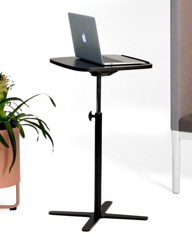 Bordsskiva i laminat (svart). Underrede i metall (svart). Höj- och sänkbart.