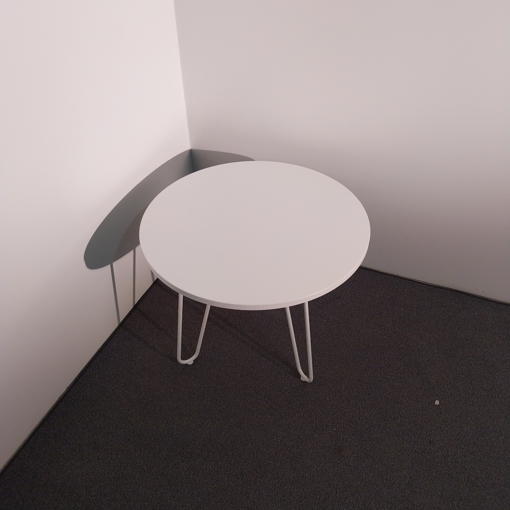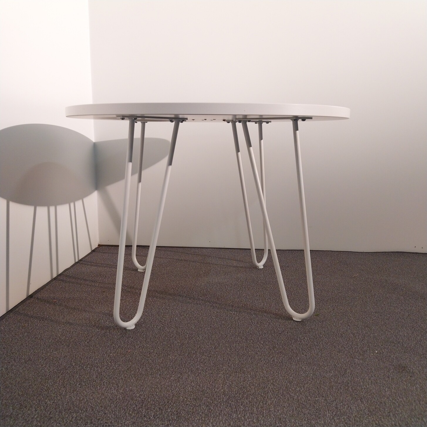 Bordsskiva i laminat (vit). Underrede i metall (vit).