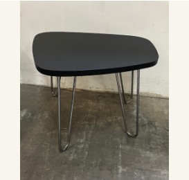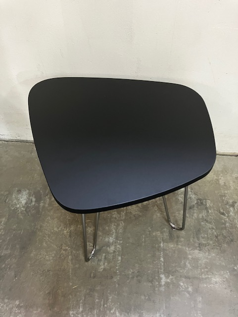 Bordsskiva i linoleum (svart). Underrede i metall (krom).