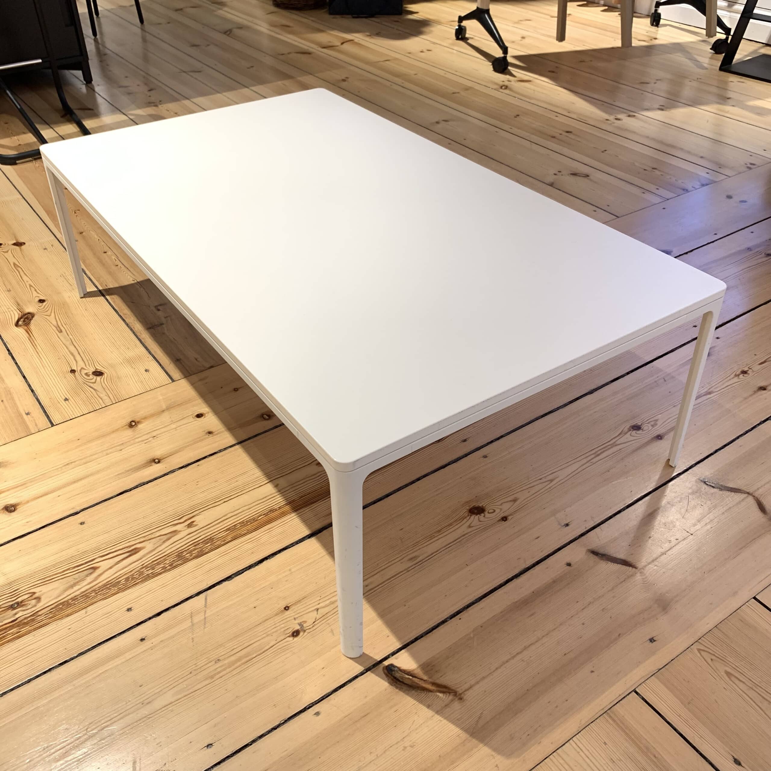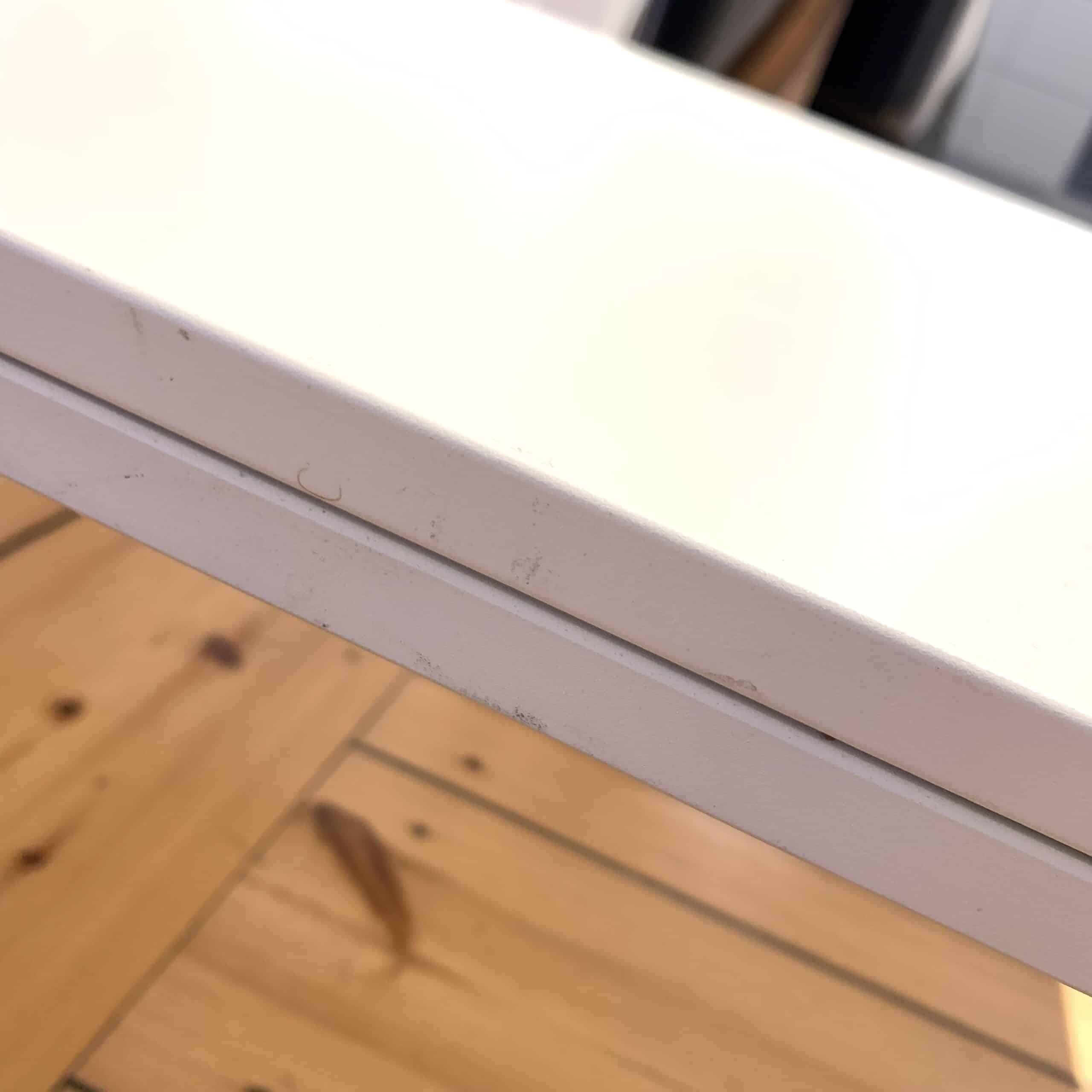 Bordsskiva i trä (vit). Underrede i metall (vit).