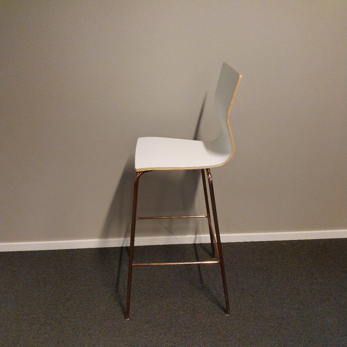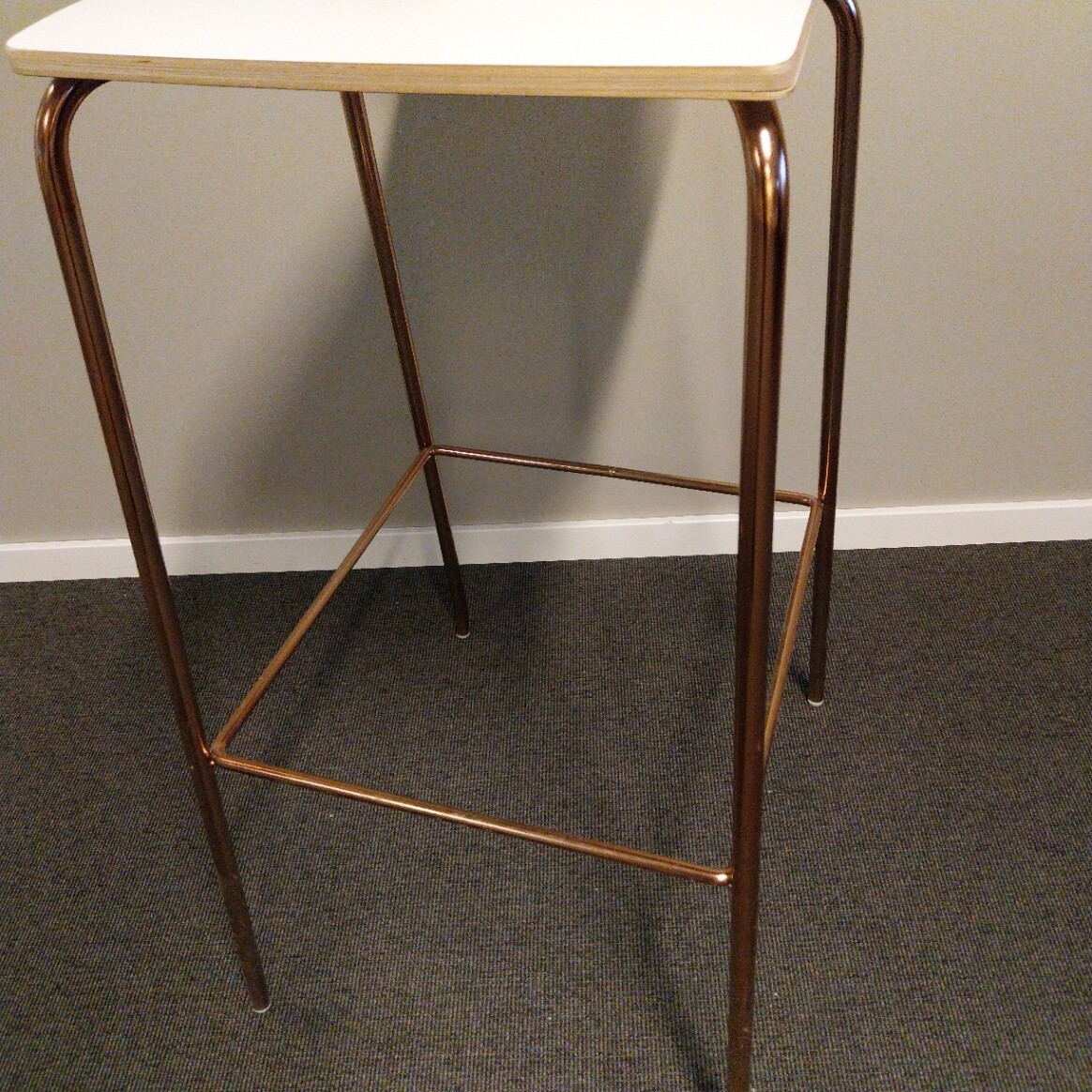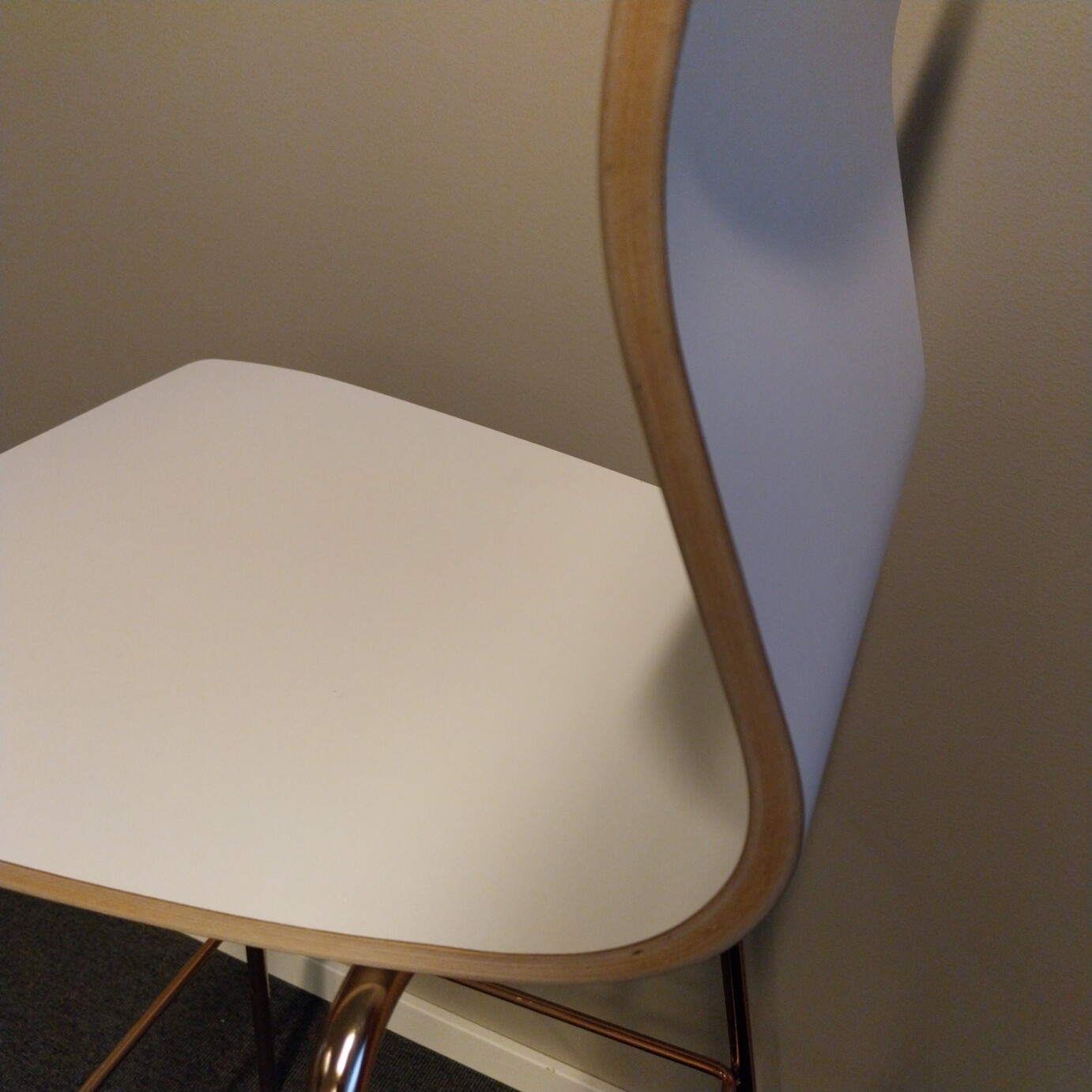 Sits och rygg i laminat (vit). Ben i metall (koppar).