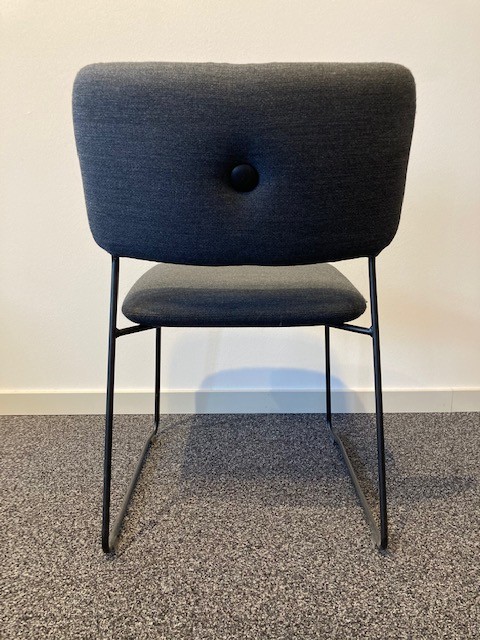 Sits och rygg i tyg (grå). Medstativ i metall (svart).