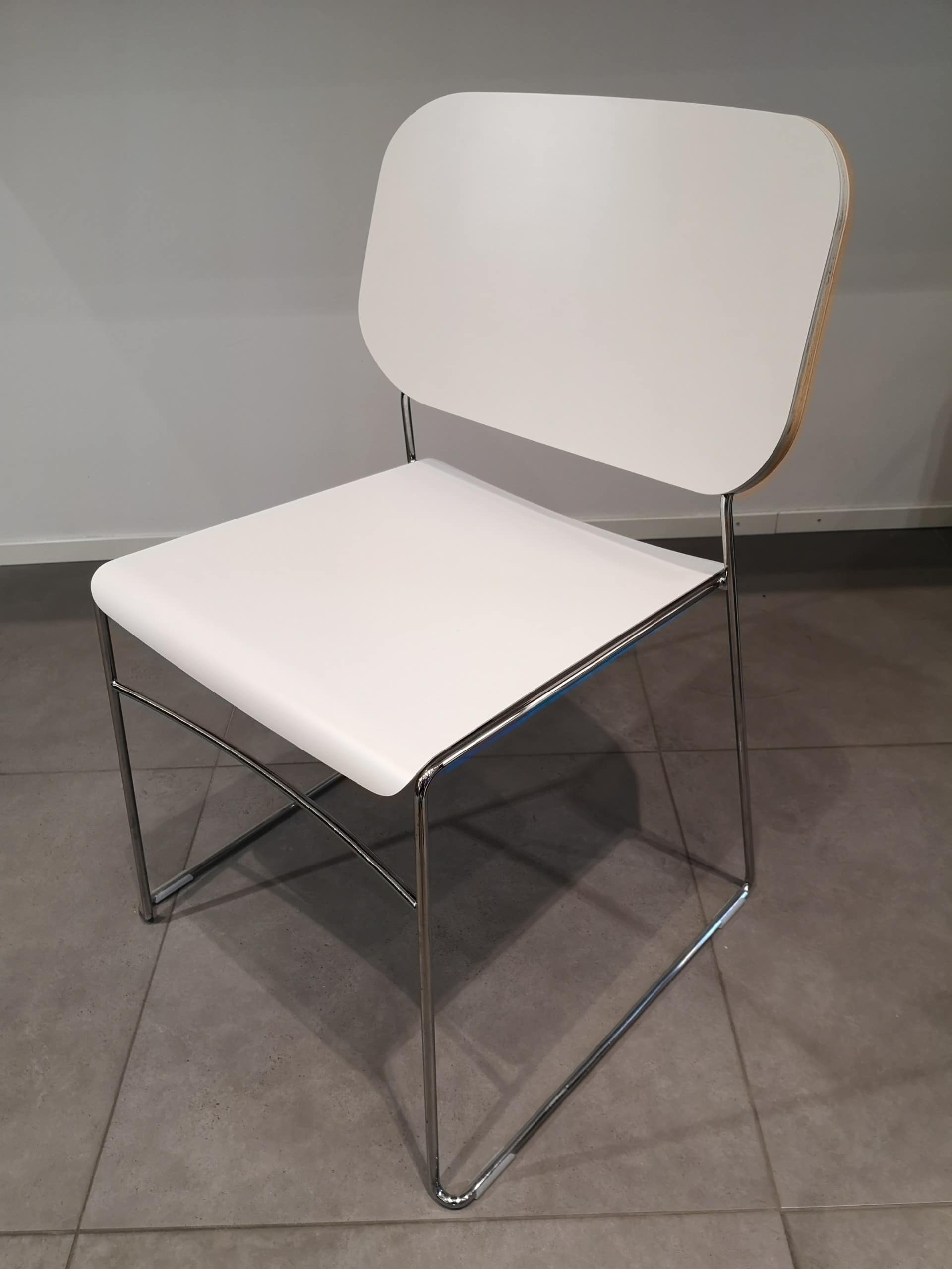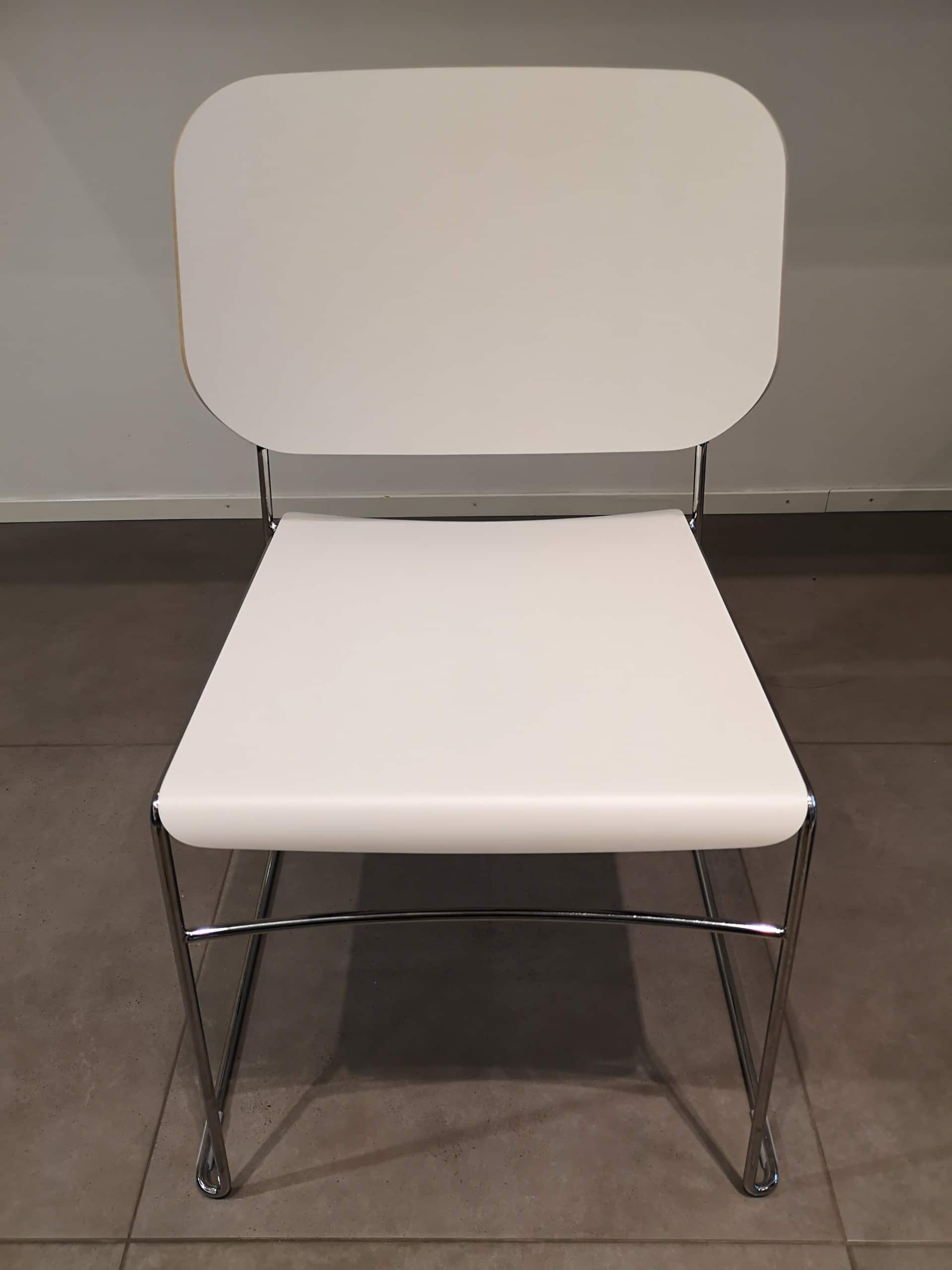 Sits och rygg i laminat (vit). Medstativ i metall (krom).