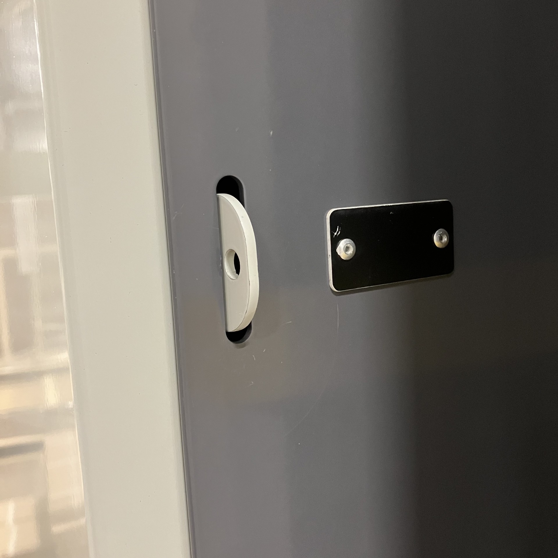 Stomme i metall (grå). Front i metall (grå).