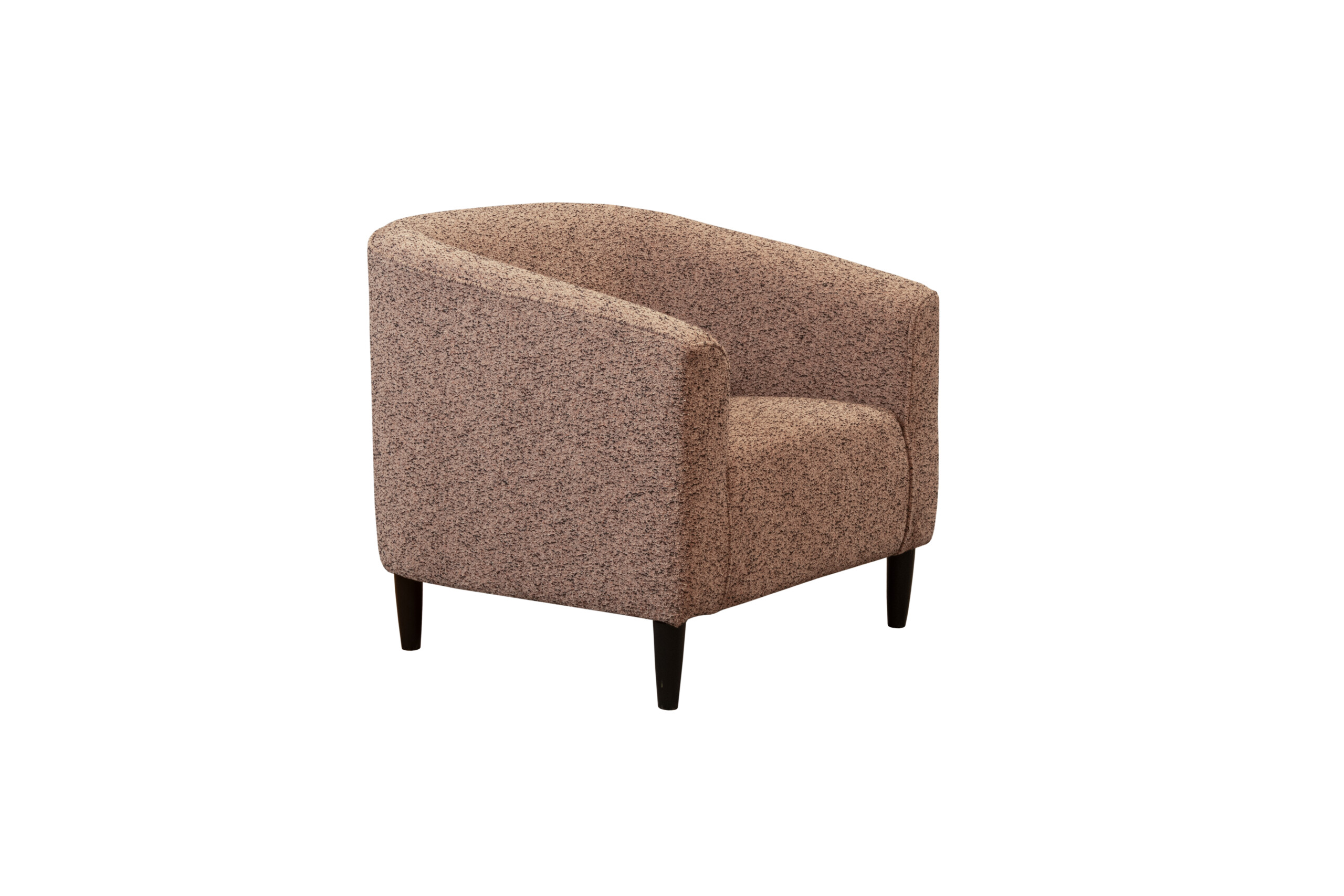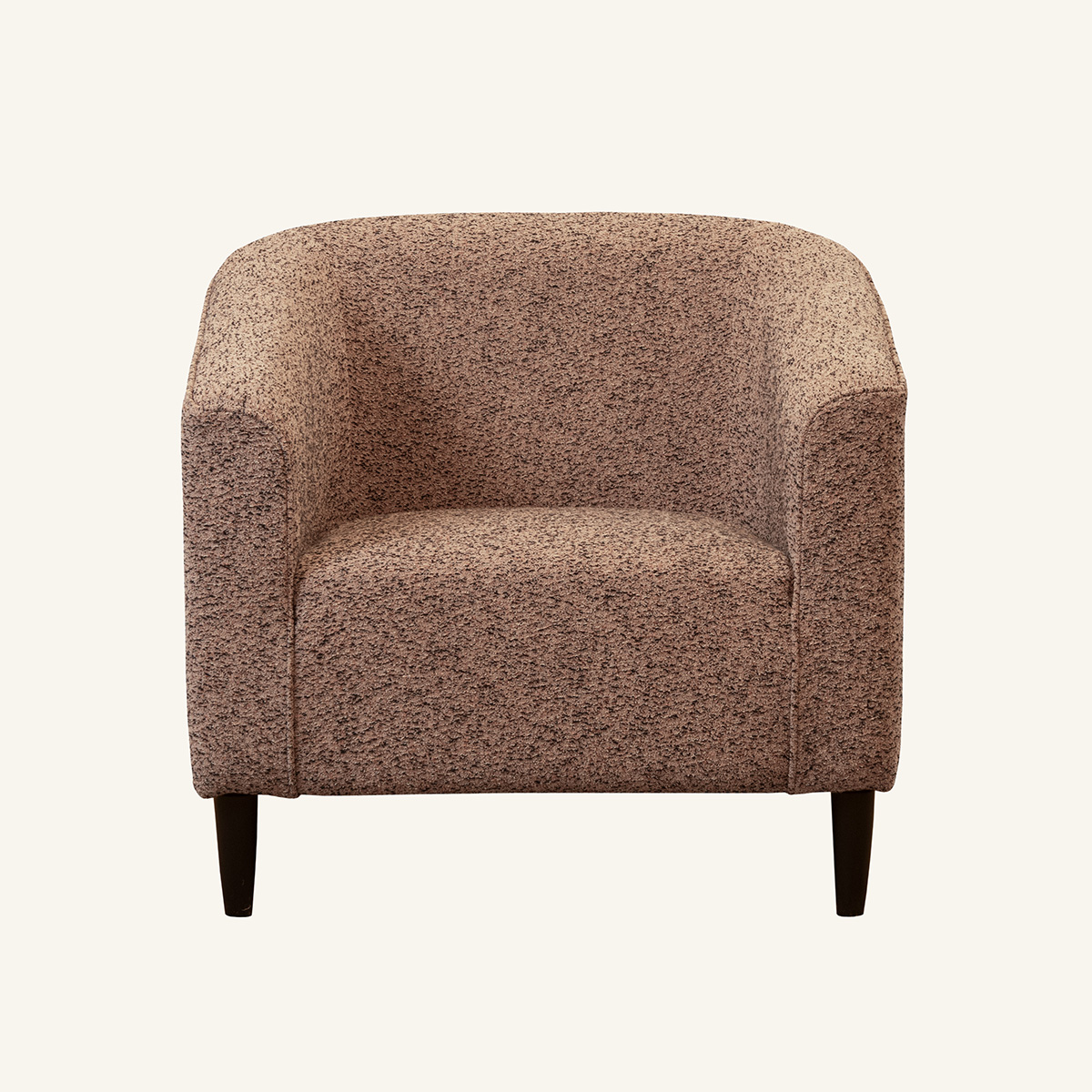 Sits och rygg i tyg (rosa). Ben i trä (svart).