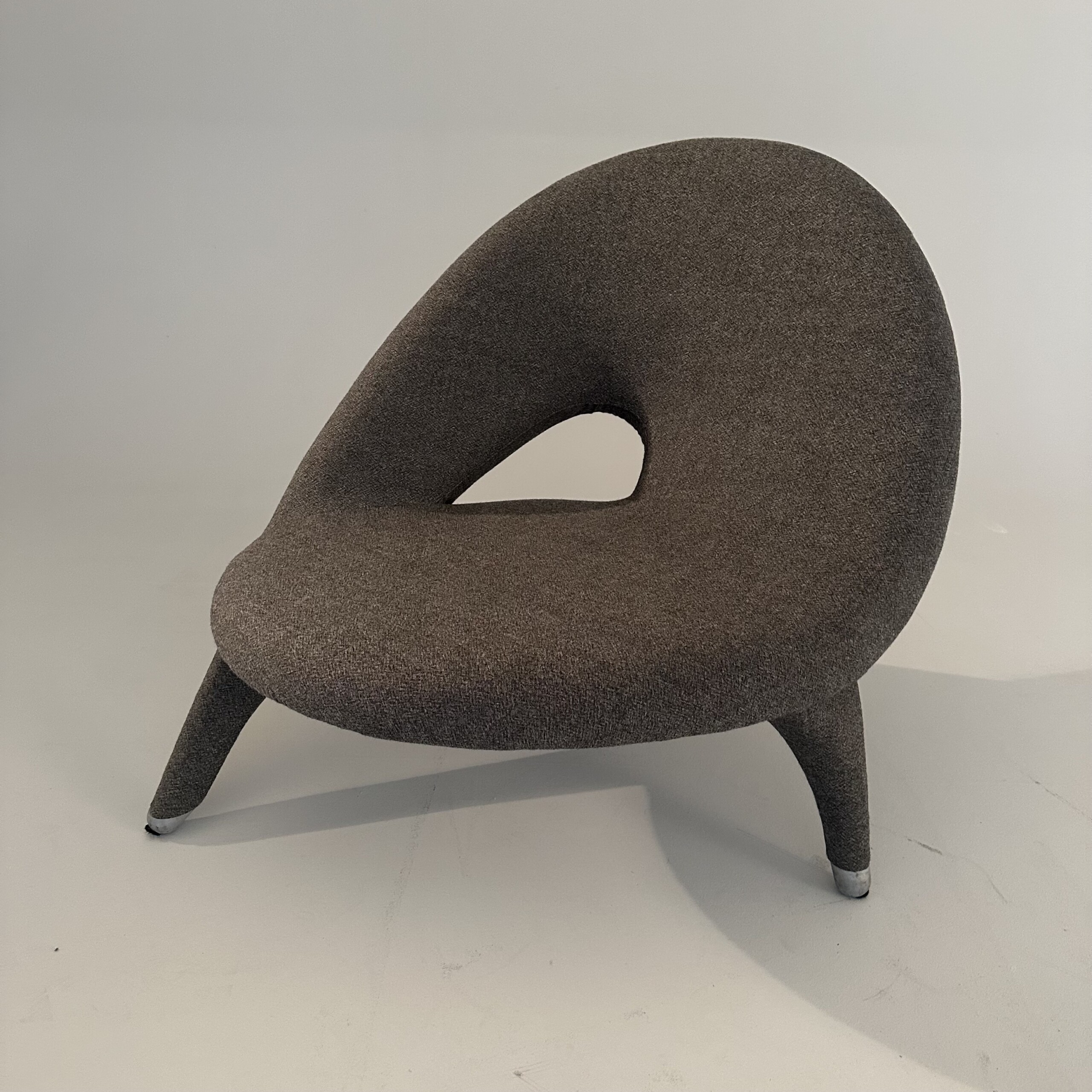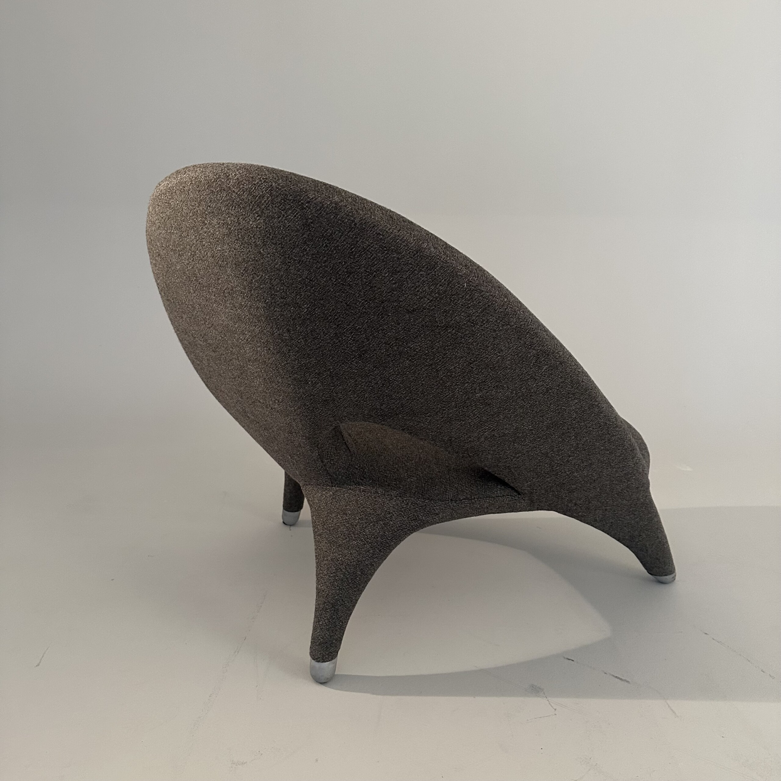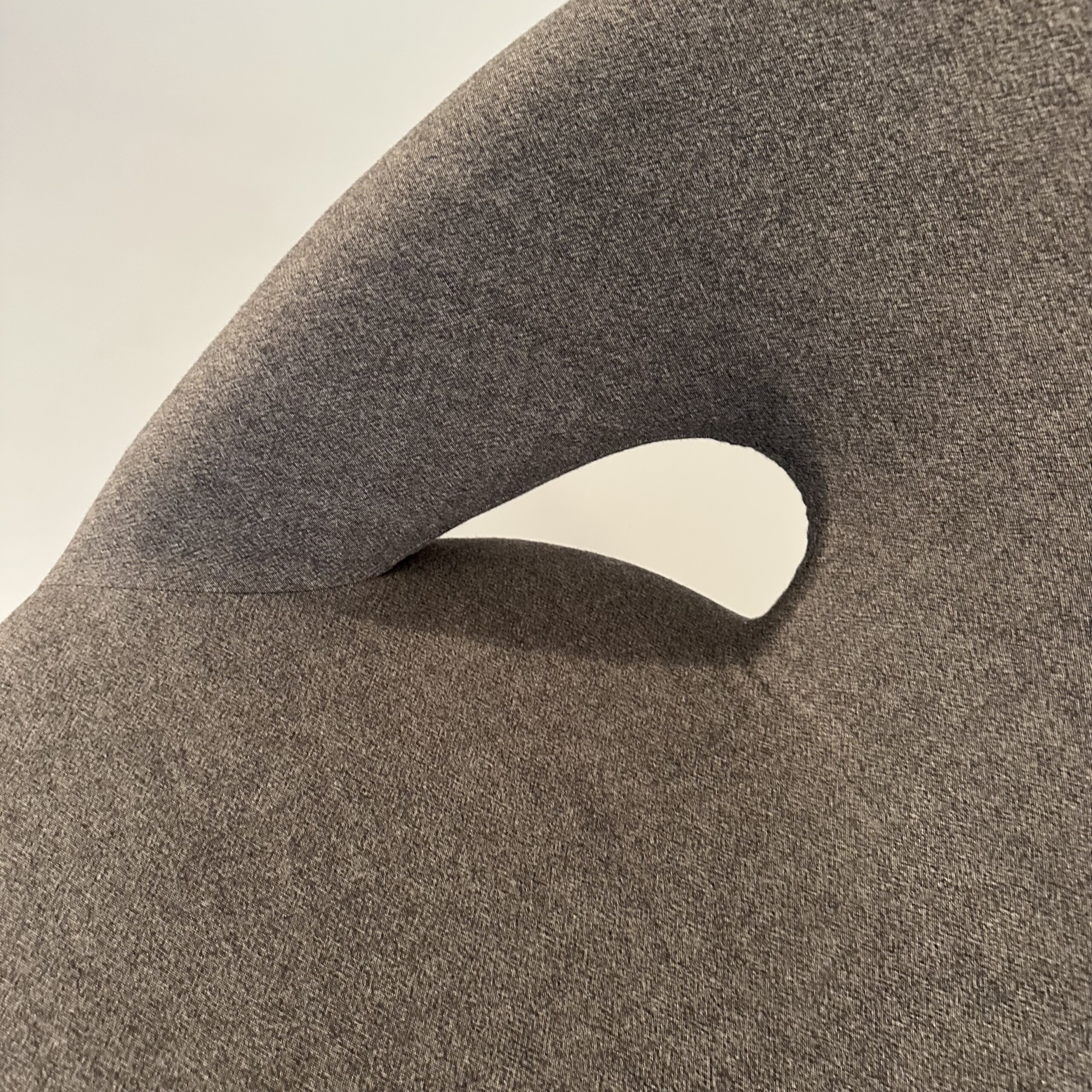Sits och rygg i tyg (grå). Ben i metall (aluminium).