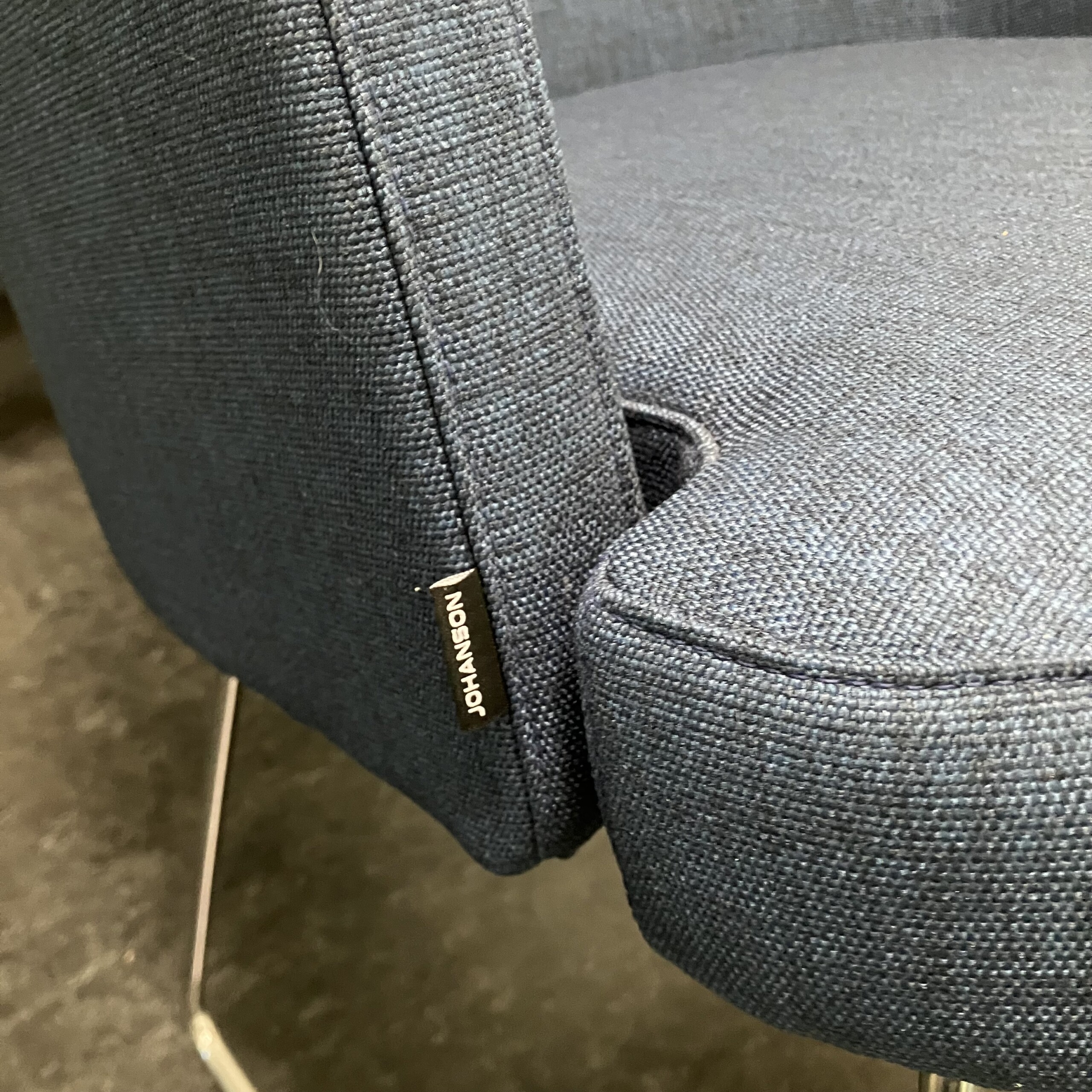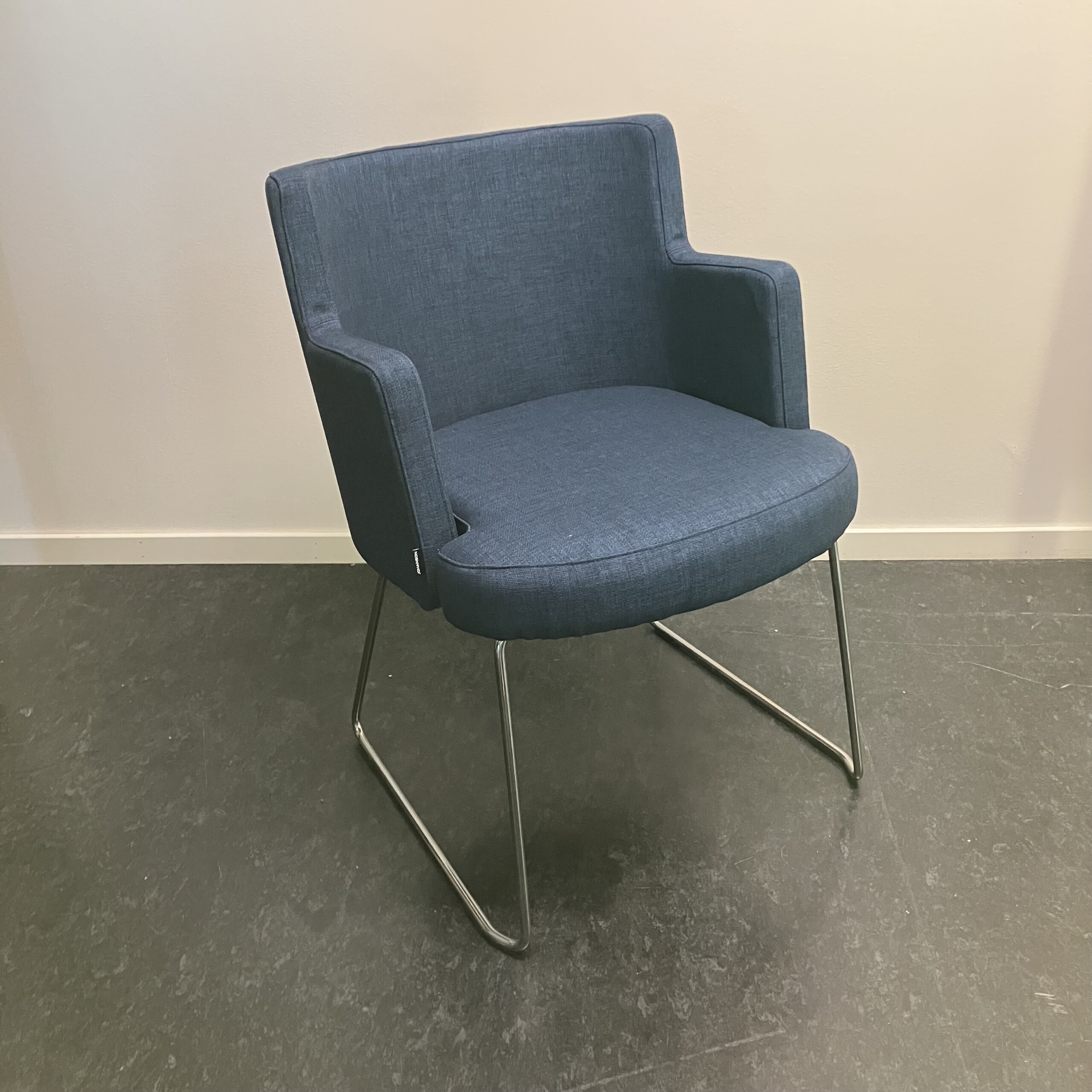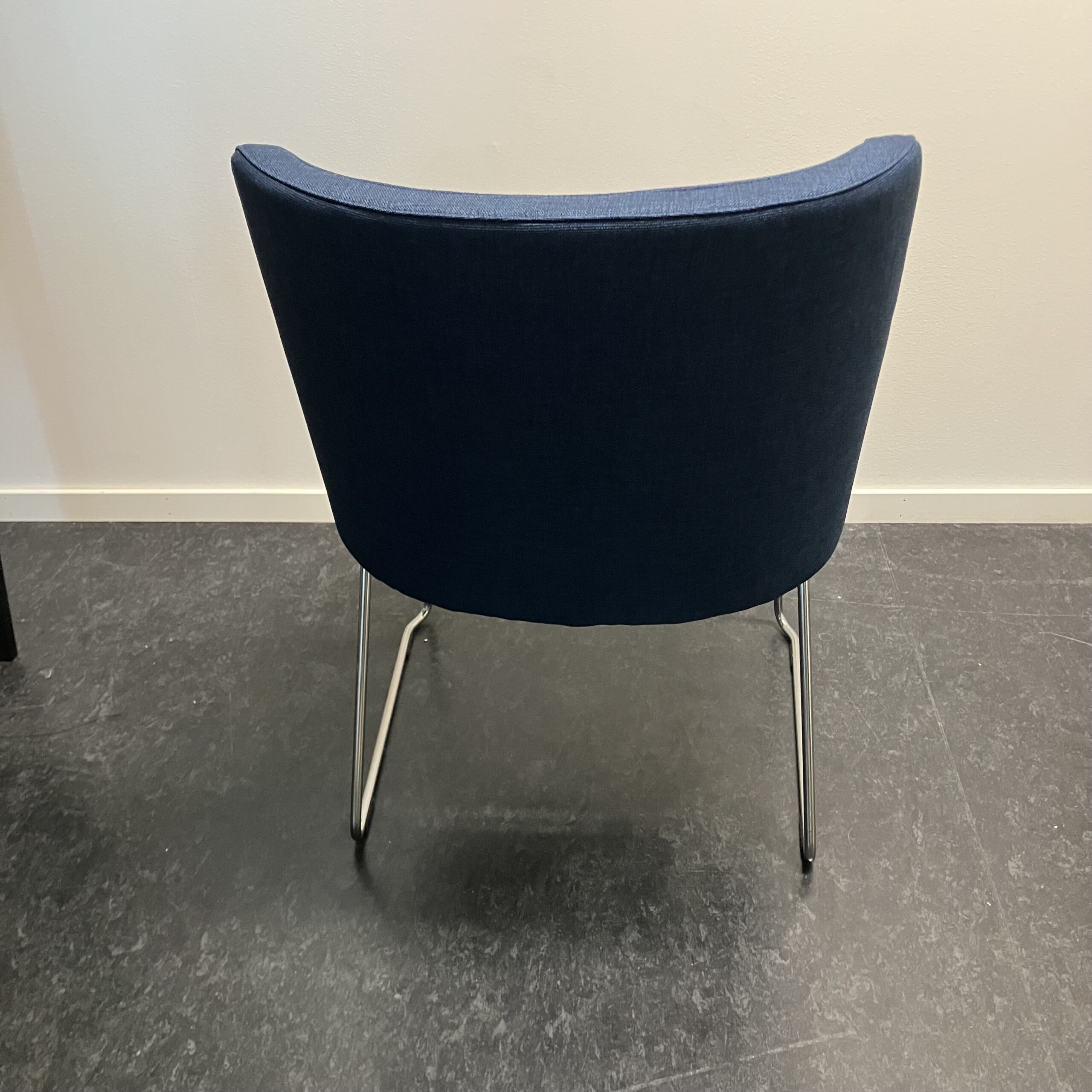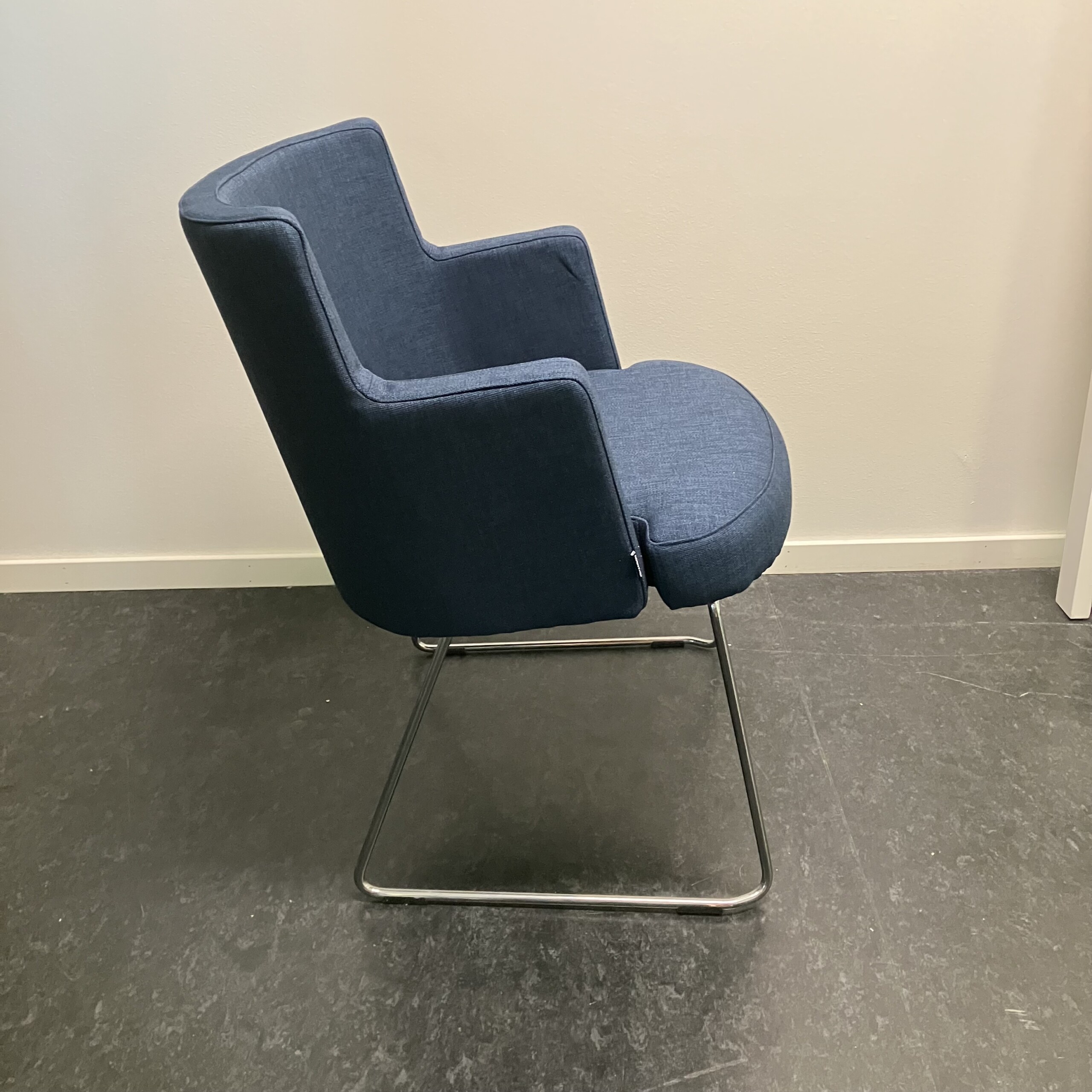 Sits och rygg i tyg (blå). Medstativ i metall (krom).