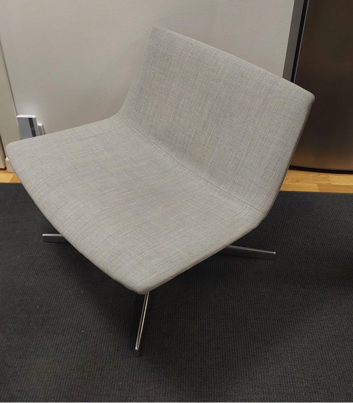 Sits och rygg i tyg (grå). Kryssfot i metall (krom).