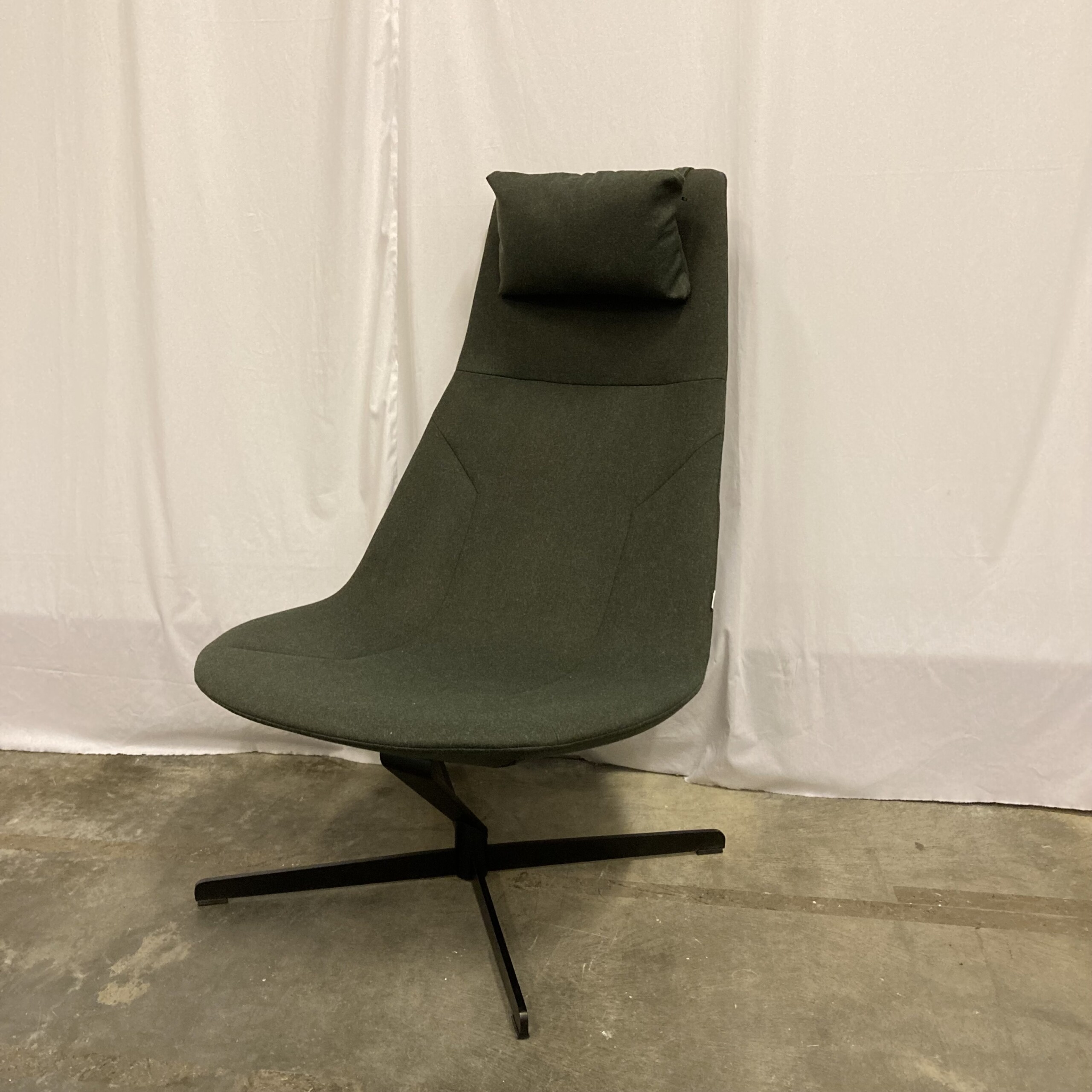 Sits och rygg i tyg (grön). Kryssfot i metall (svart).