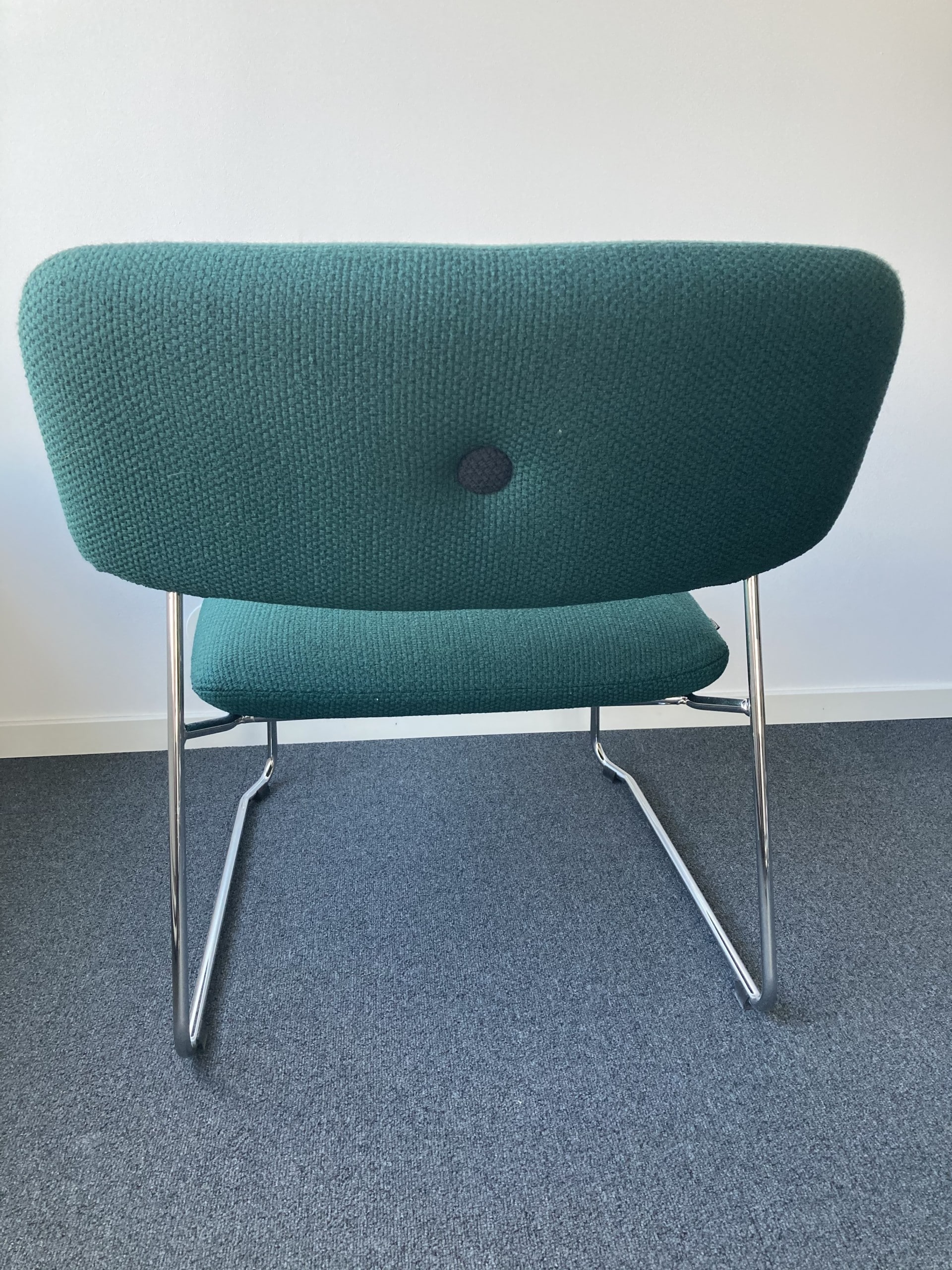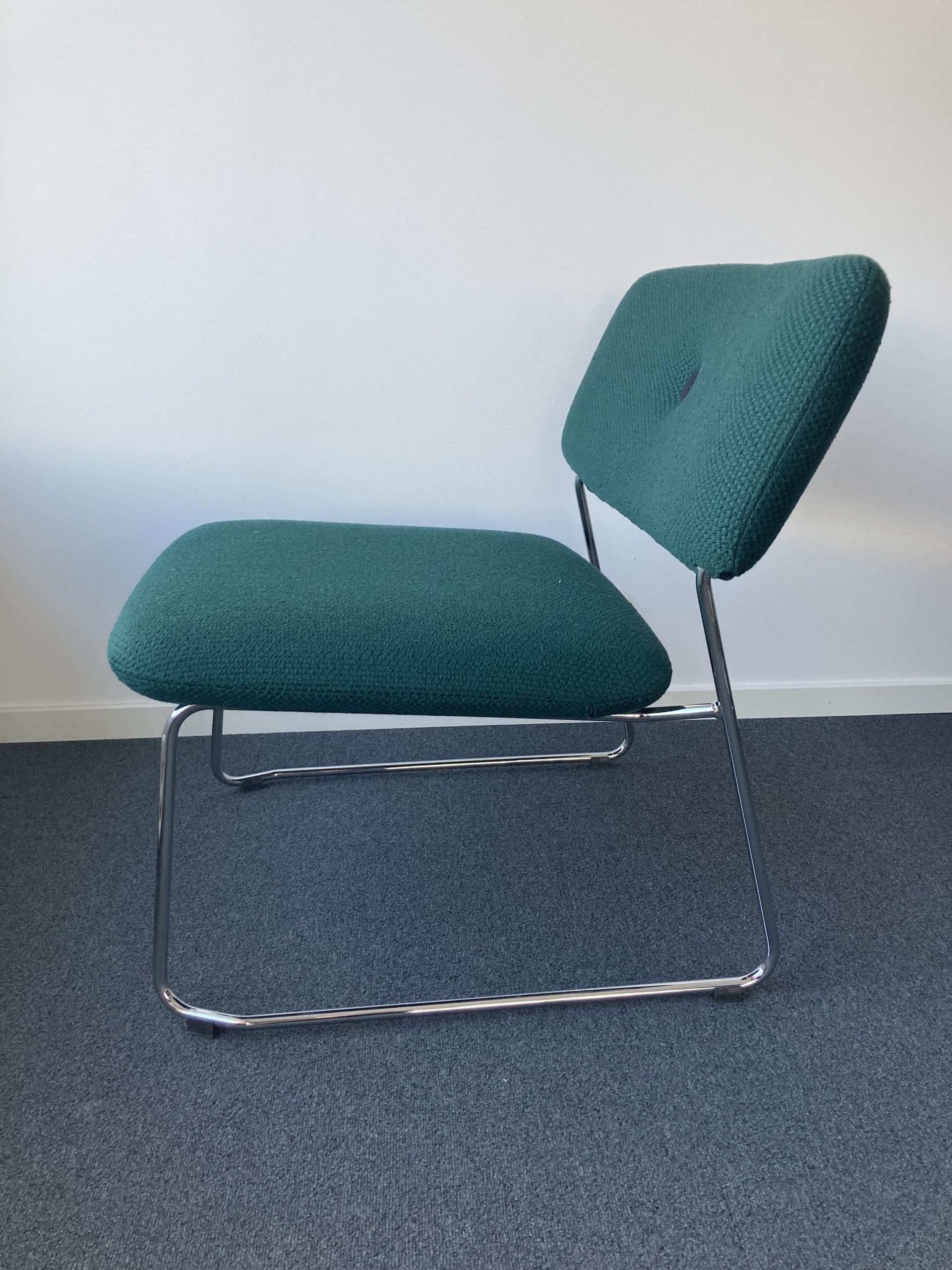 Sits och rygg i tyg (grön). Medstativ i metall (krom).
