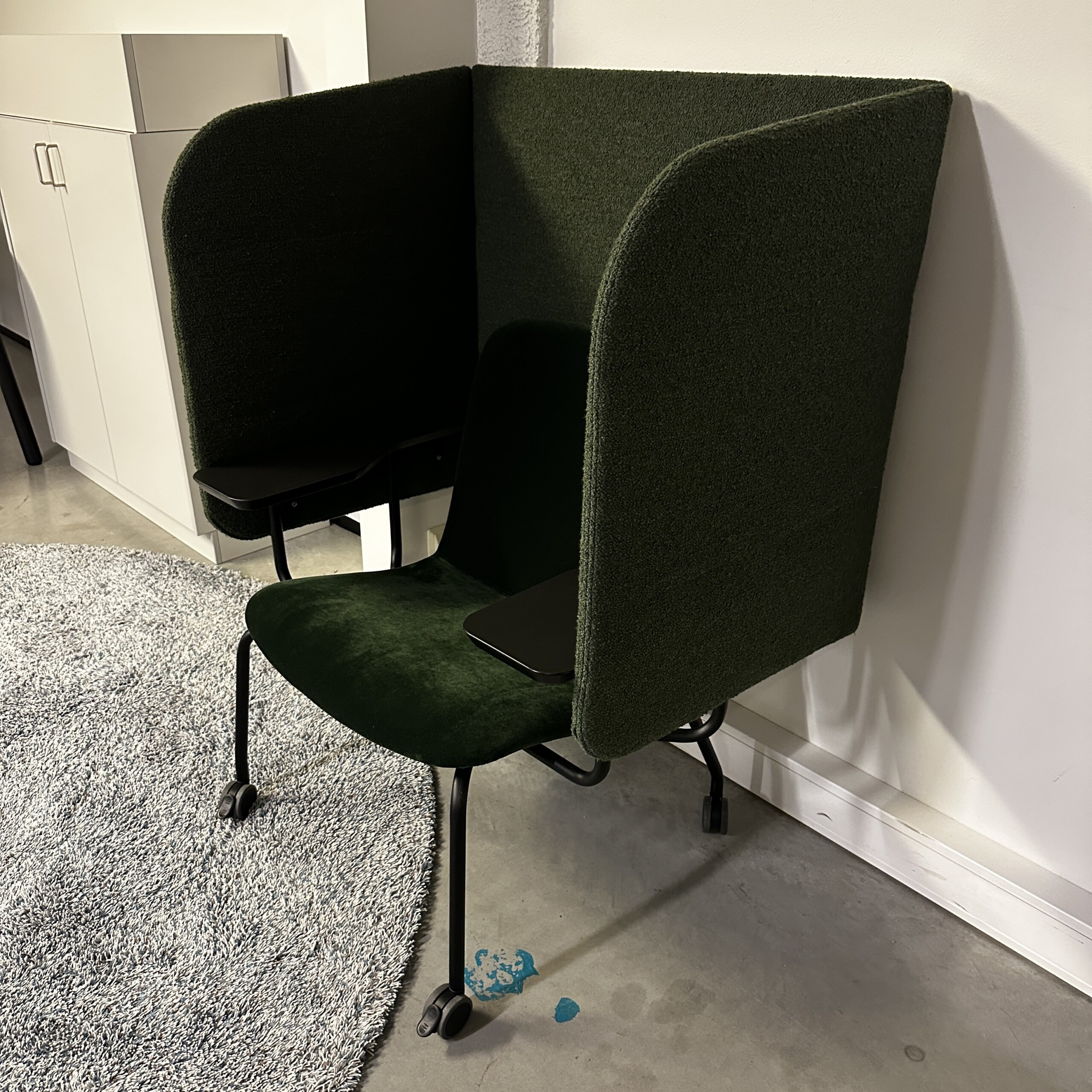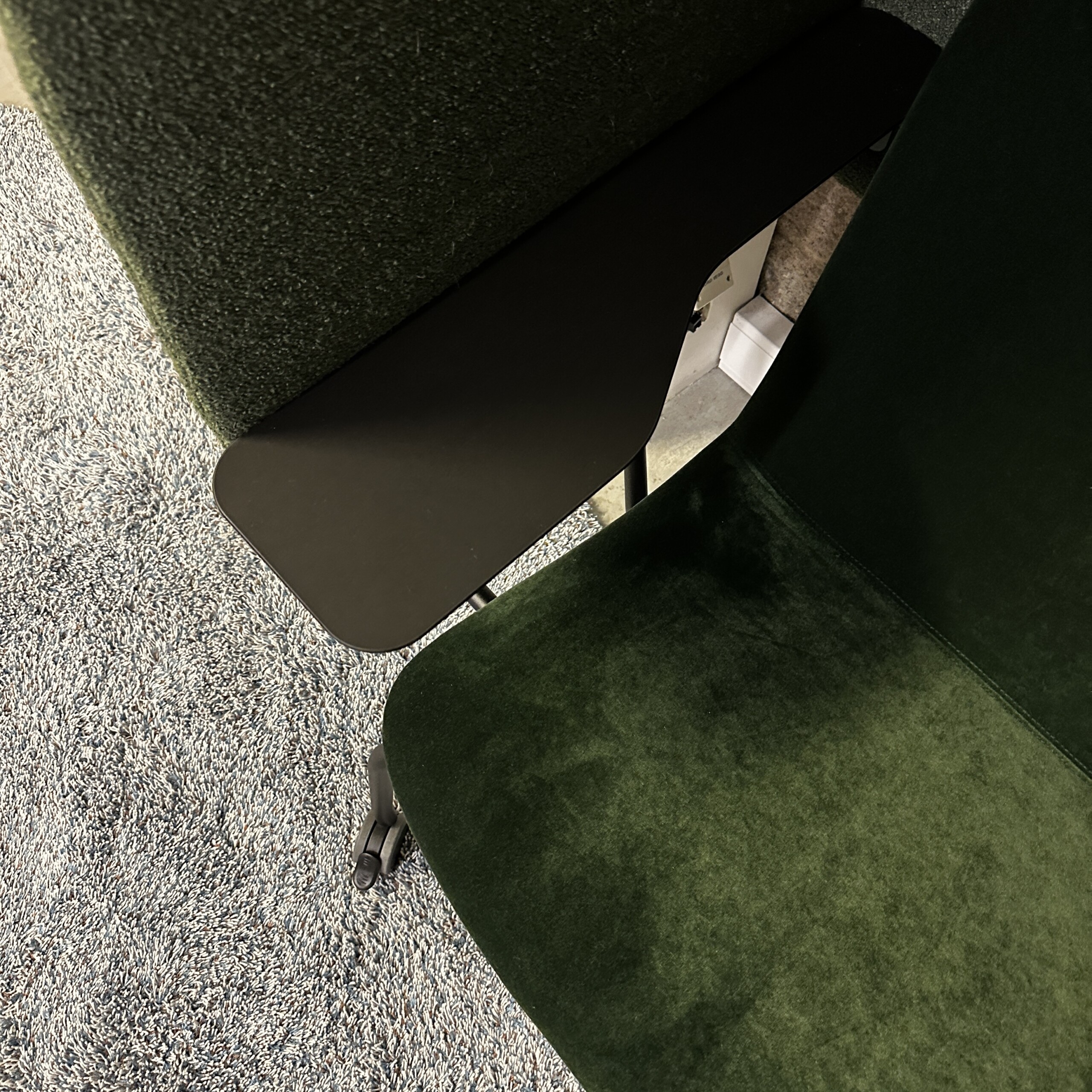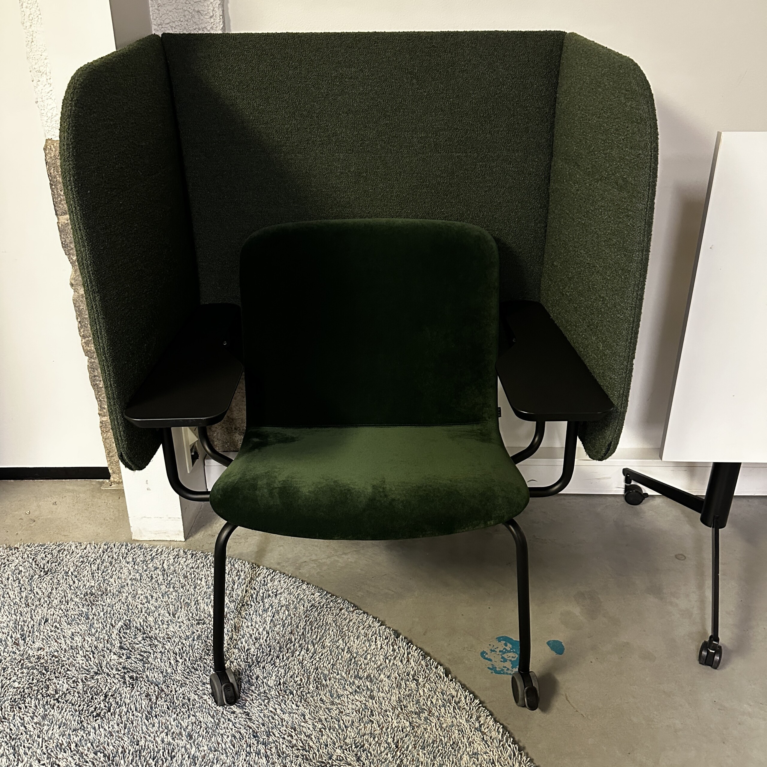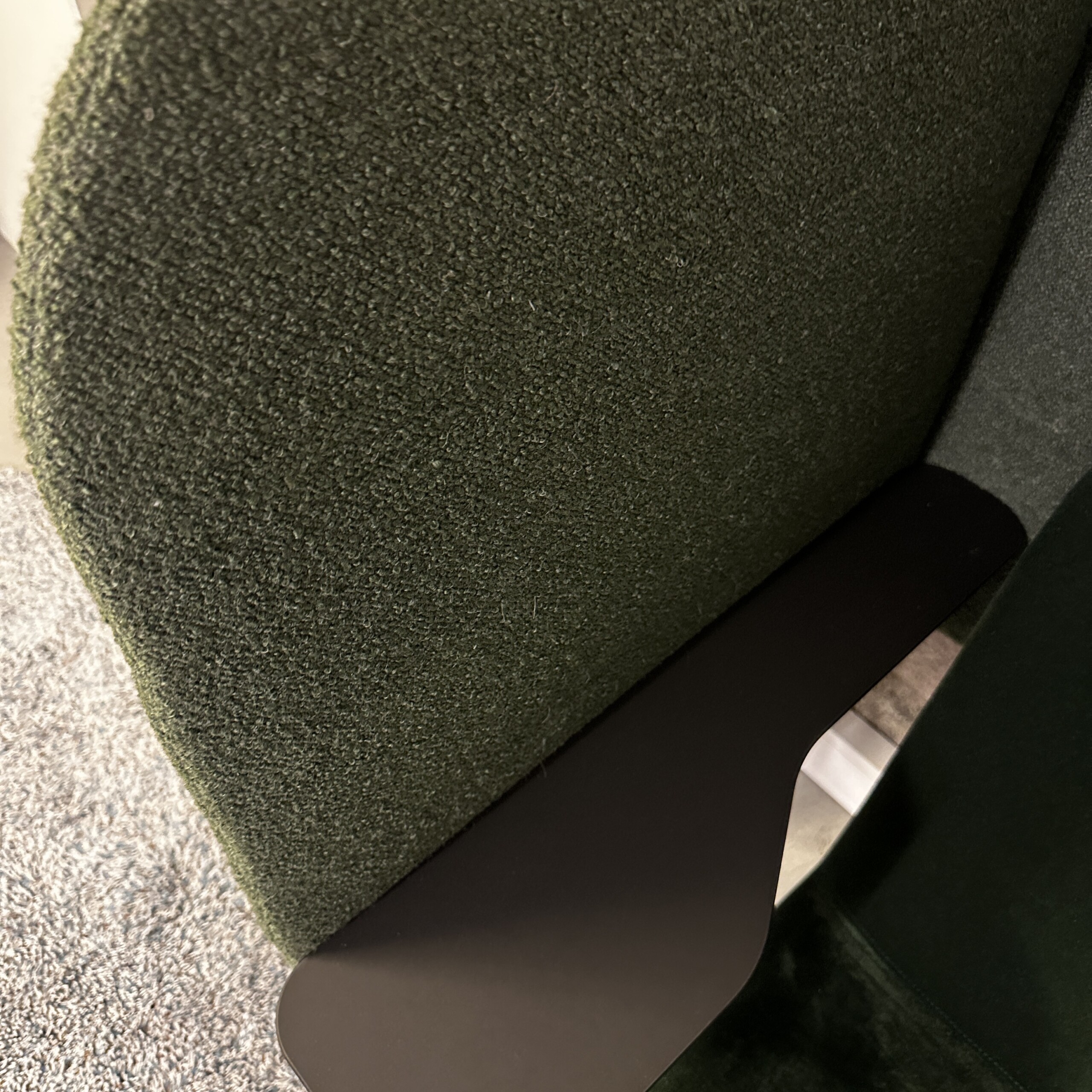Sits och rygg i tyg (grön). Ben i metall (svart).