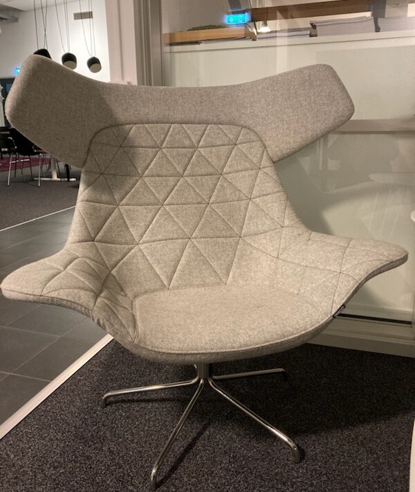 Sits och rygg i tyg (grå). Kryssfot i metall (aluminium).