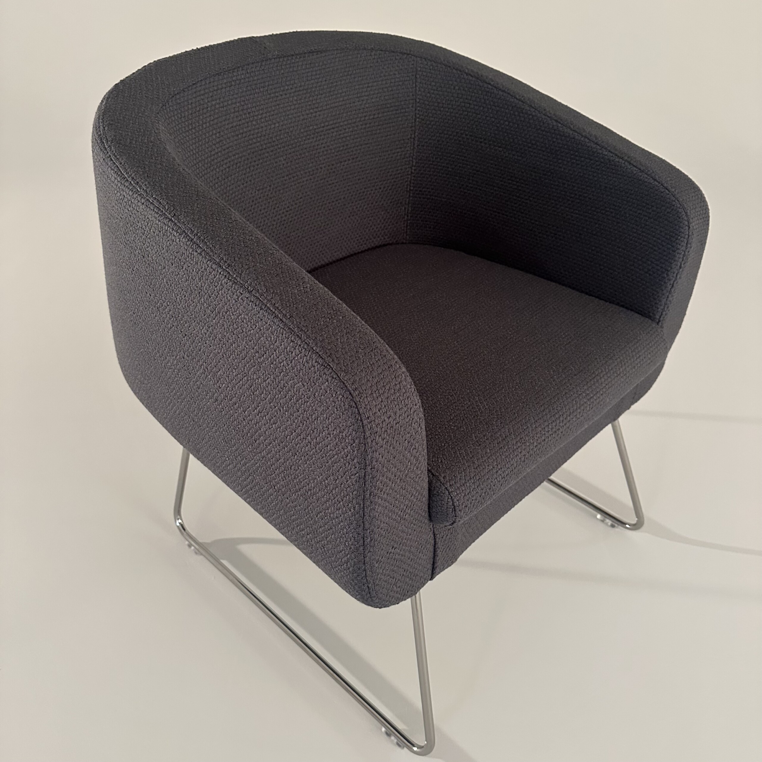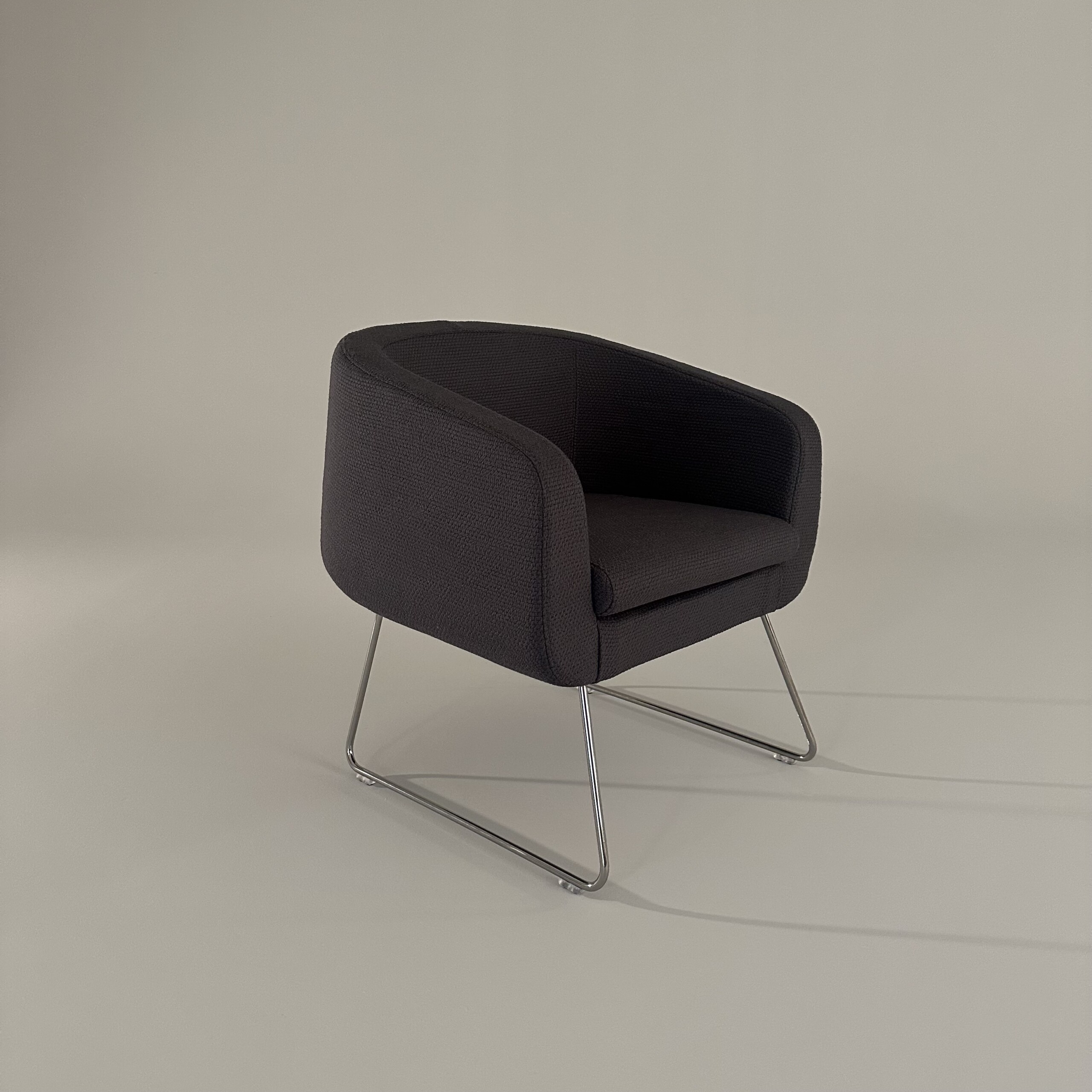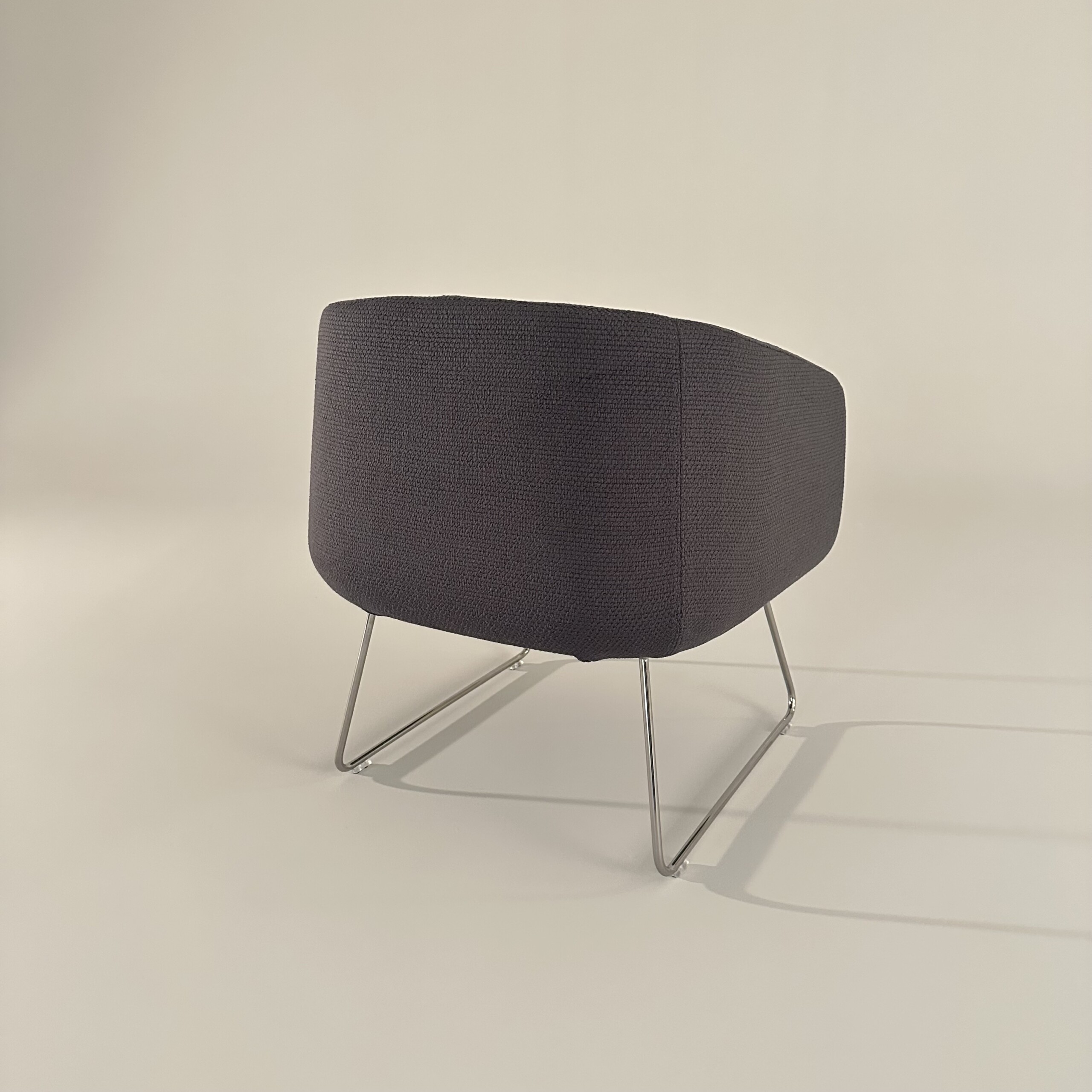 Sits och rygg i tyg (grå). Medstativ i metall (krom).