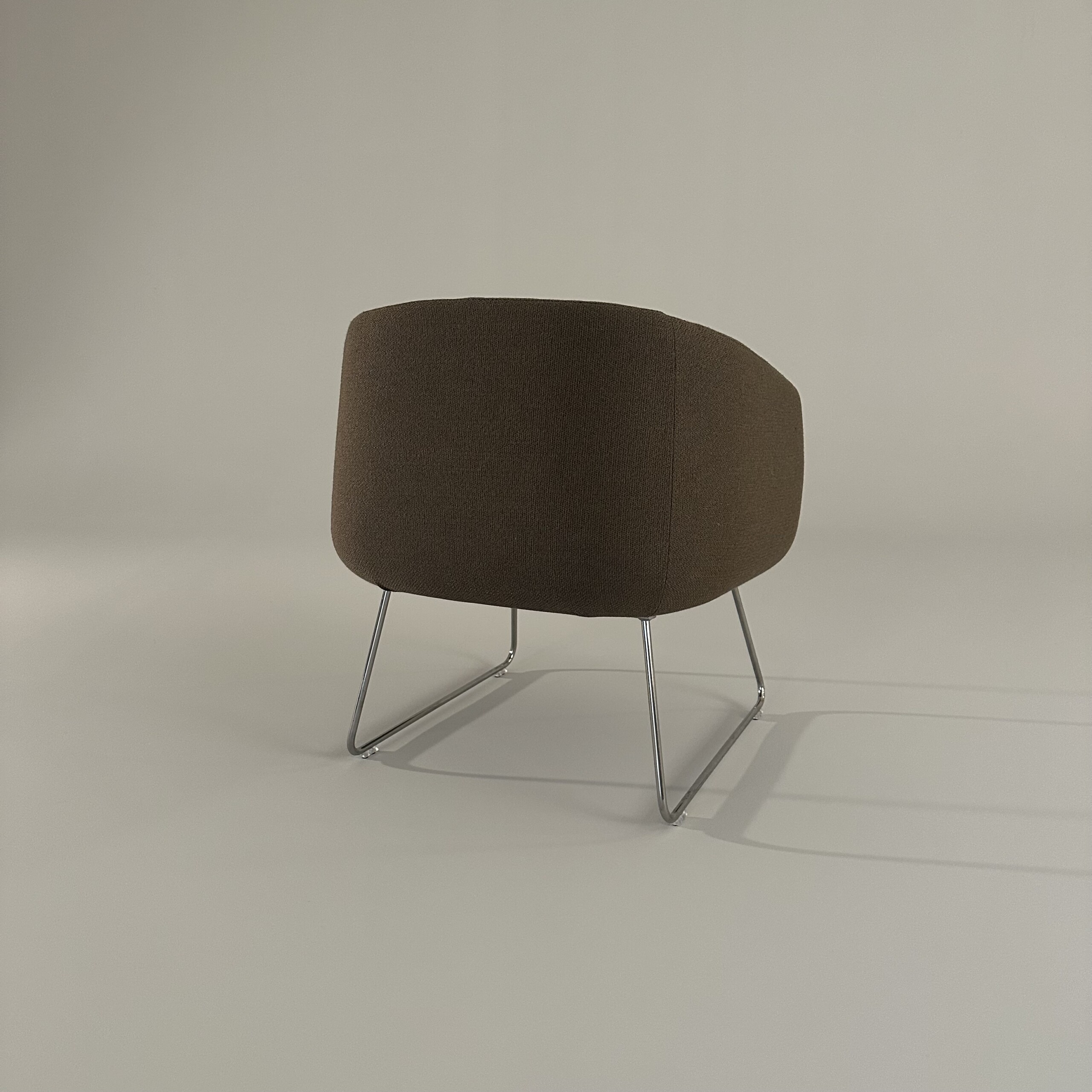 Sits och rygg i tyg (brun). Medstativ i metall (krom).