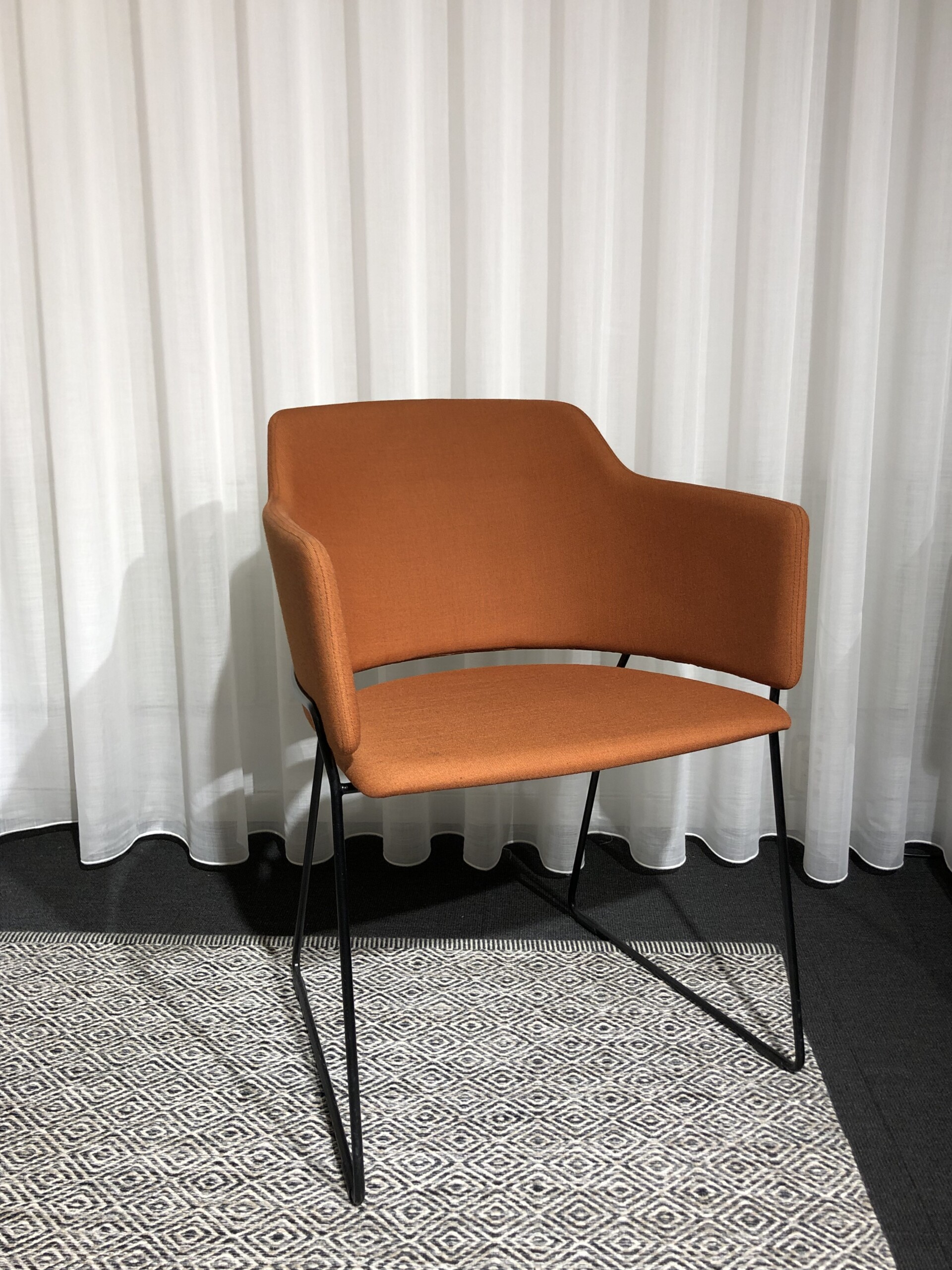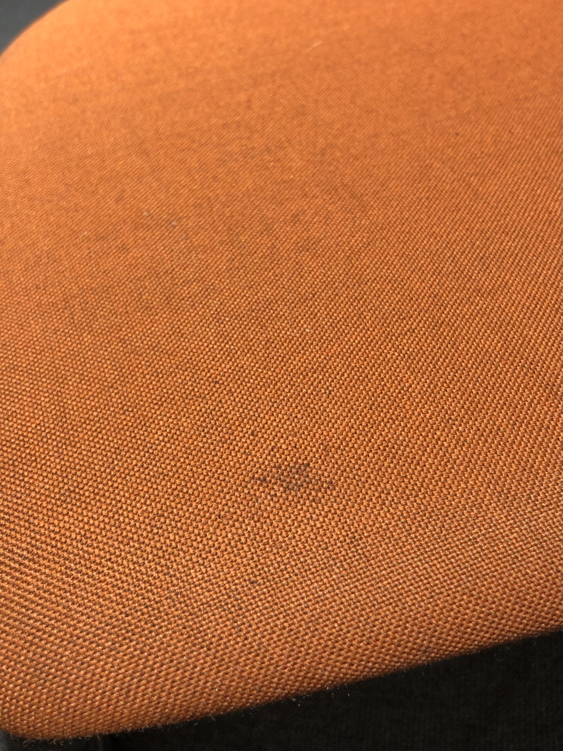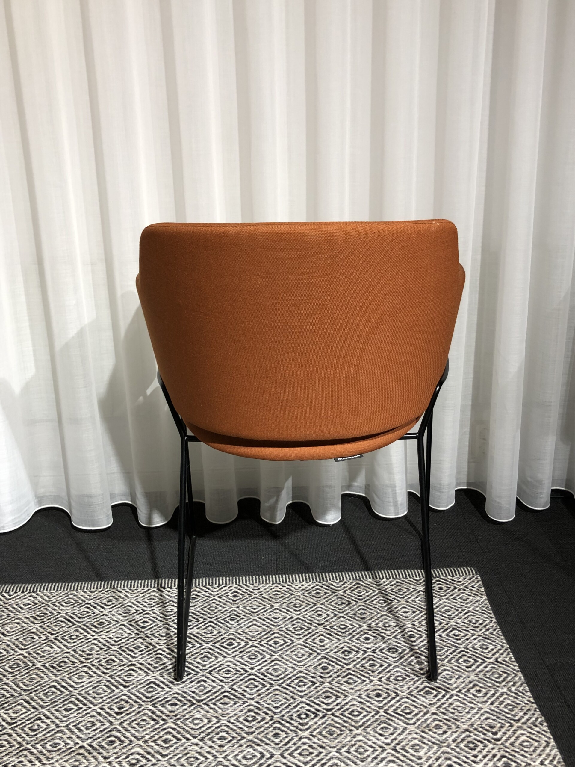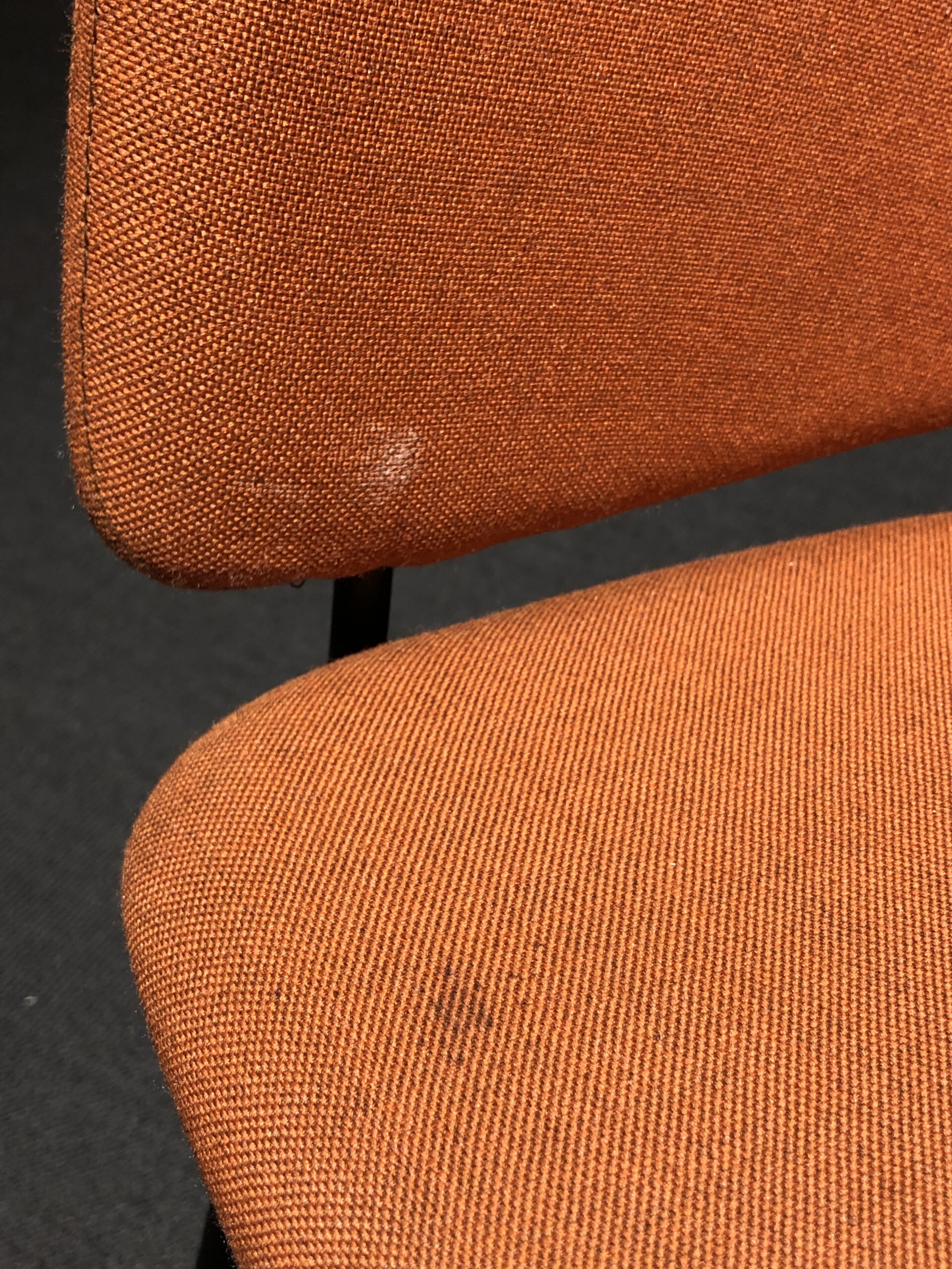 Sits och rygg i tyg (orange). Medstativ i metall (svart).