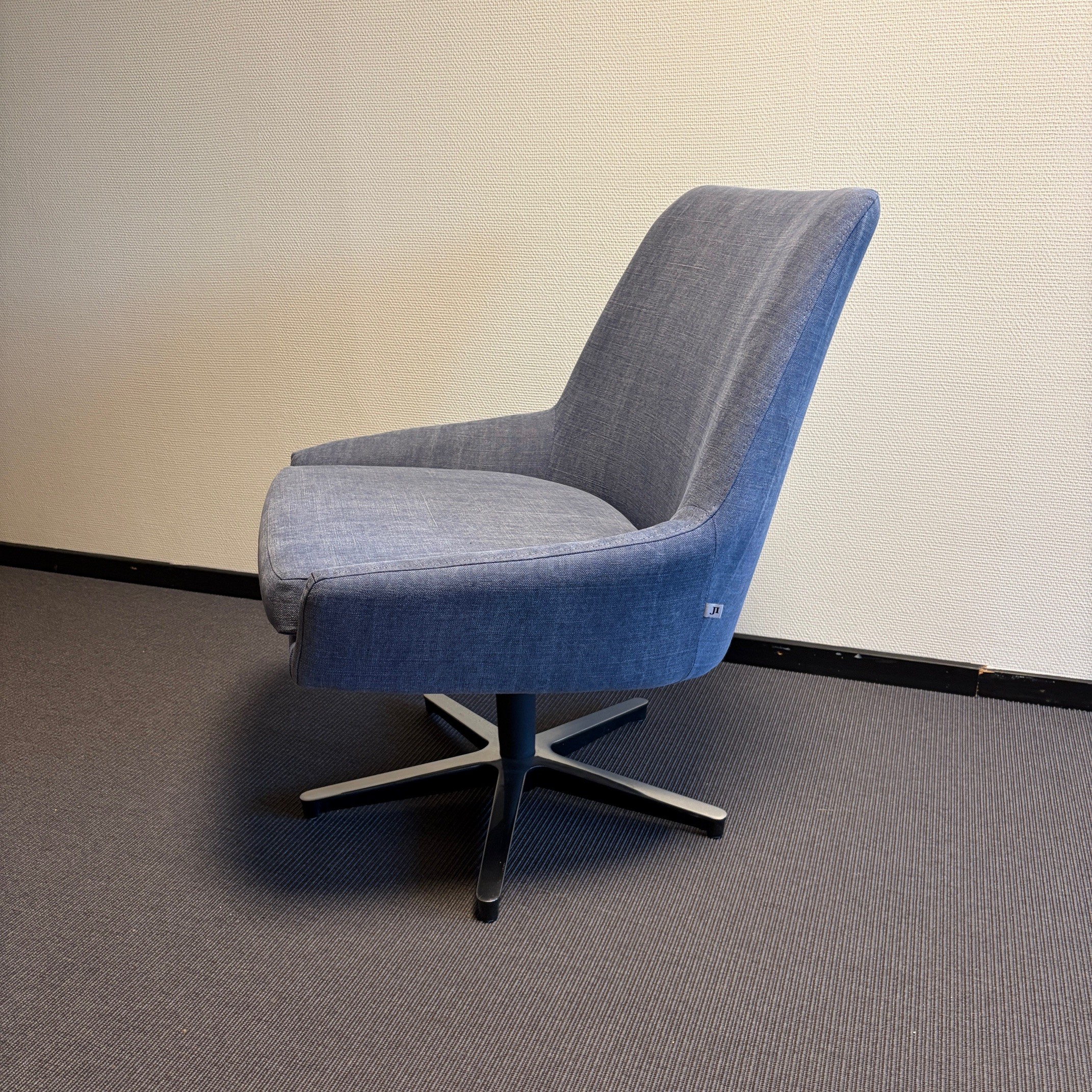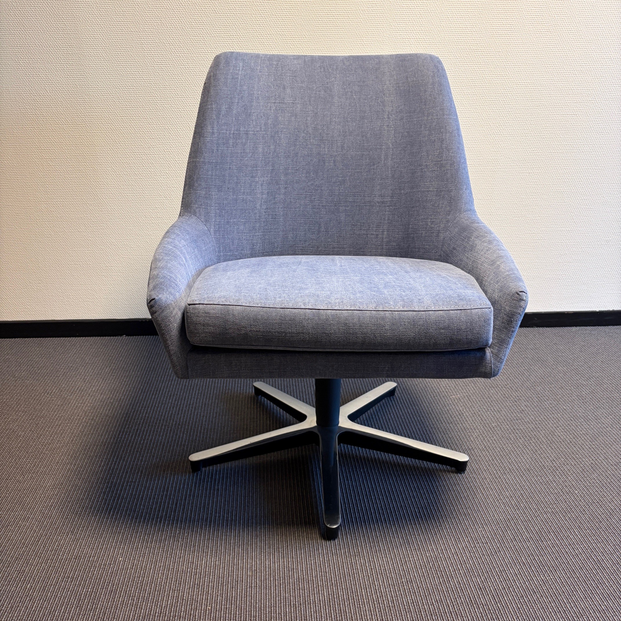 Sits och rygg i tyg (blå). Kryssfot i metall (silver).