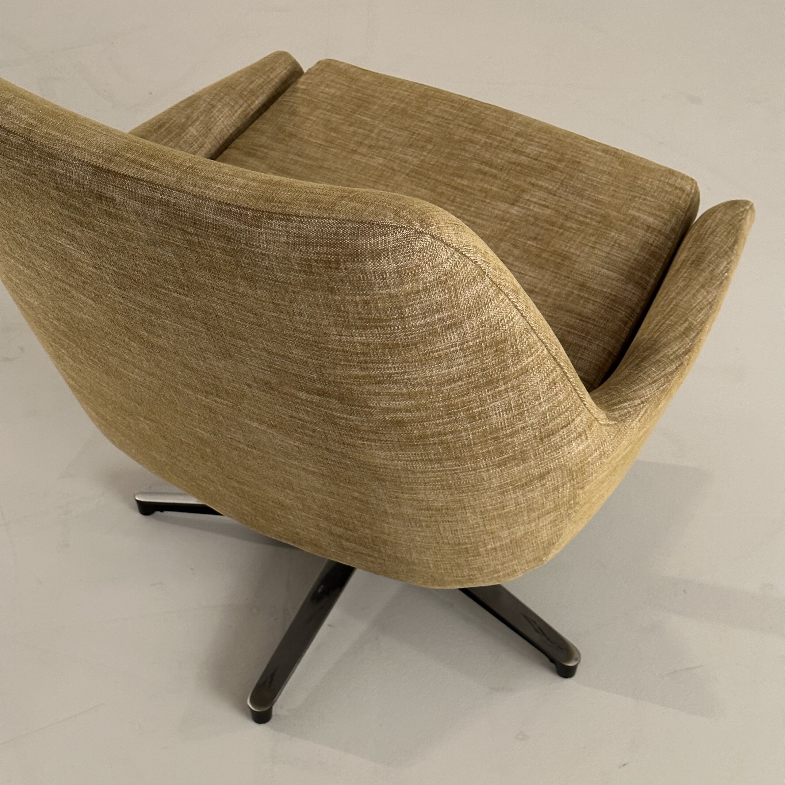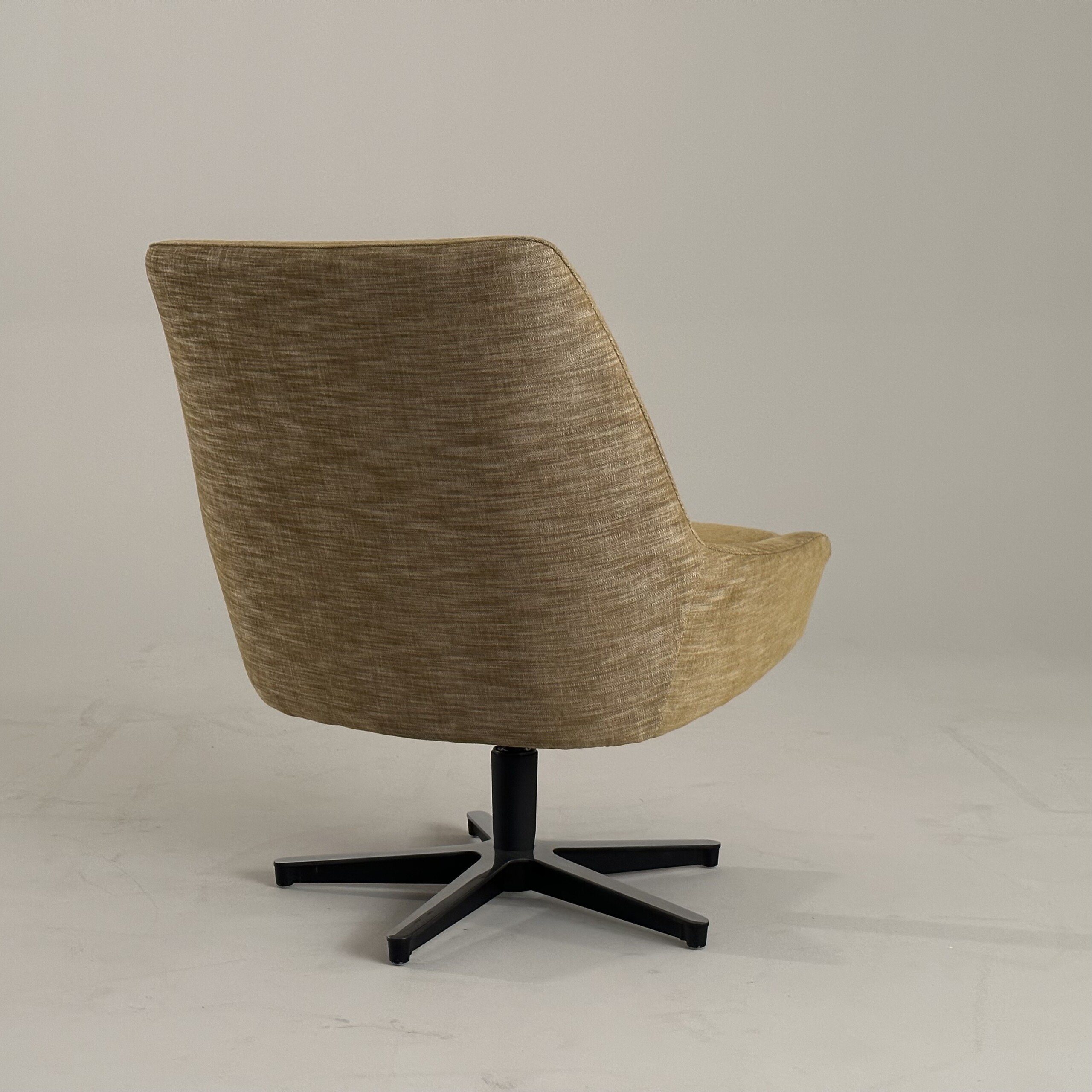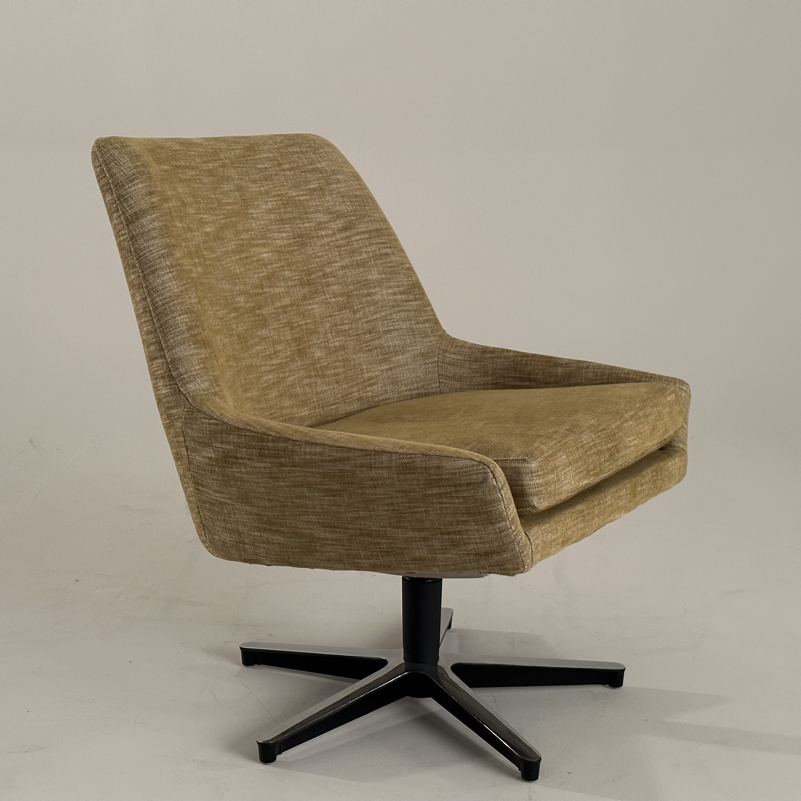Sits och rygg i tyg (grön). Ben i metall (aluminium).