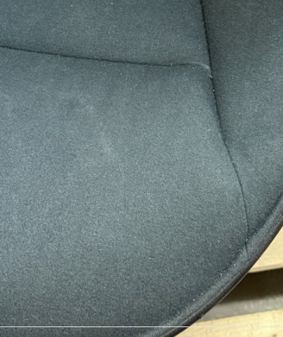 Sits och rygg i tyg (grön). Ben i trä (svart).