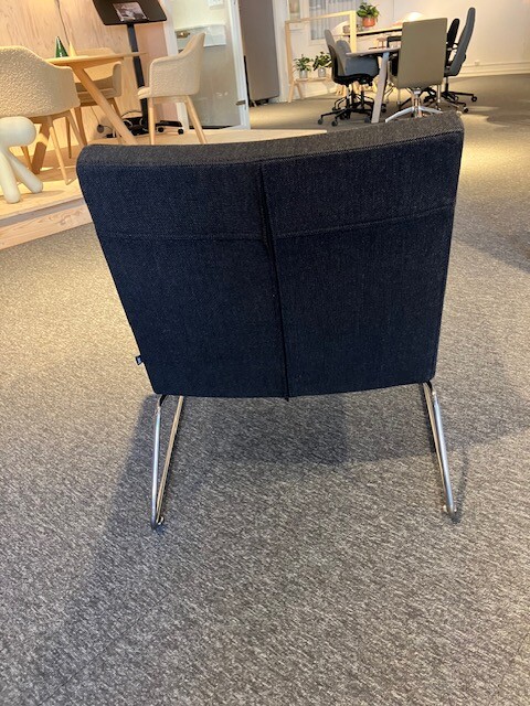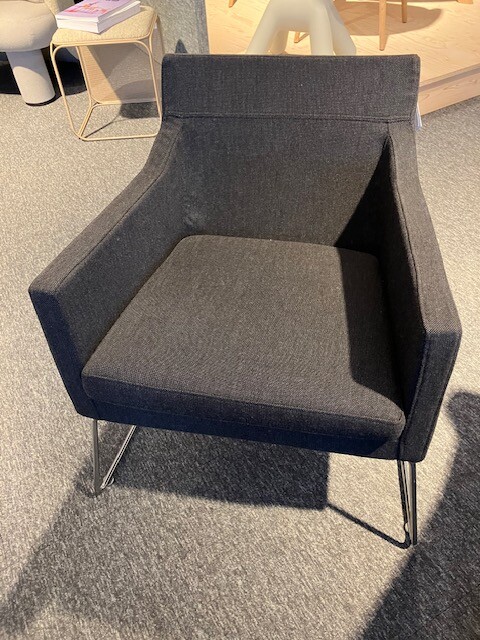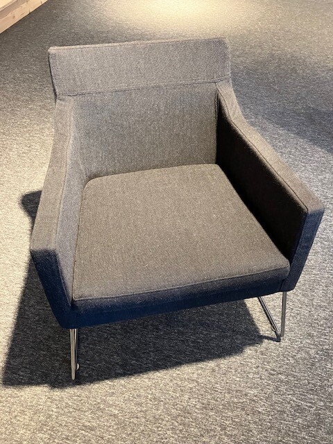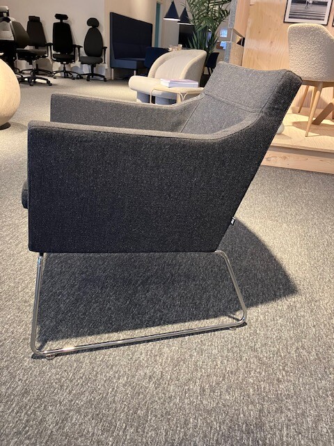 Sits och rygg i tyg (grå). Medstativ i metall (krom).
