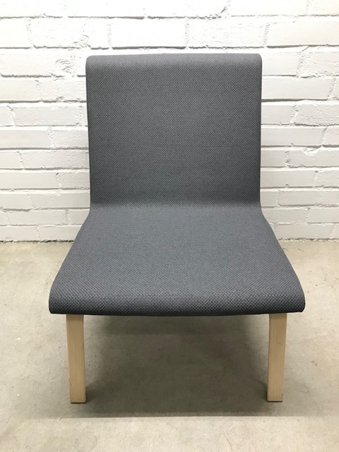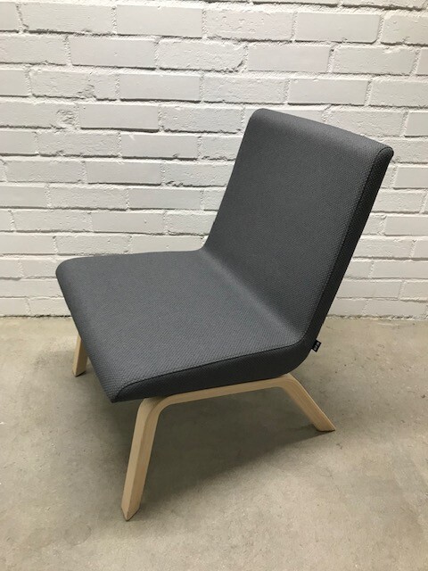 Sits och rygg i tyg (grå). Ben i trä (ask).