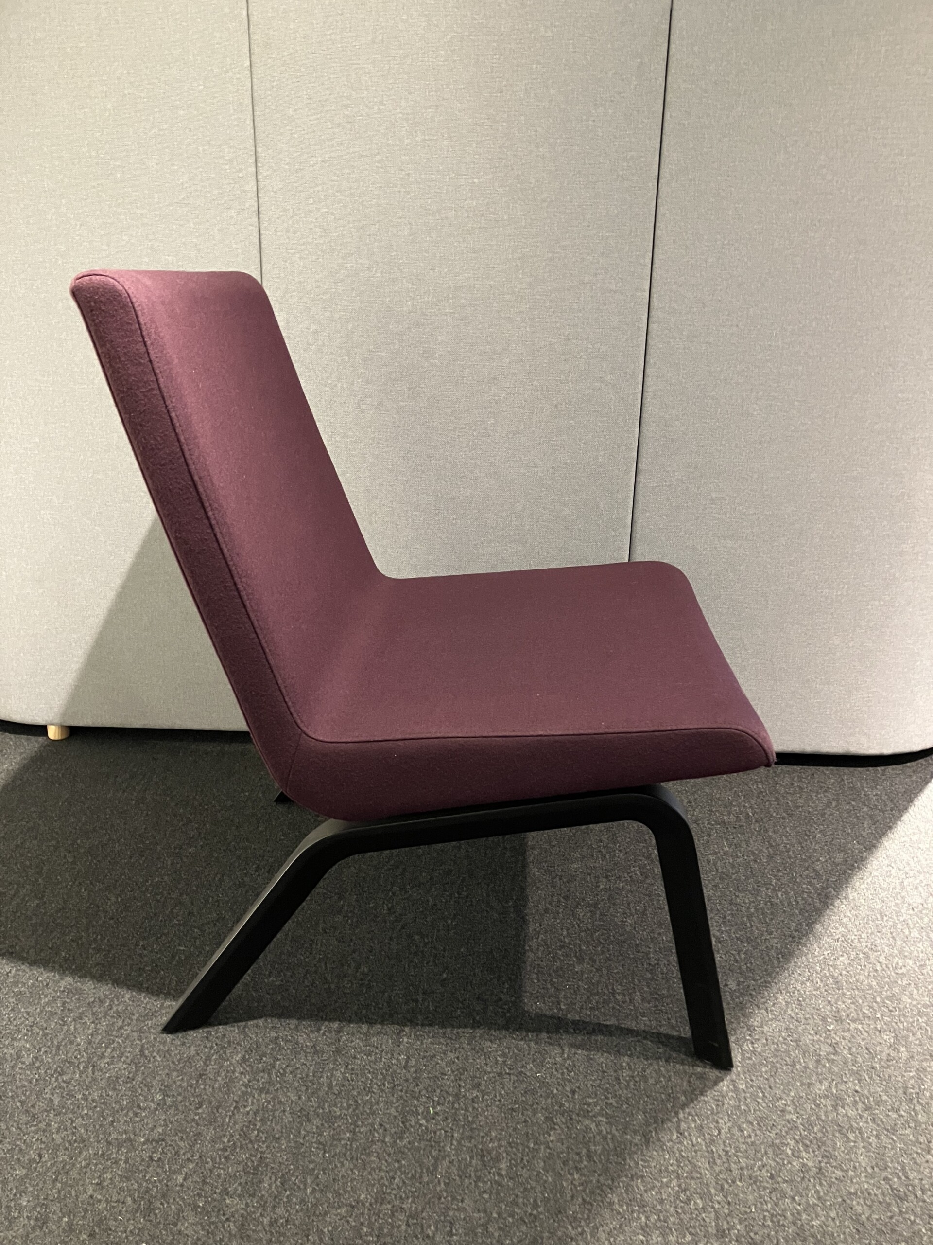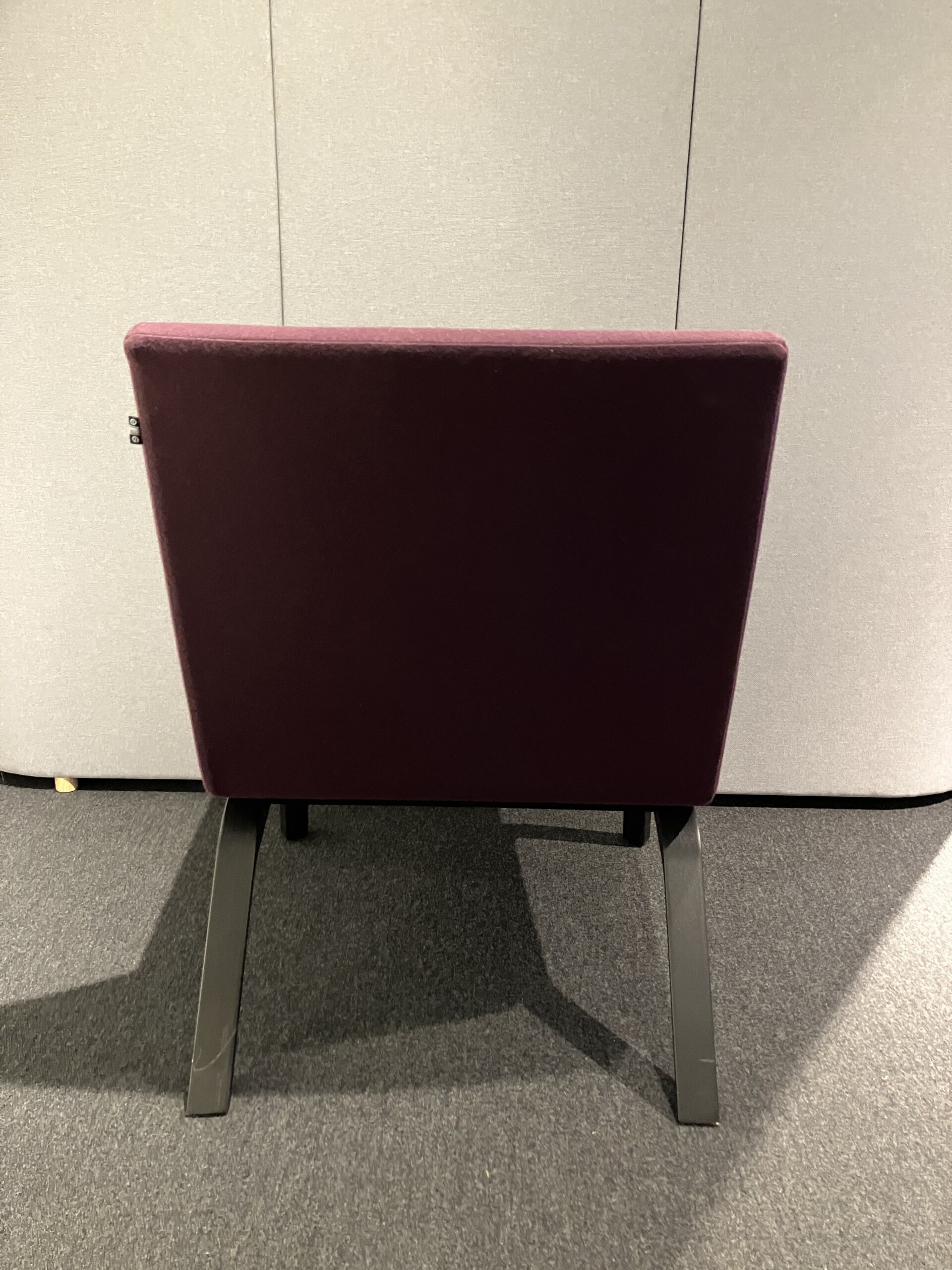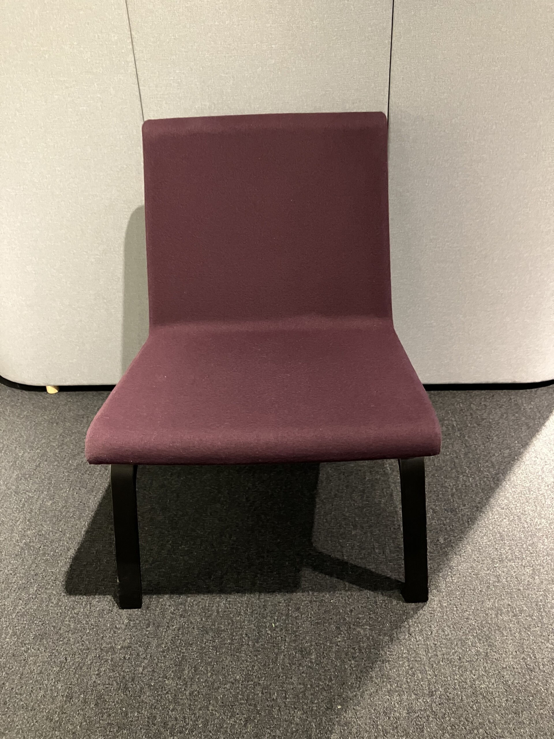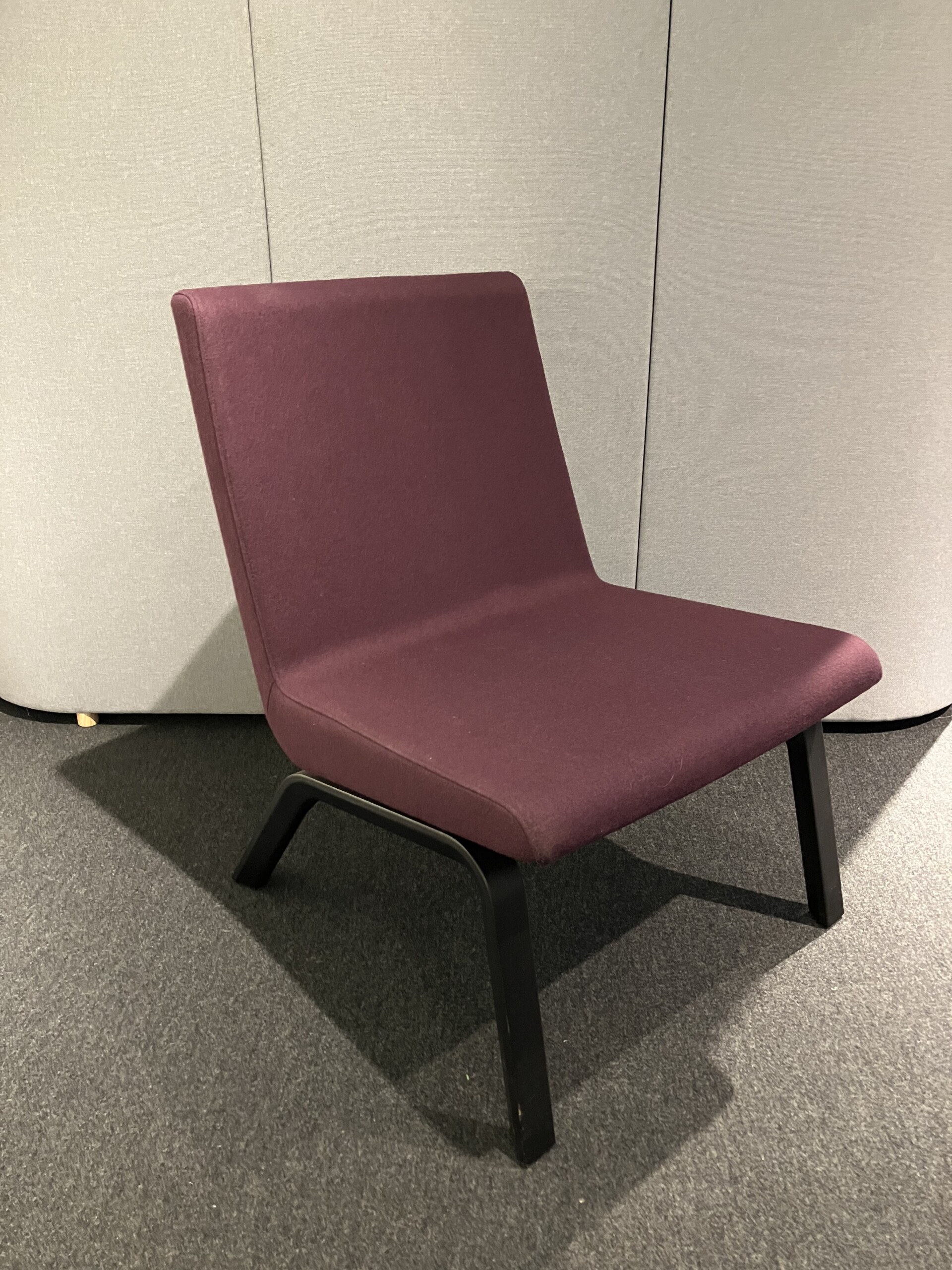 Sits och rygg i tyg (lila). Ben i trä (svart).