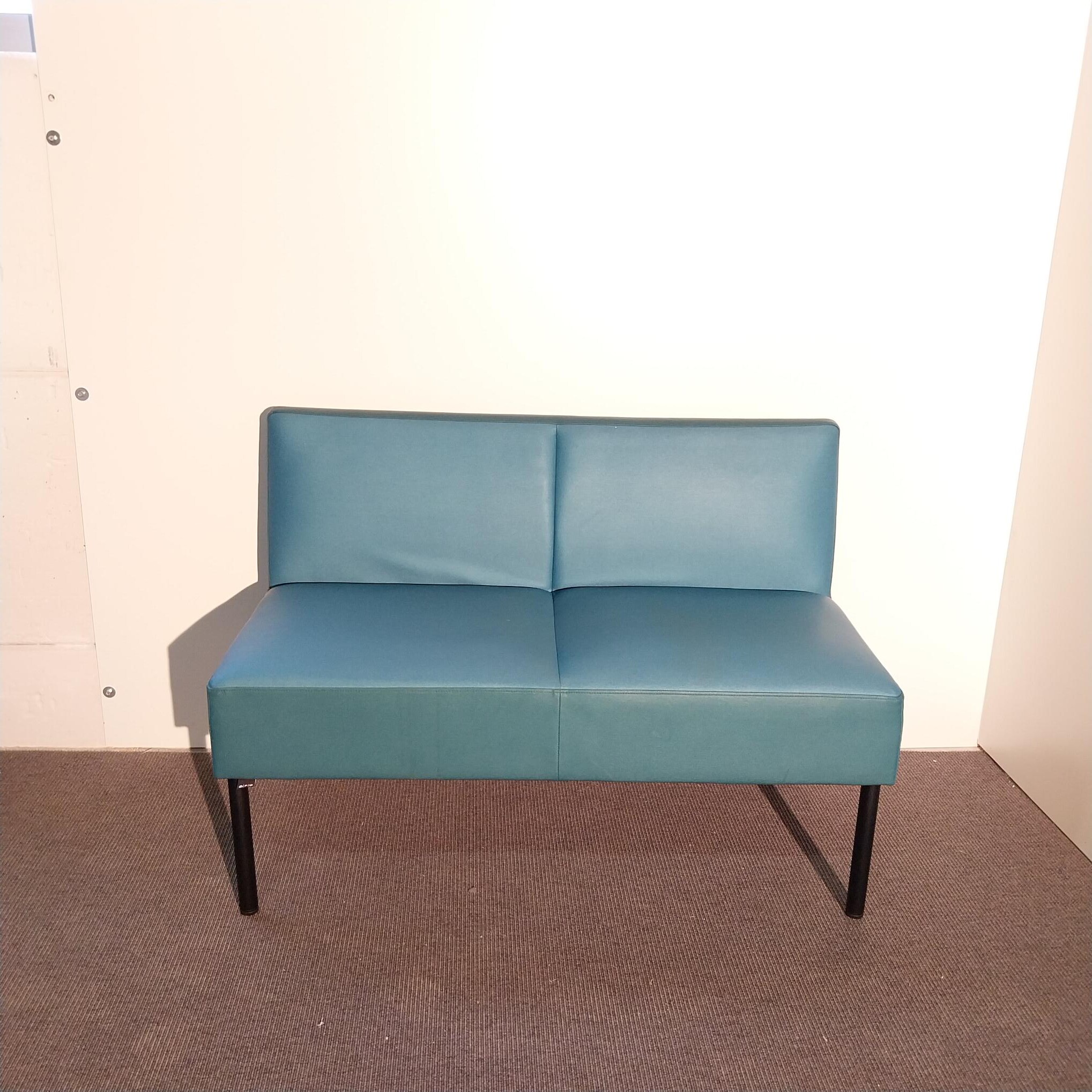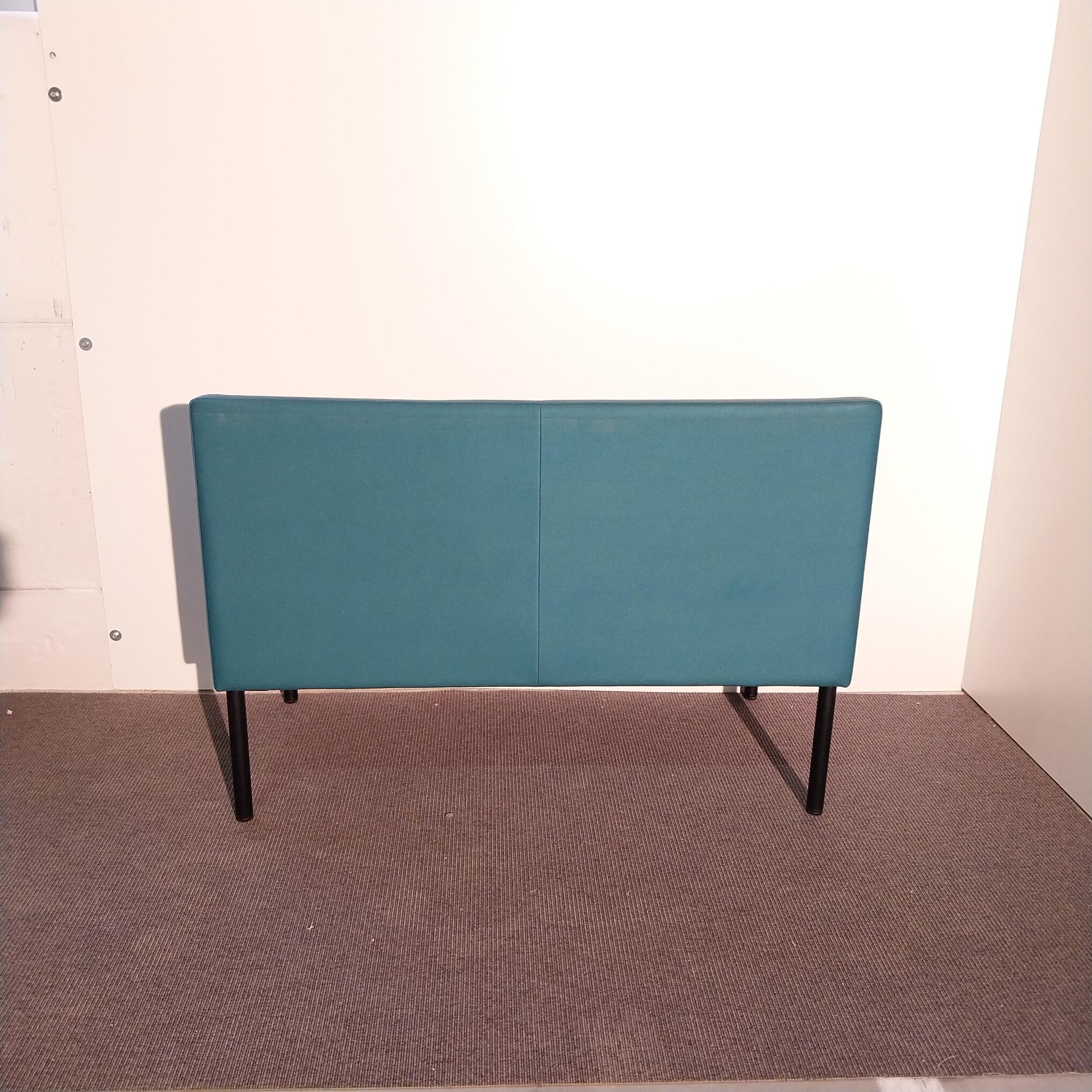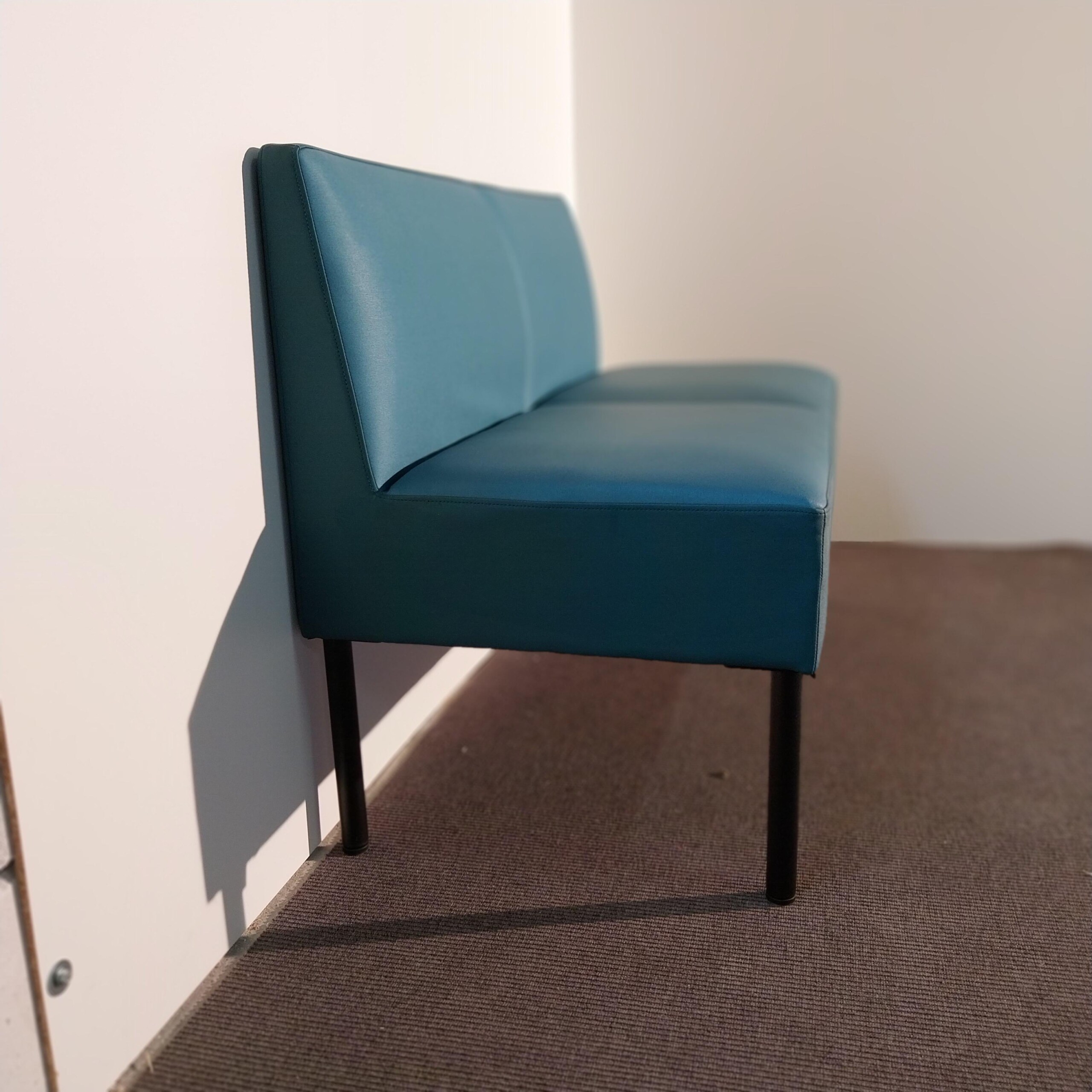 Sits och rygg i konstläder (turkos). Ben i metall (svart).