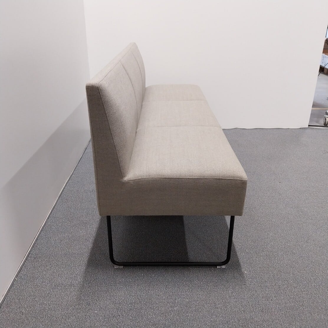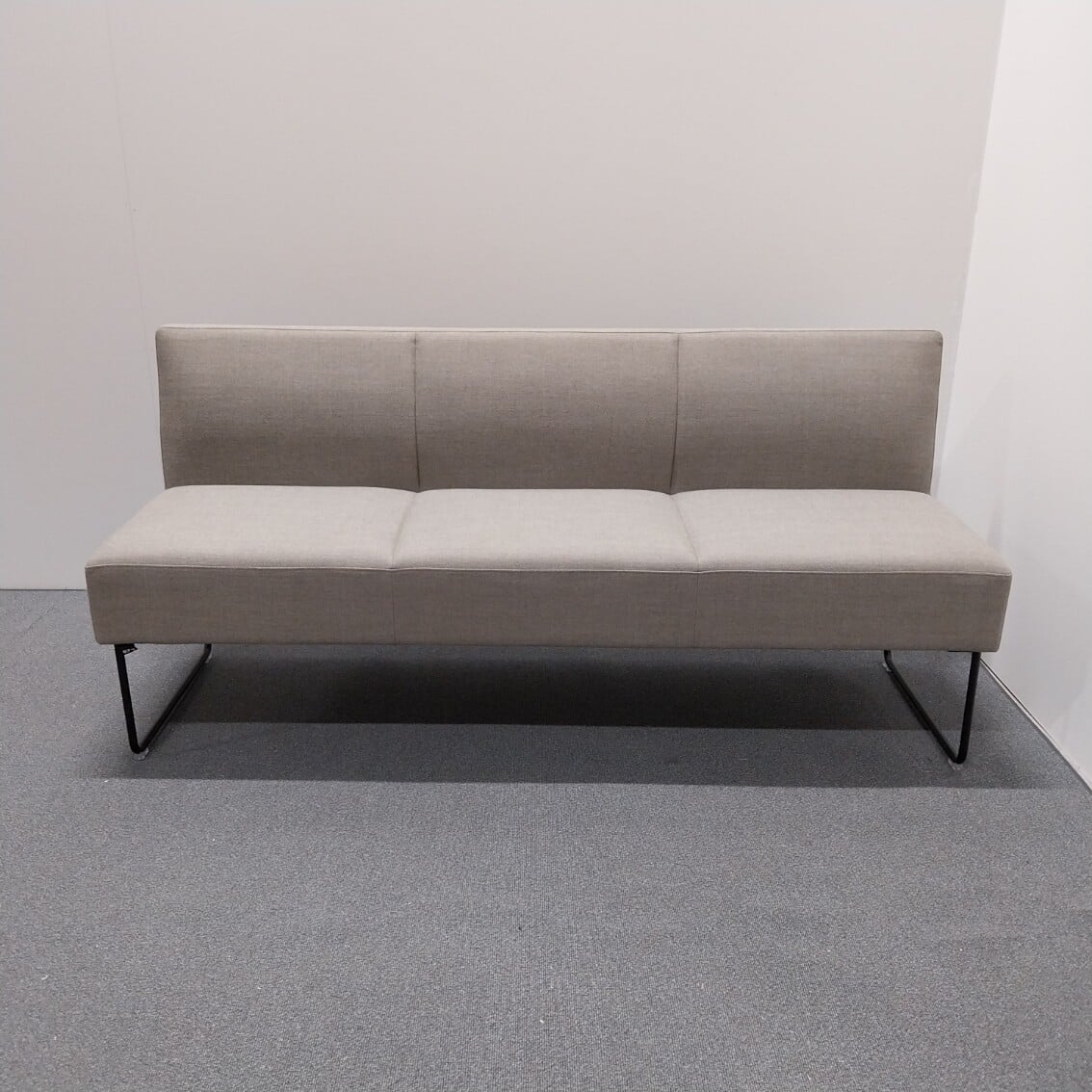 Sits och rygg i tyg (beige). Medstativ i metall (svart).