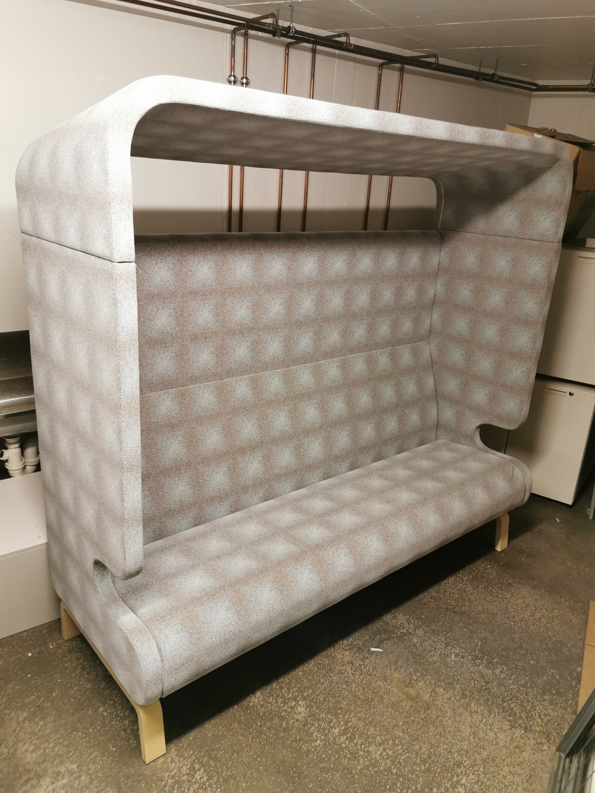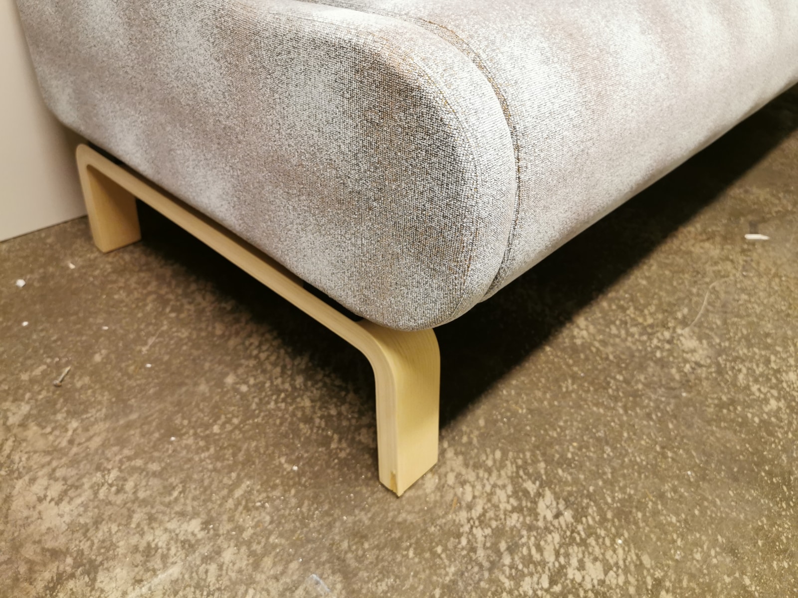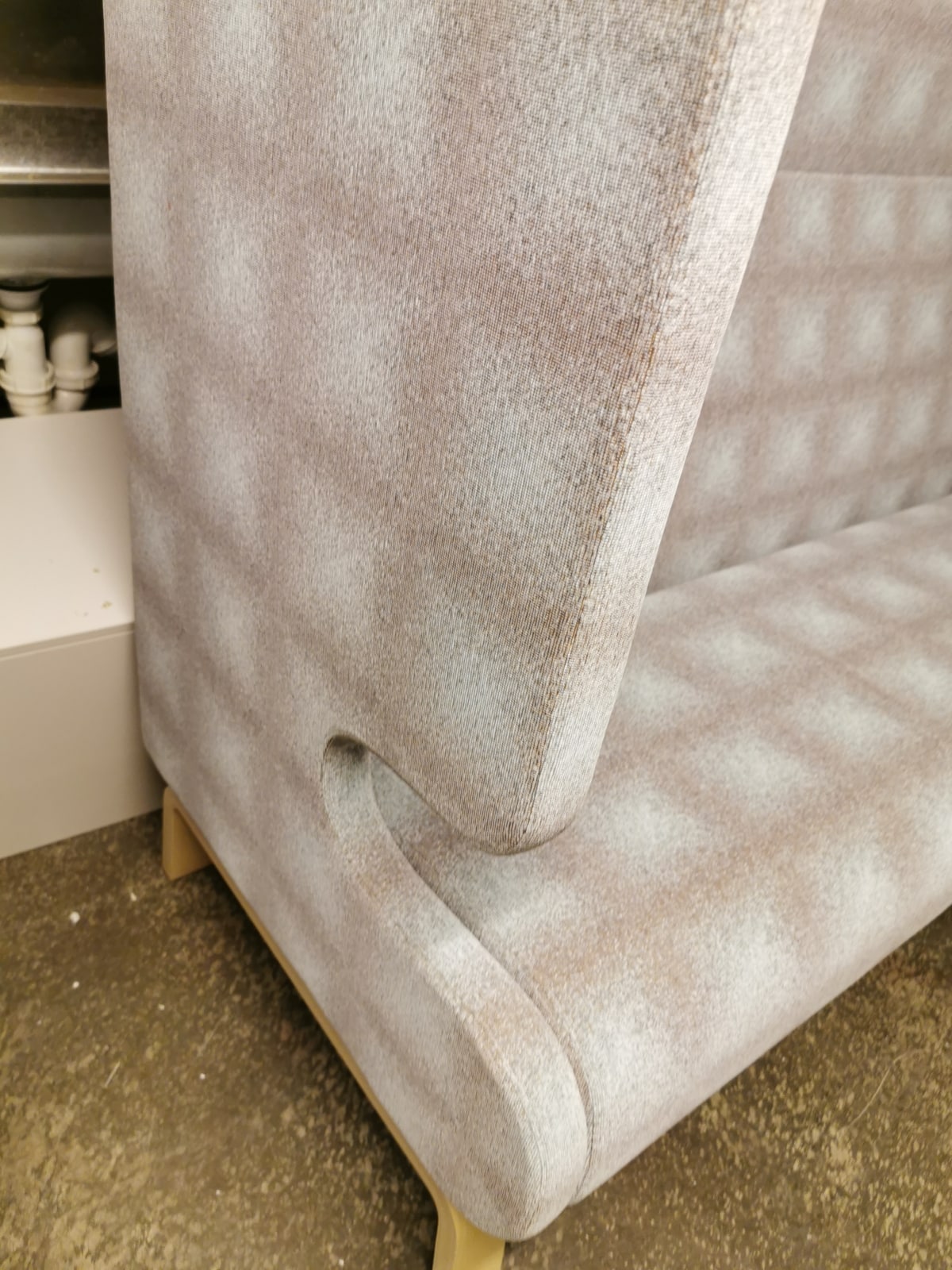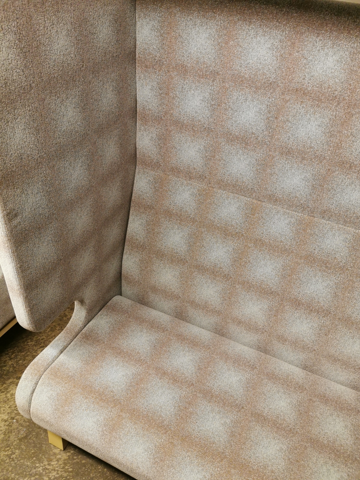 Sits och rygg i tyg. Ben i trä (ask).