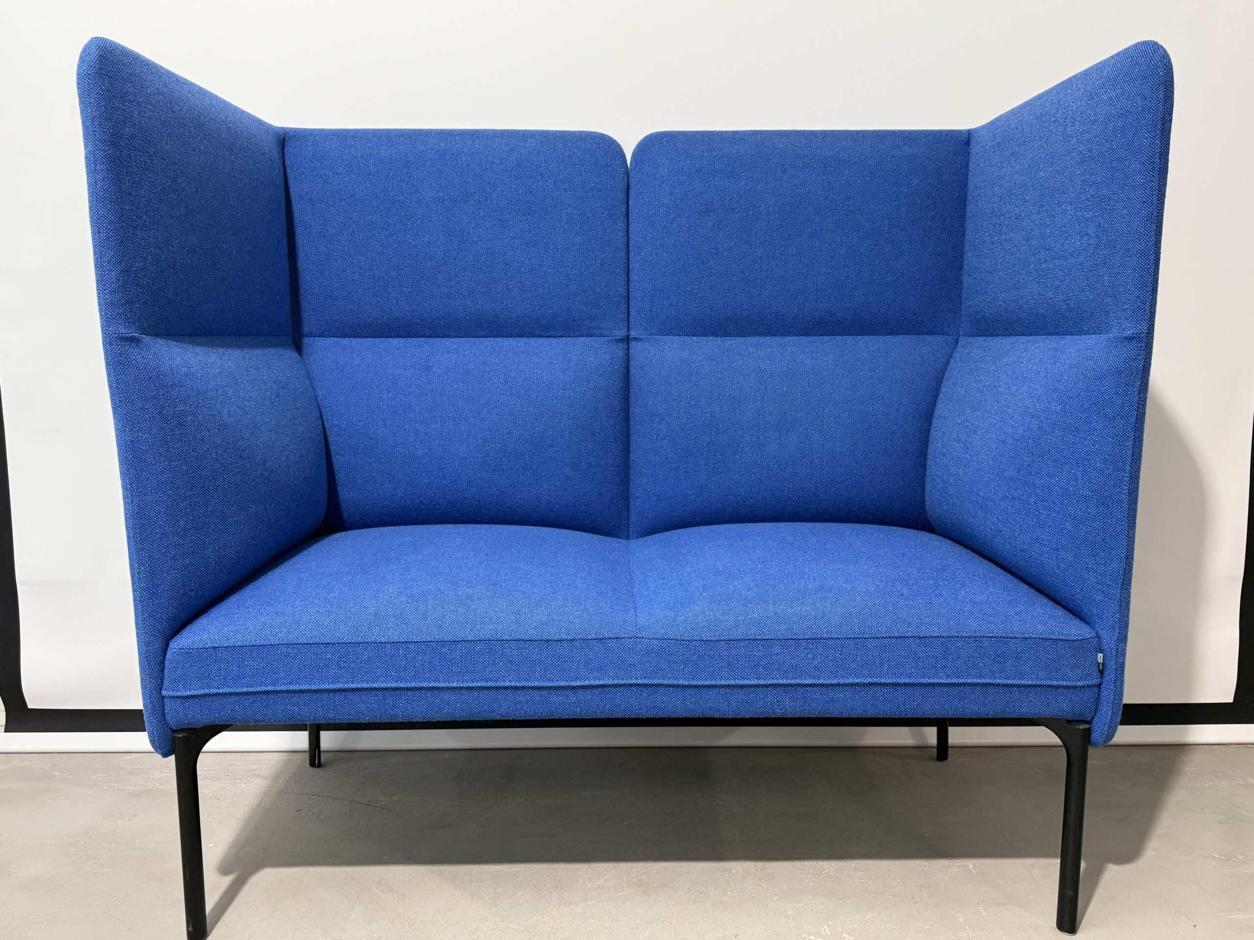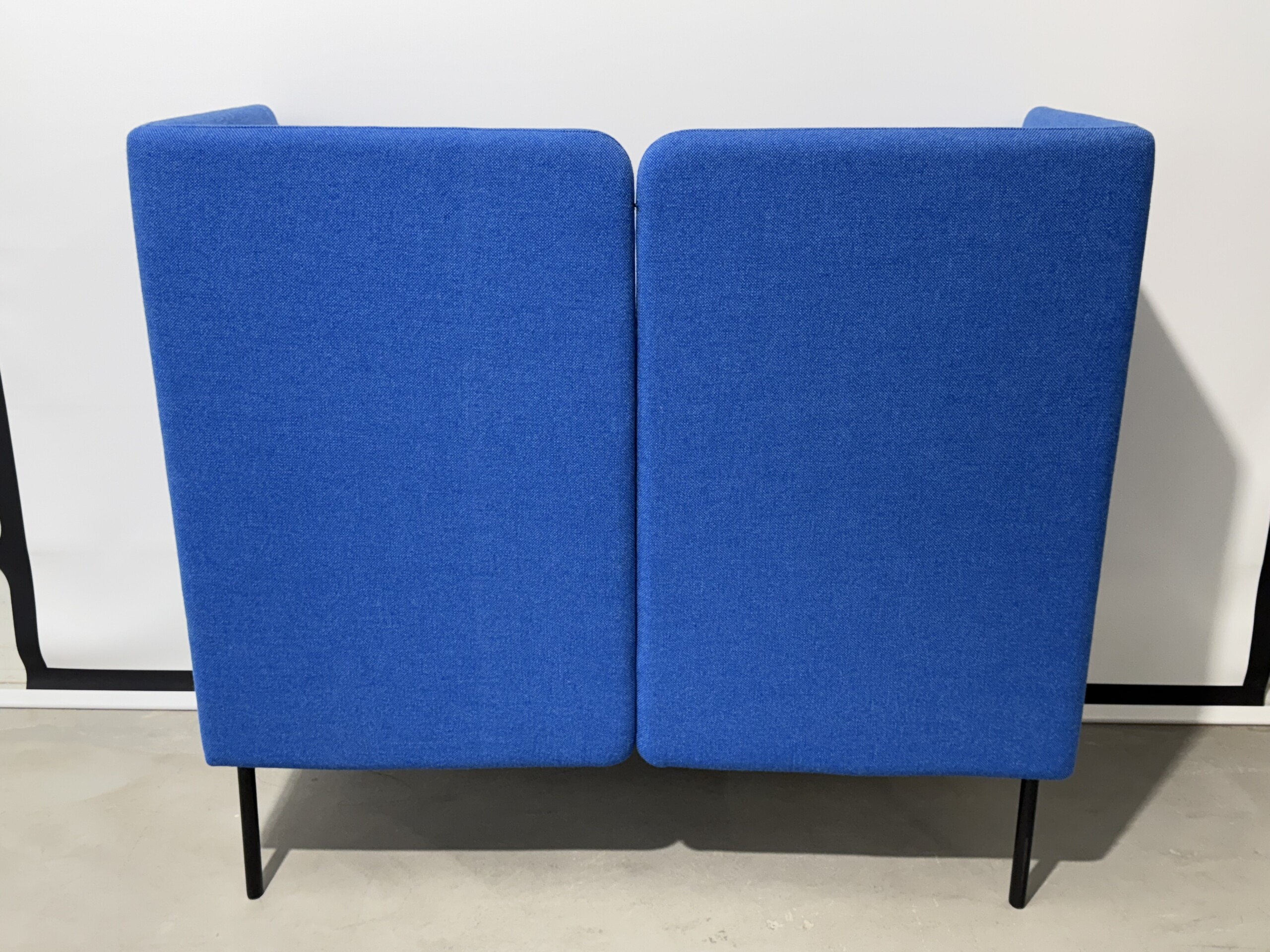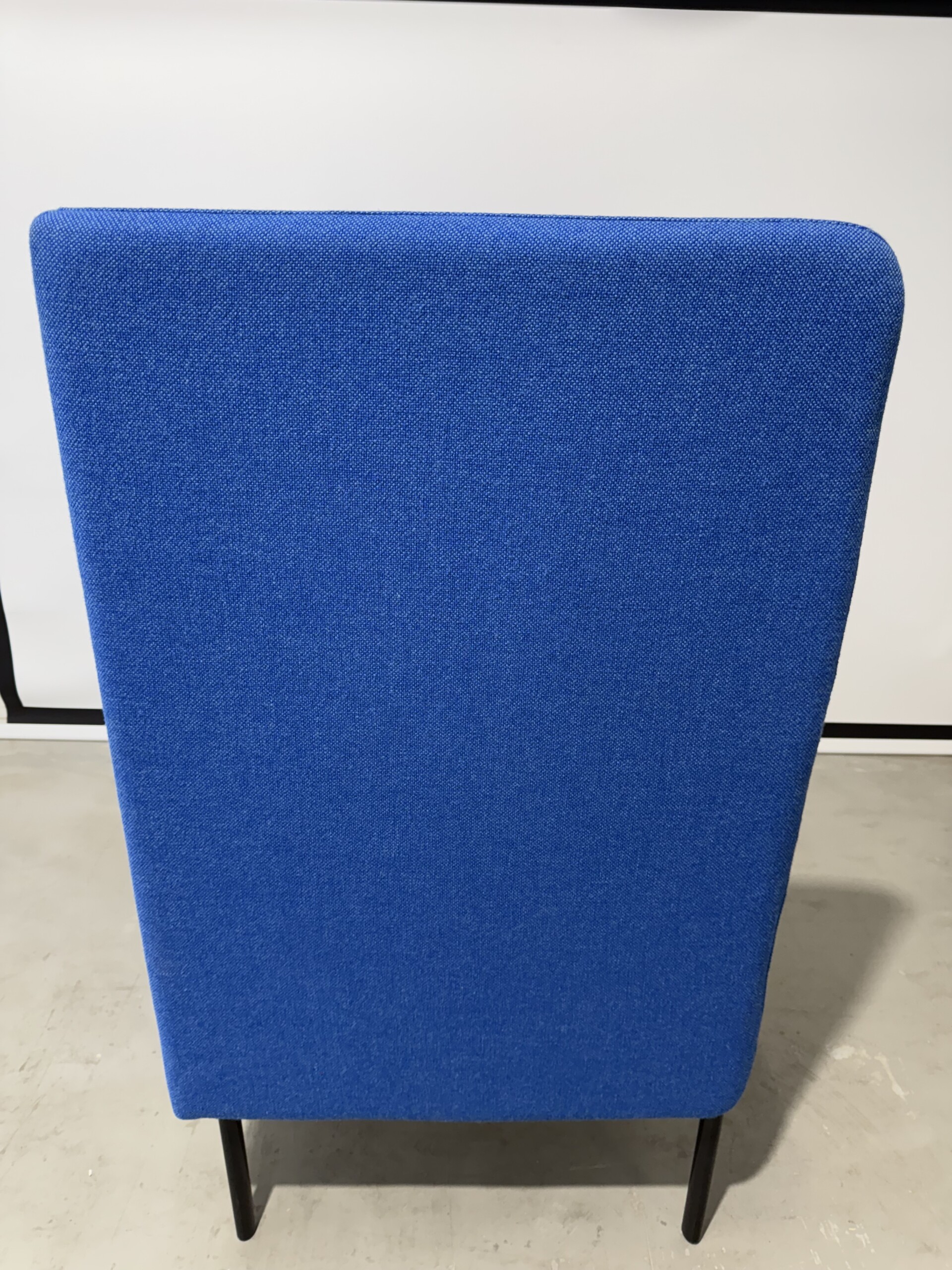 Sits och rygg i tyg (blå). Ben i metall (svart).