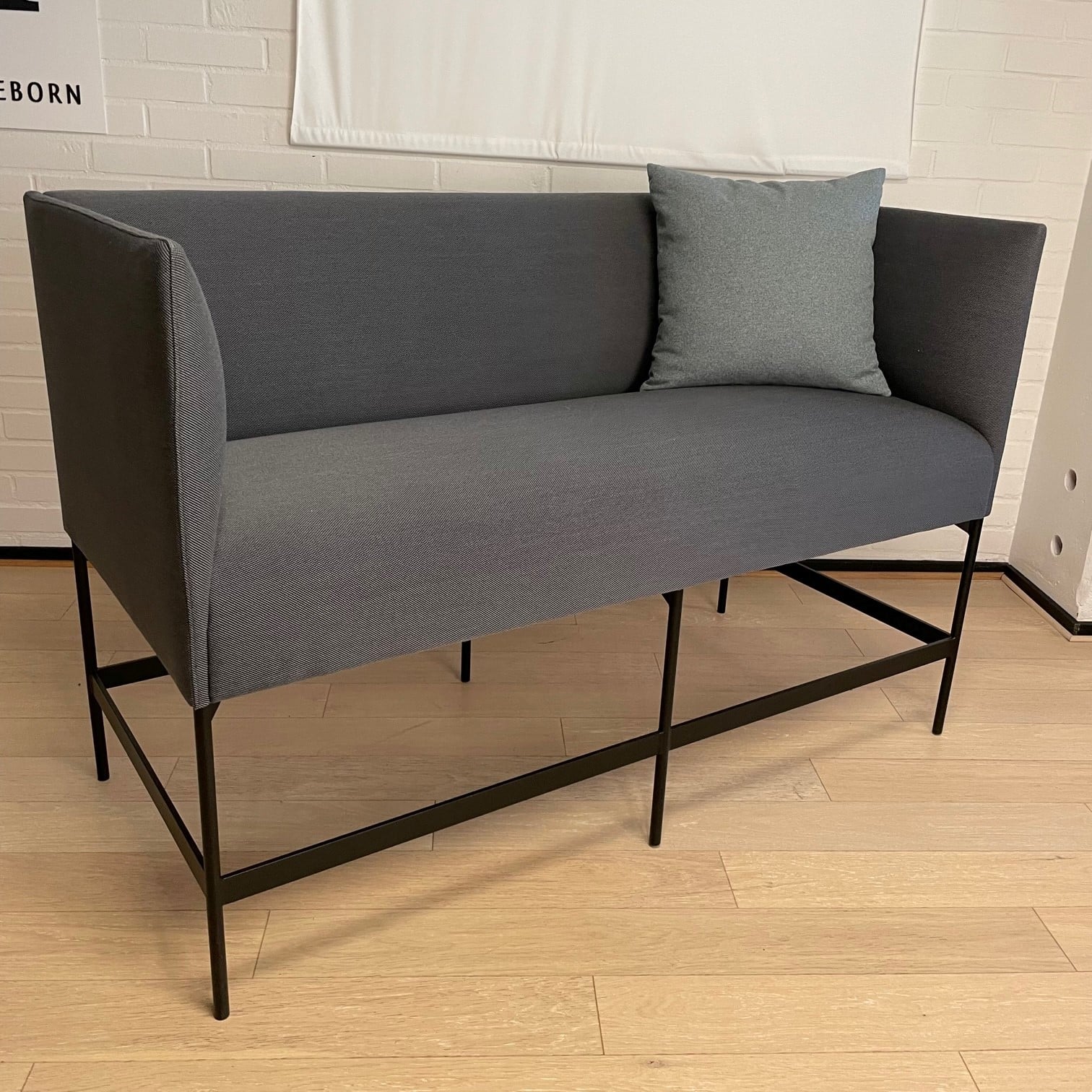 Sits och rygg i tyg (grå). Ben i metall (svart).