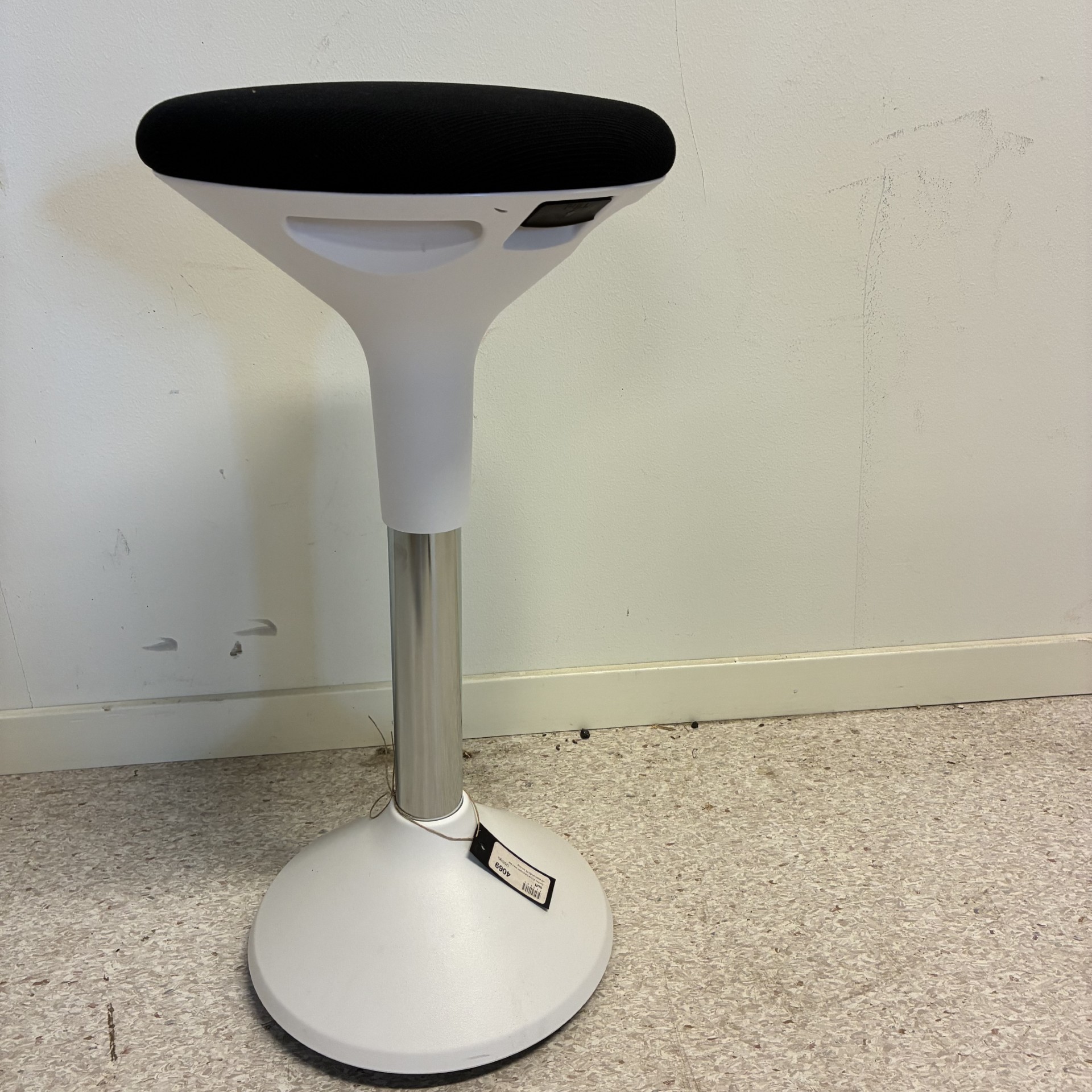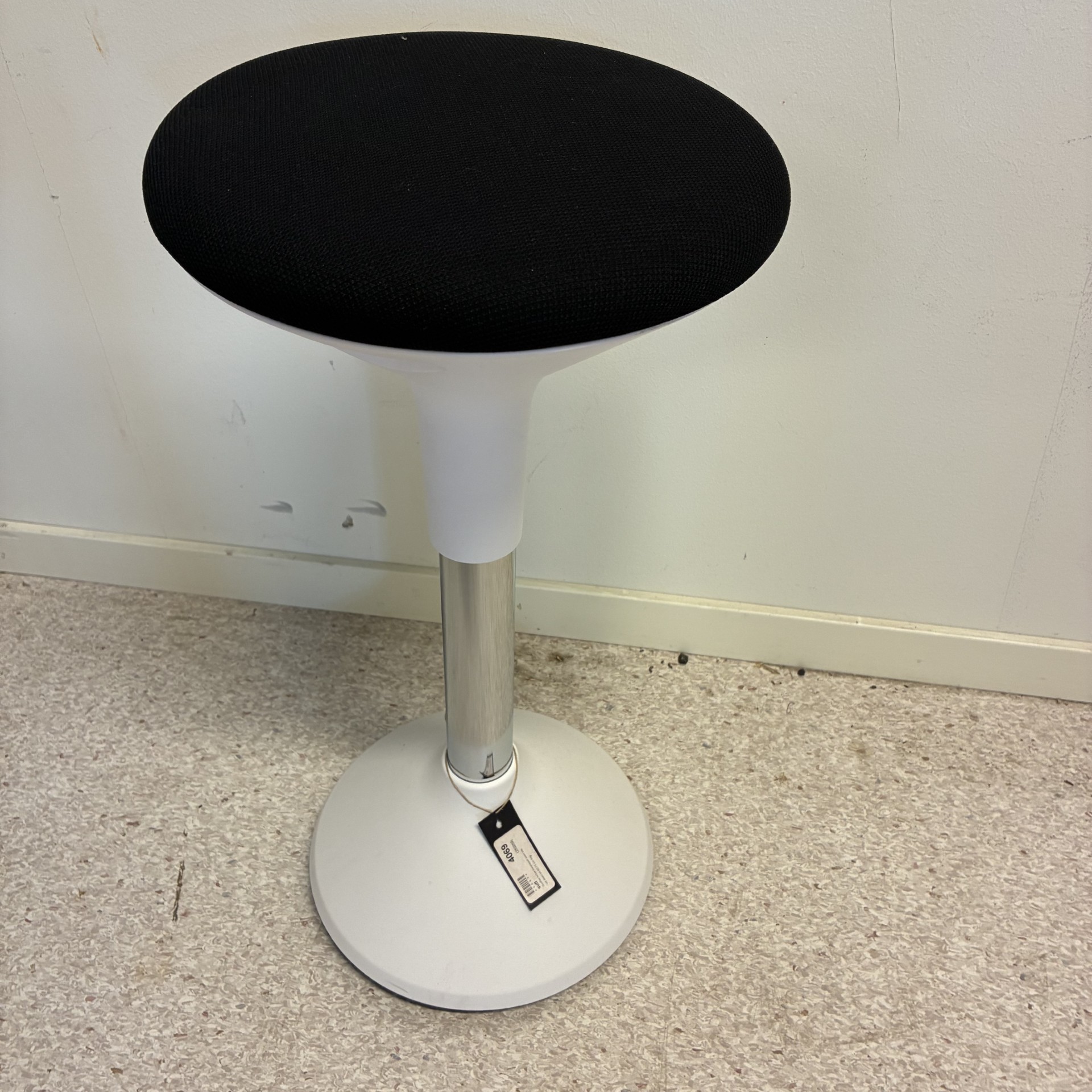 Sits i tyg (svart). Pelarfot i plast (vit).