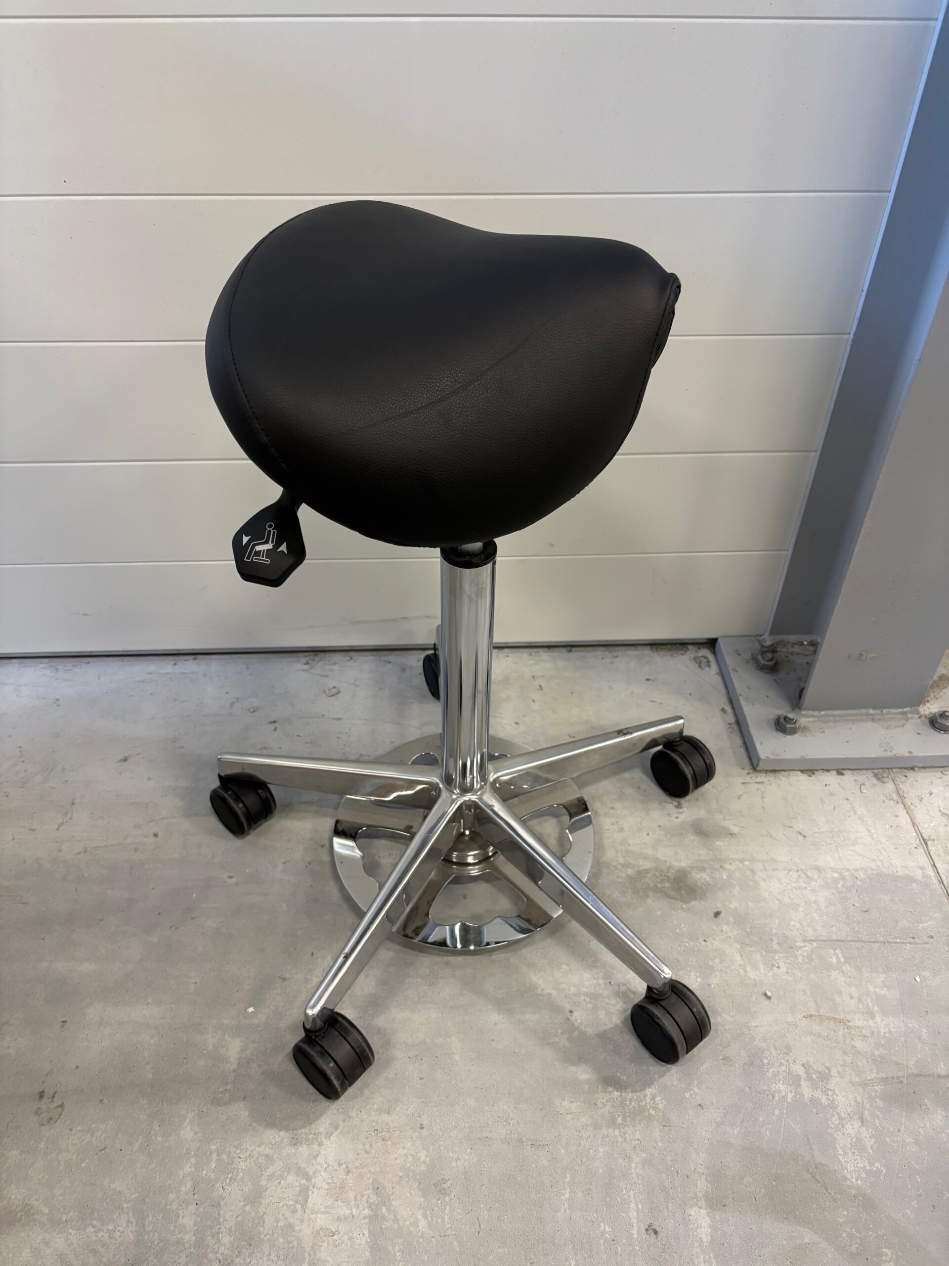 Sits i konstläder (svart). Kryssfot i metall (aluminium). Höj- och sänkbar.